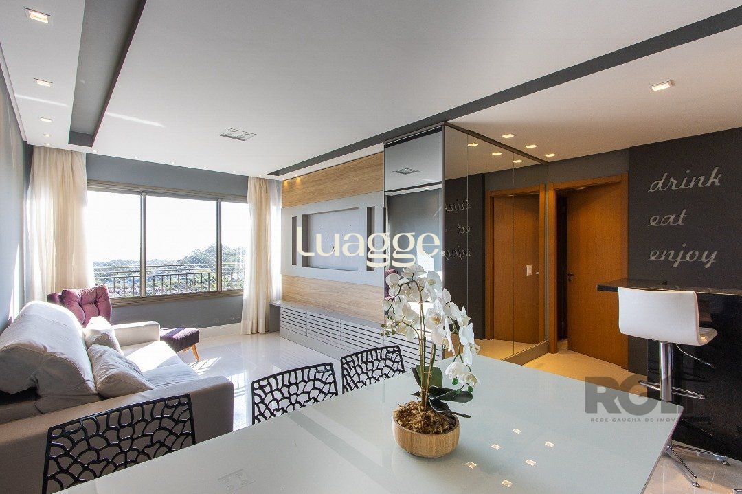 Apartamento mobiliado para locação em condomínio fechado e de alto padrão, localizado na Zona Sul de Porto Alegre, bairro Cavalhada, com vista para Guaíba, 03 dormitórios com móveis sob medida, sendo 01 suíte, living com sofá, estante, mesa com cadeiras e bancada com banquetas, cozinha com pia, armários sob medida, cooktop, depurador de ar, micro ondas, forno elétrico, geladeira e churrasqueira, área de serviço com tanque, armário sob medida e aquecedor, banheiro social e banheiro privativo com armários sob medida e box de vidro, 01 vaga dupla e coberta de estacionamento para 02 carros.
