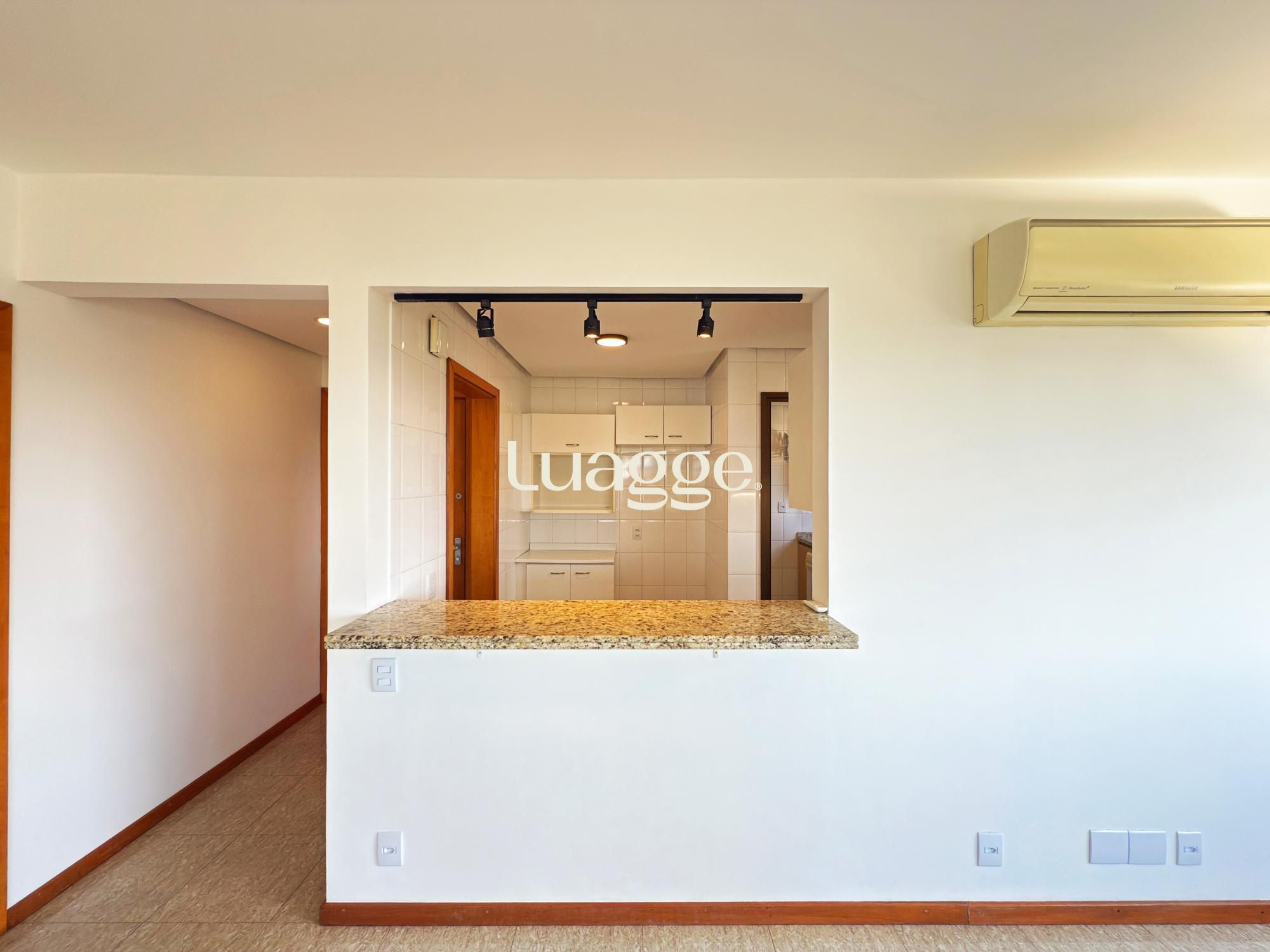 Apartamento com 84m² com 2 quartos, sendo 1 suíte e 1 closet/office, banheiro social, área de serviço, sala/sacada/cozinha integradas. Ar-condicionado na sala, quarto social e na suíte. Parrilla argentina na churrasqueira. Possui 1 vaga de garagem escriturada e coberta