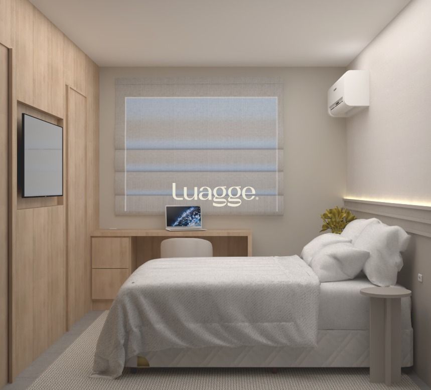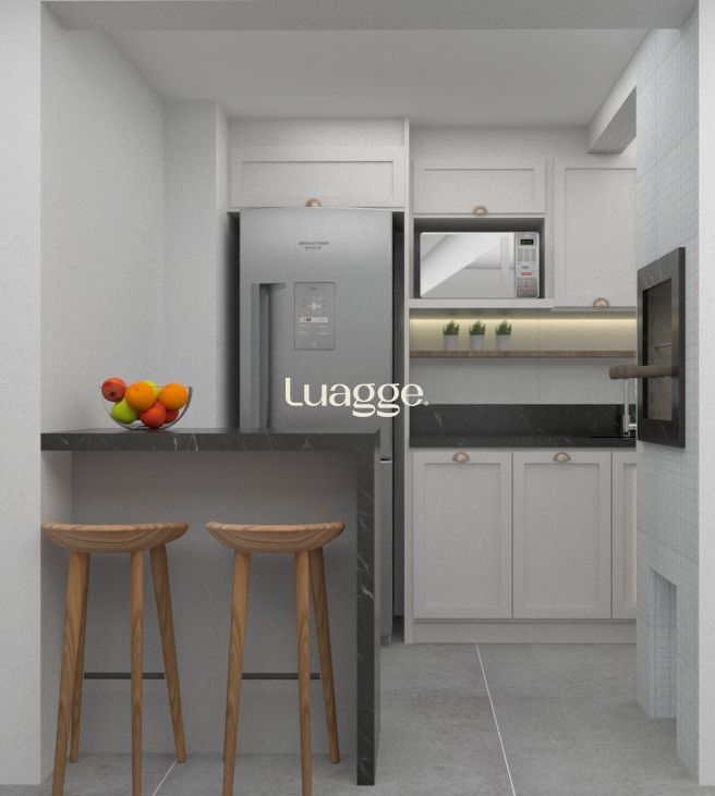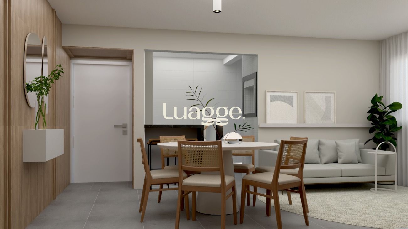 Apartamento novo de 2 quartos, suíte com closet, cozinha americana com churrasqueira, living 2 ambientes, área de serviço e banheiro social. 2 vagas de garagem coberta e escriturada. Prédio todo pastilhado, com gás central e medidores individuais de água e de gás.