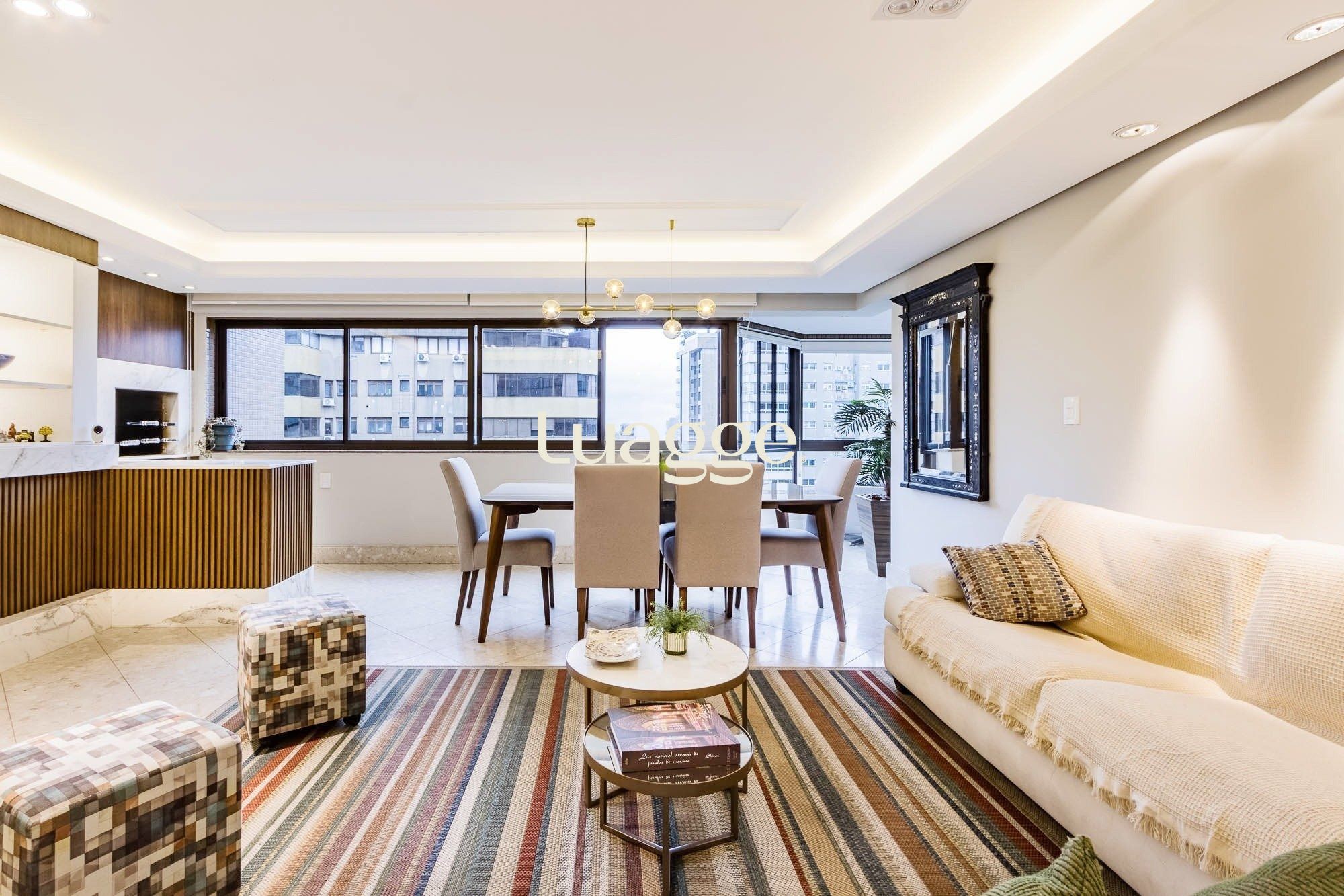 Excelente apartamento com 116,69 metros quadrados privativos, living para três ambientes com lareira e sacada integrada com churrasqueira, 3 dormitórios sendo uma suite, cozinha mobiliada com área de serviço separada e banheiro auxiliar.