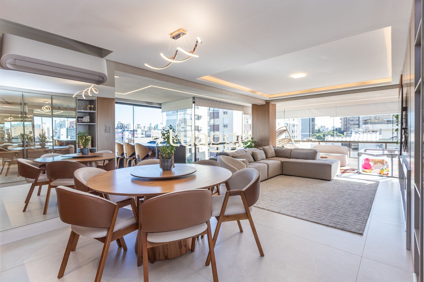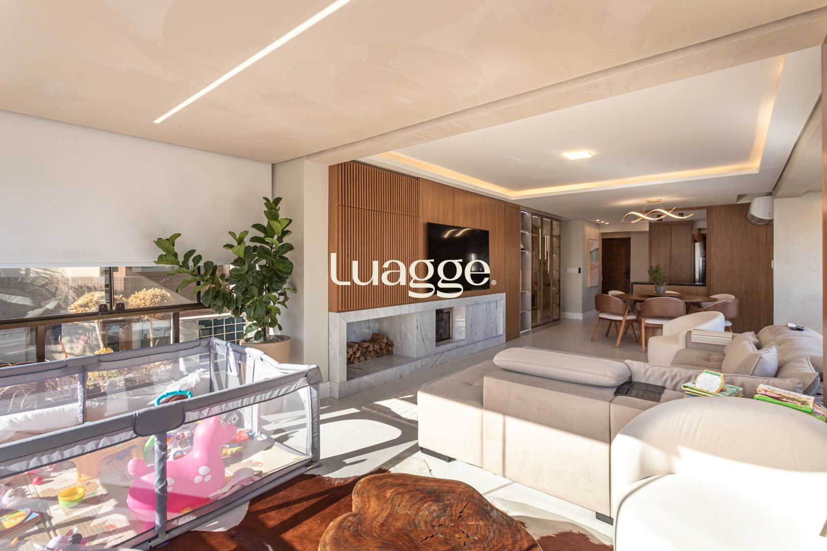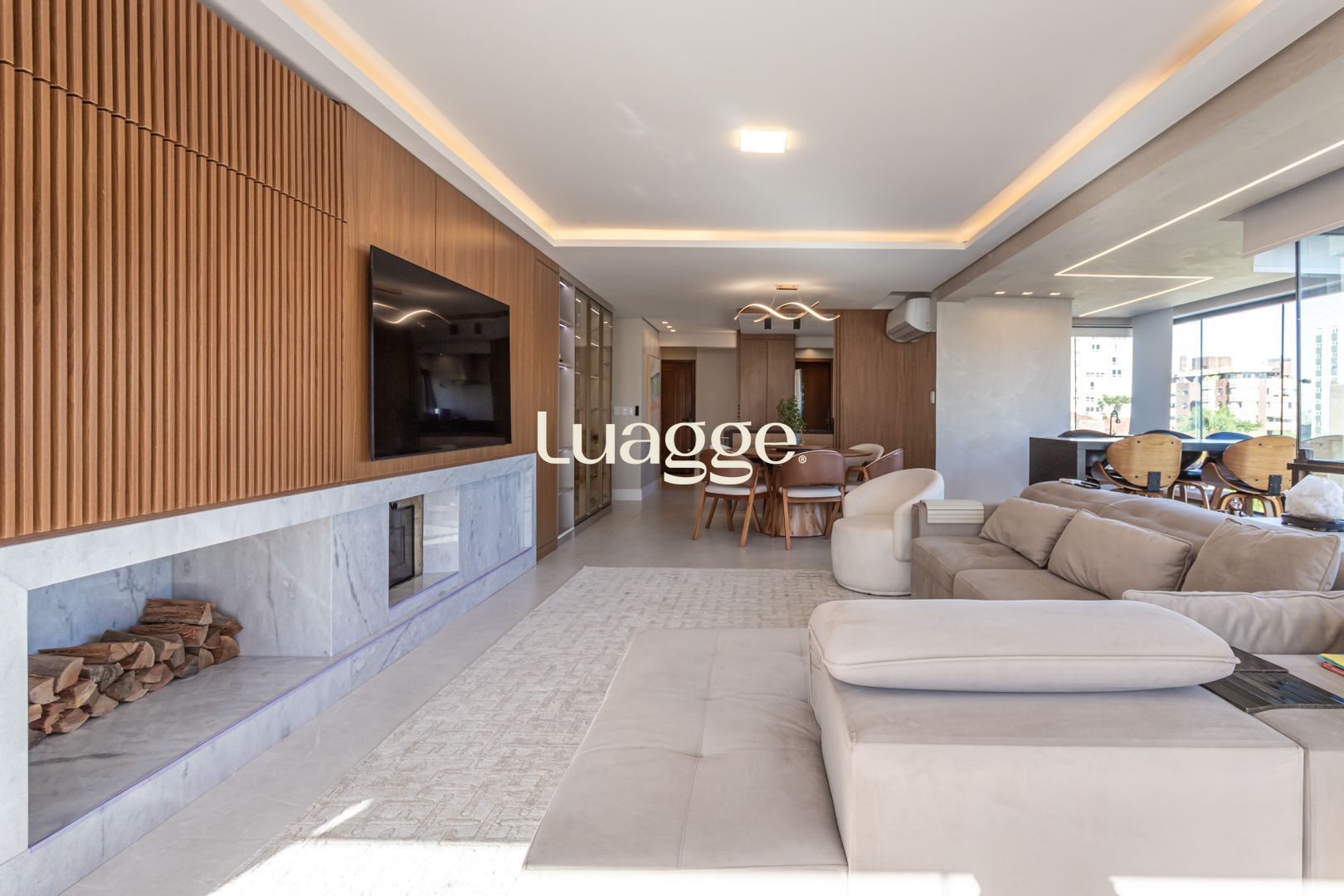 O imóvel destaca-se pela decoração refinada, com lareira, churrasqueira e excelente padrão de acabamento.