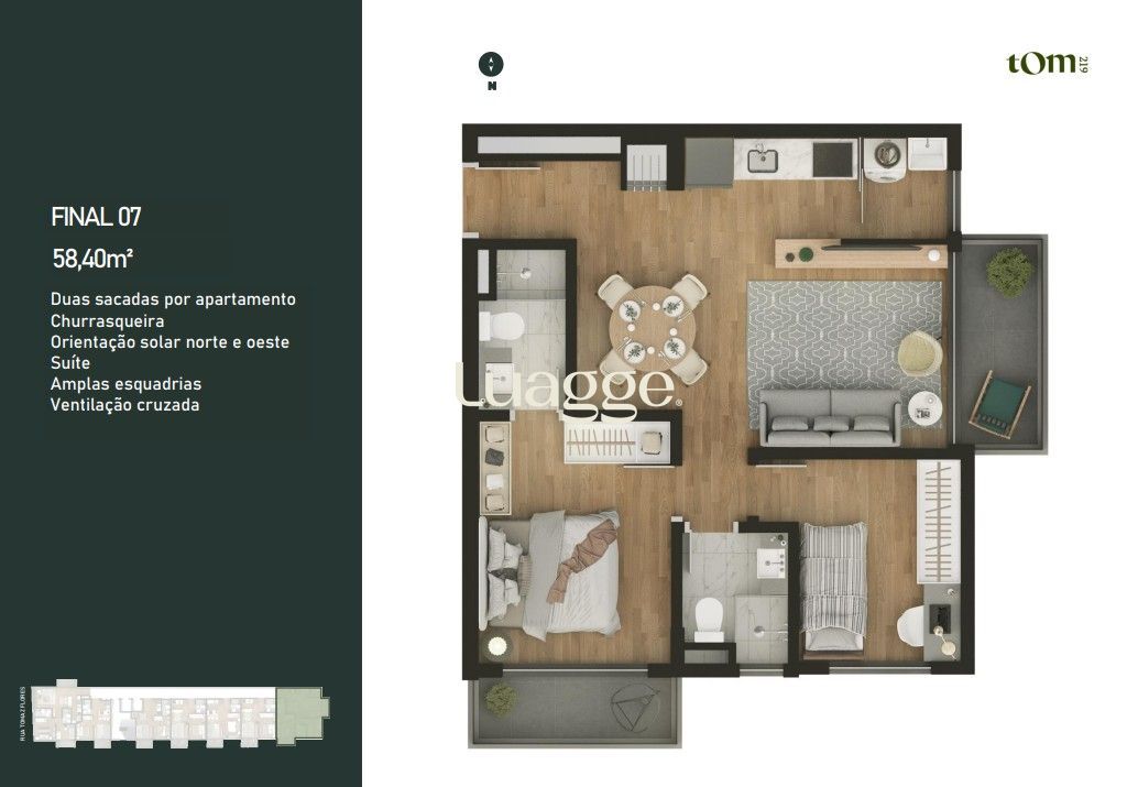 Com 114,81m² privativos, este apto de 2 dormitório com 1 suíte, conta com 2 amplos terraços, ótima posição solar, norte e oeste, ventilação cruzada.