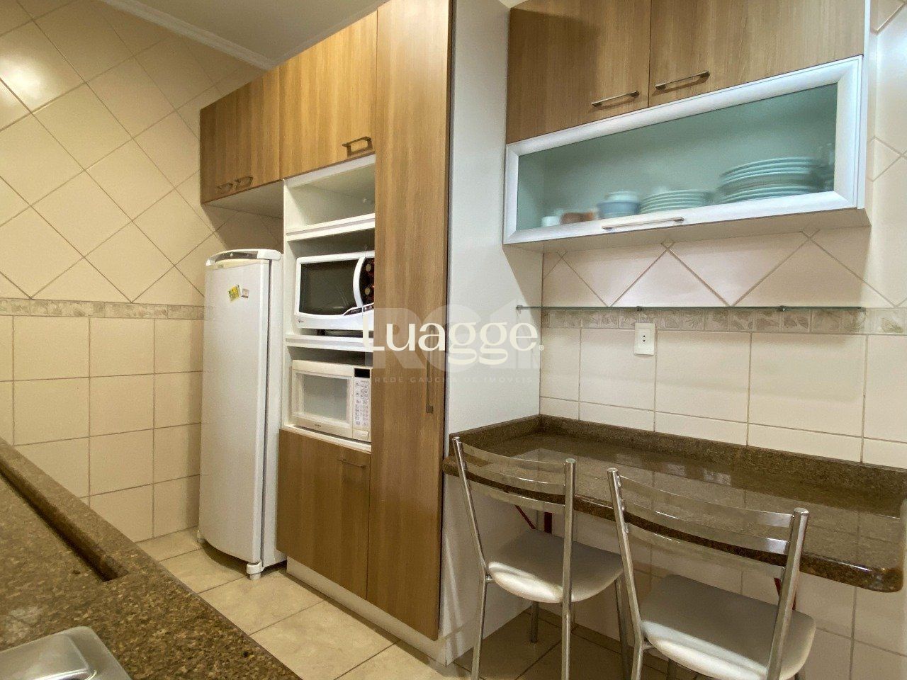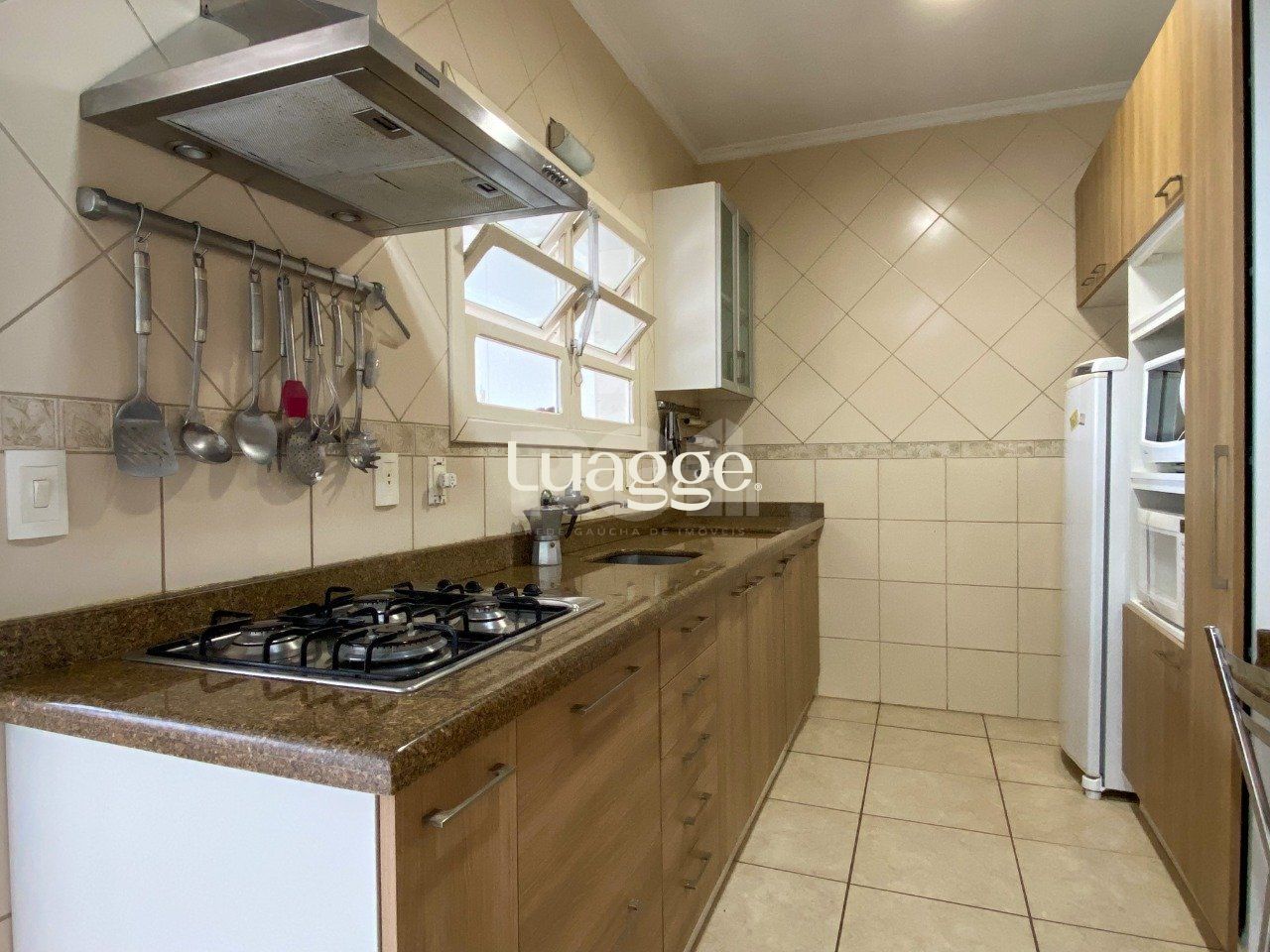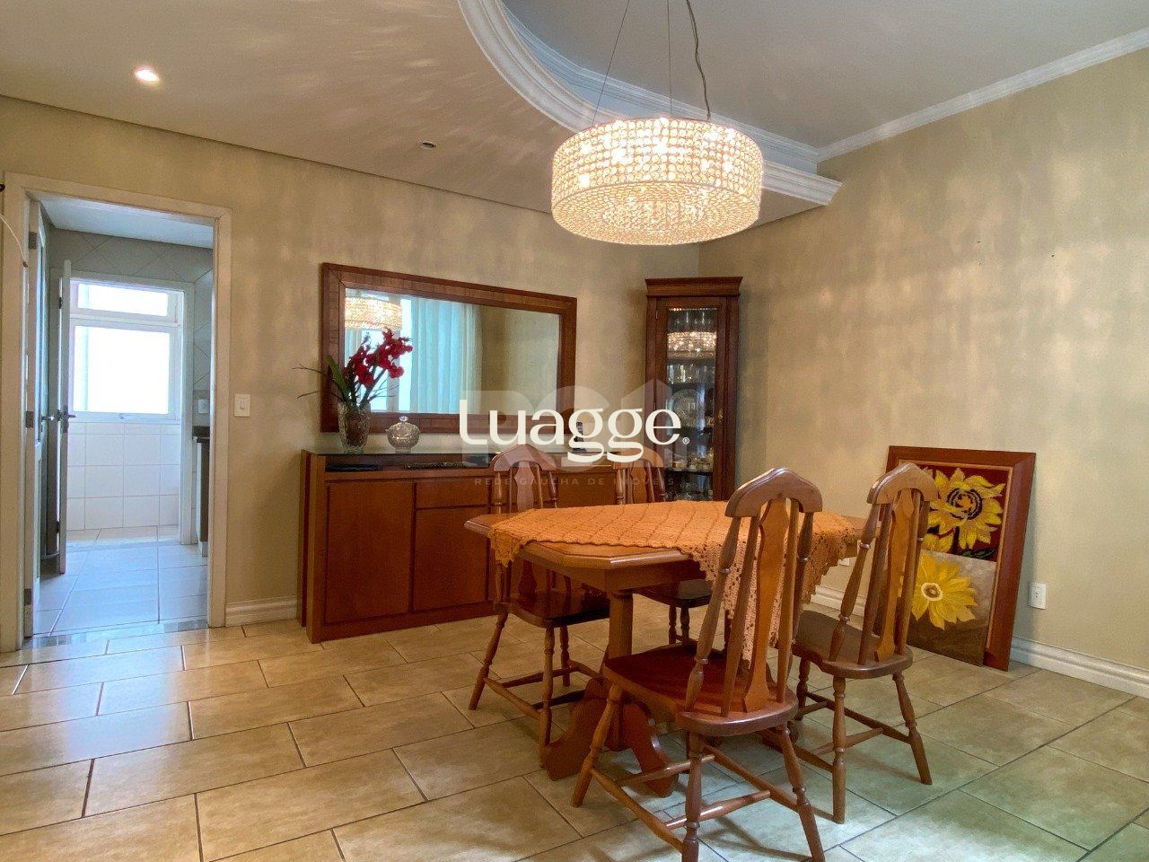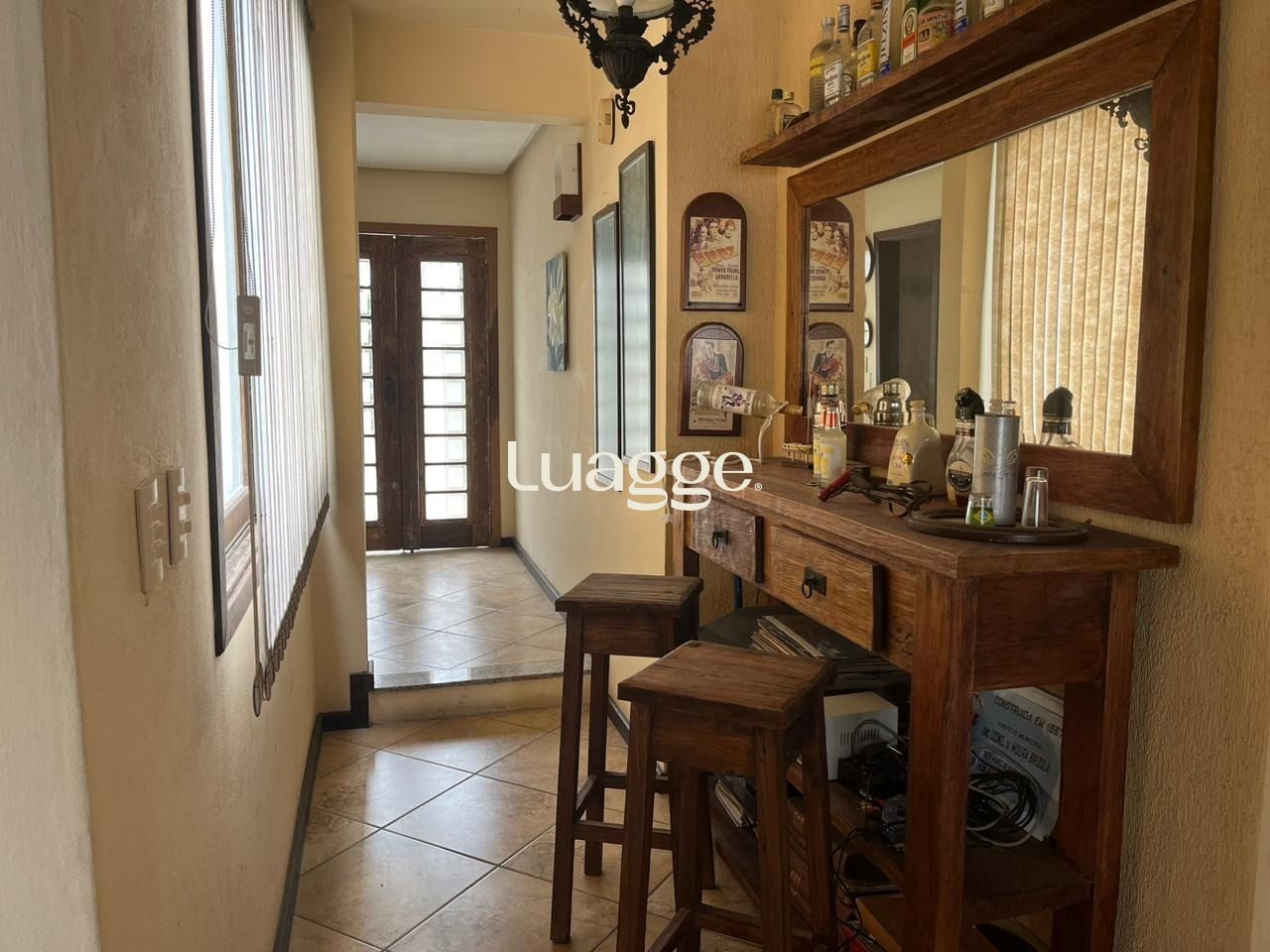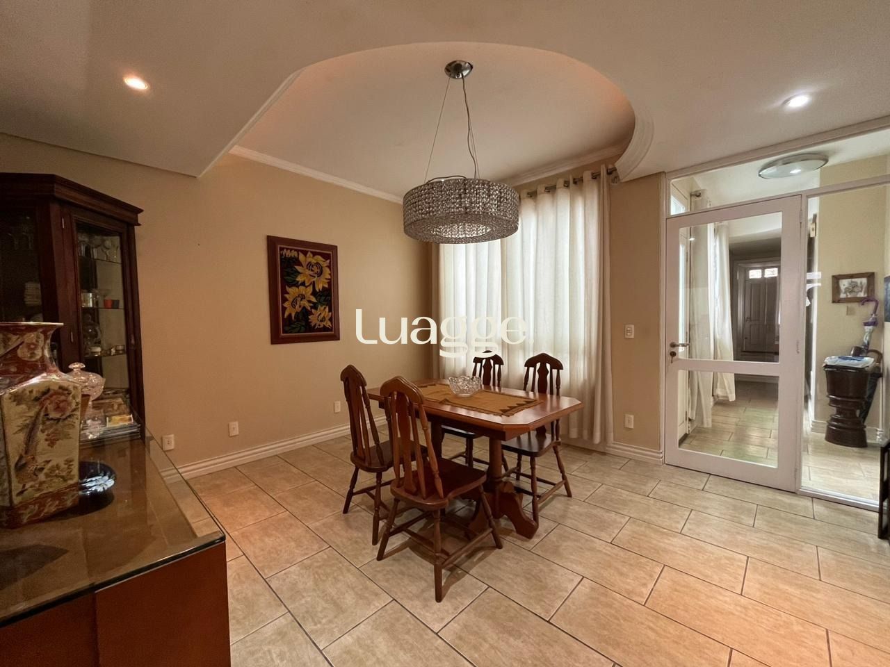 No pavimento térreo, possui sala de estar, lavabo, sala de jantar, cozinha e área de serviço, sendo a cozinha mobiliada com móveis sob medida.