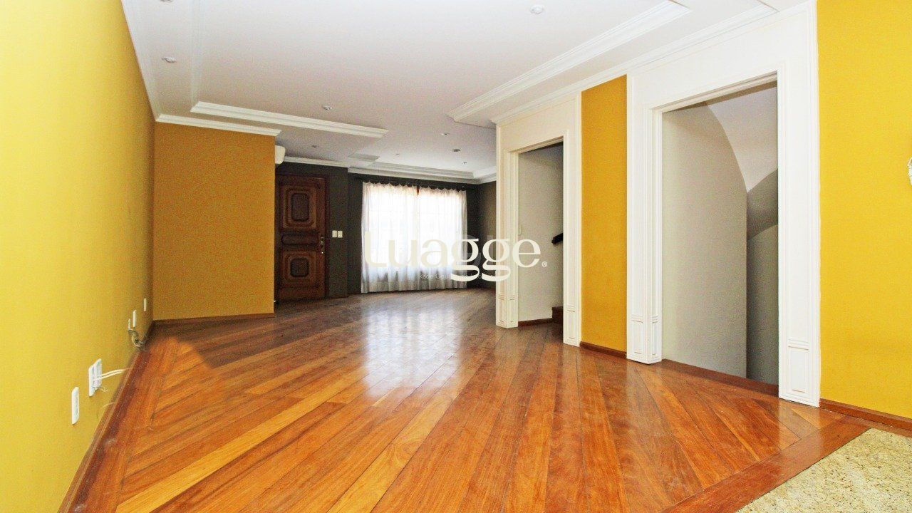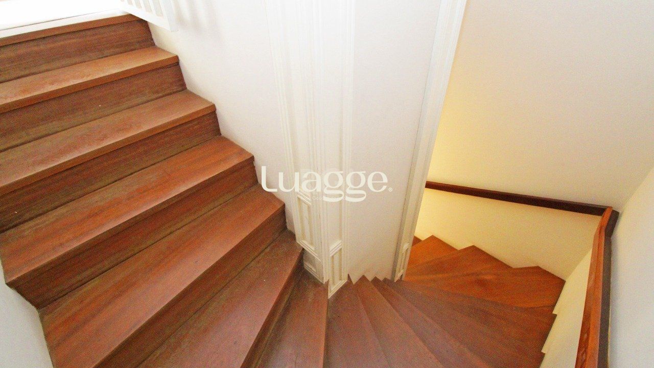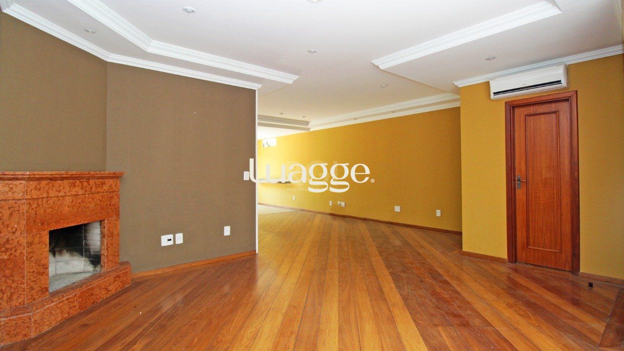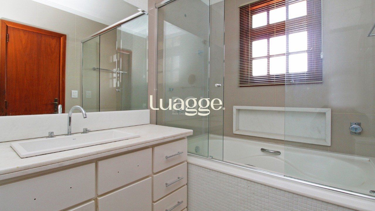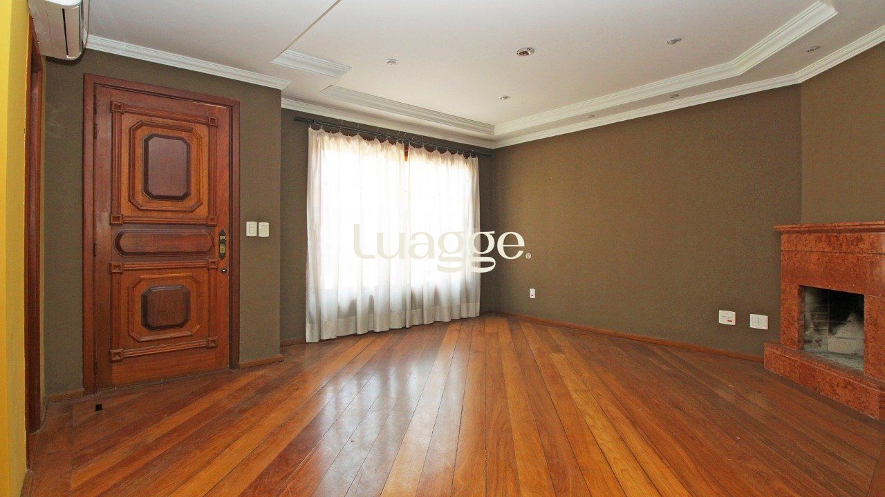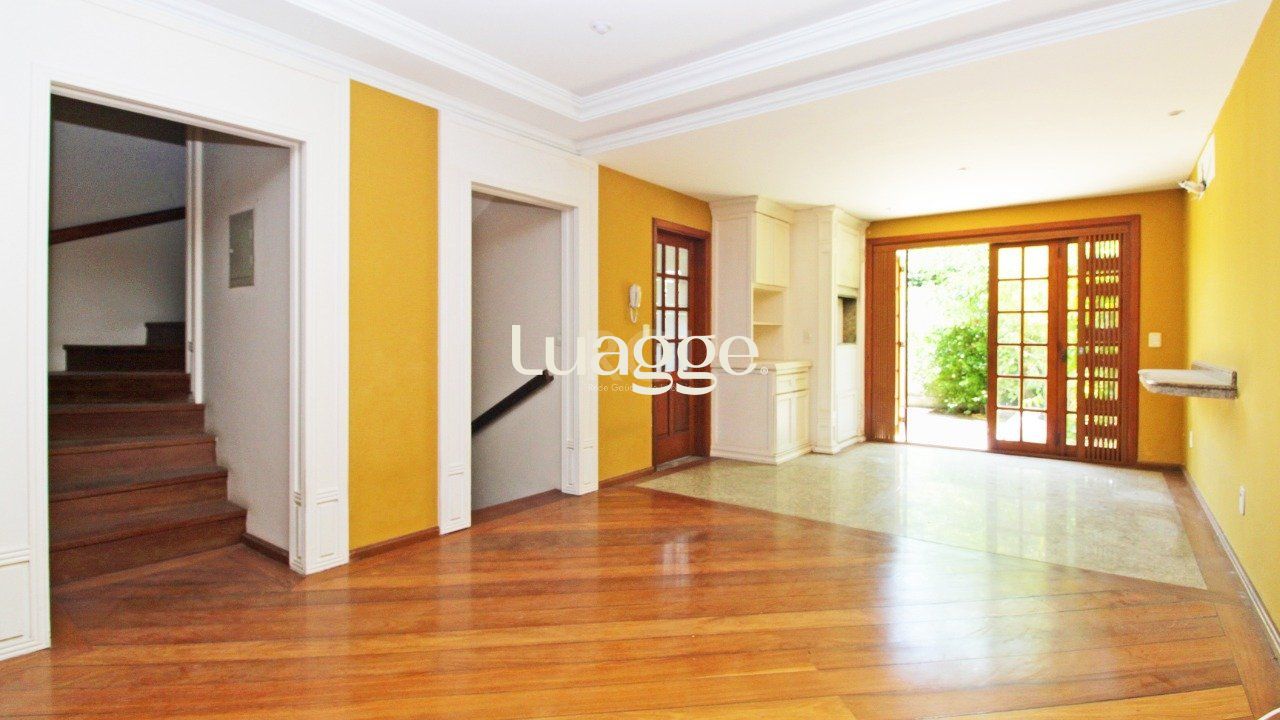 São três (3) dormitórios no andar superior , uma (1) suíte com banheira de hidromassagem, no andar térreo living amplo para dois ambientes com lareira e churrasqueira, lavabo, cozinha, área de serviço, pátio com piscina, no subsolo garagem para dois carros , dormitório amplo , mais um banheiro.