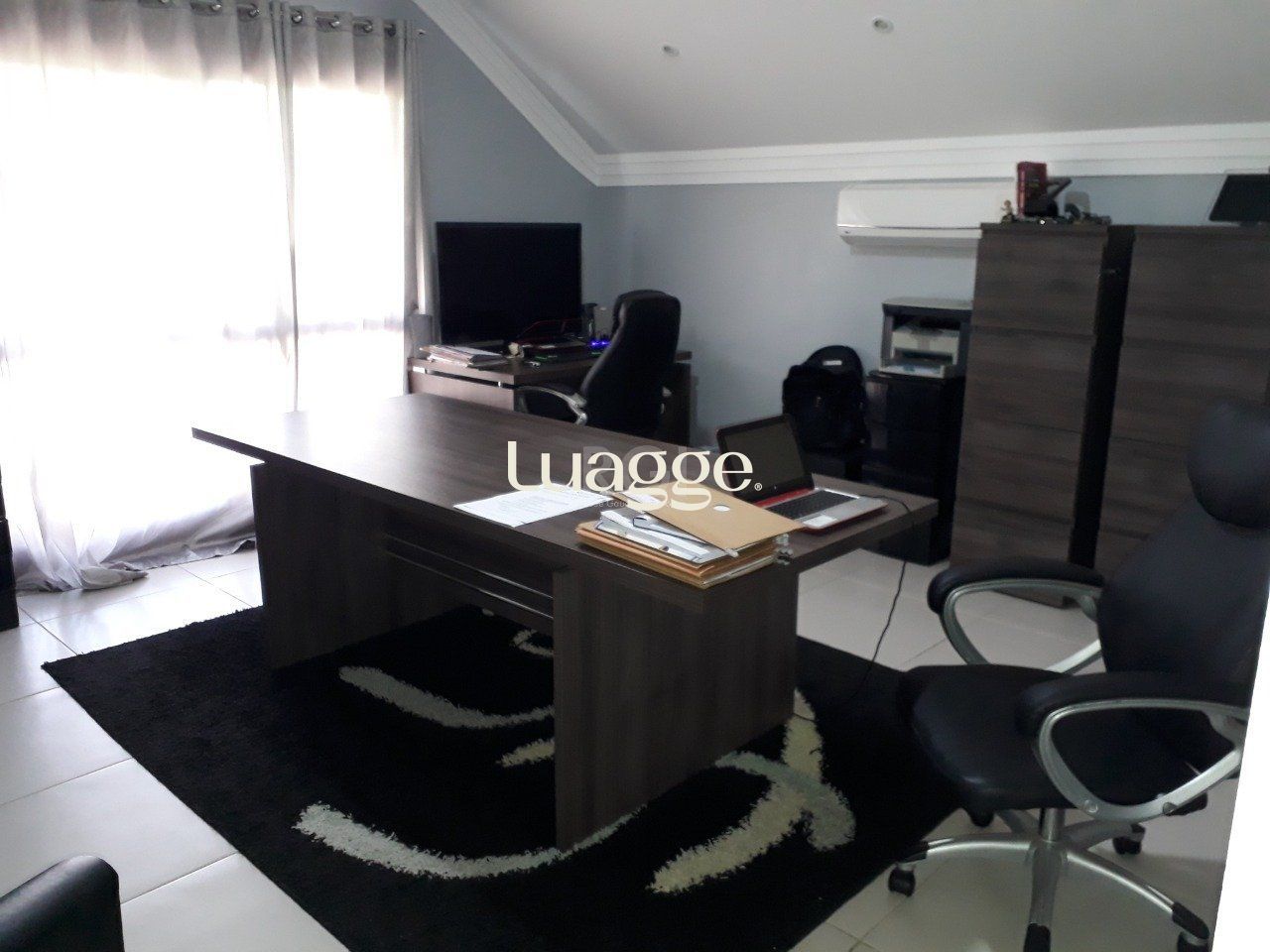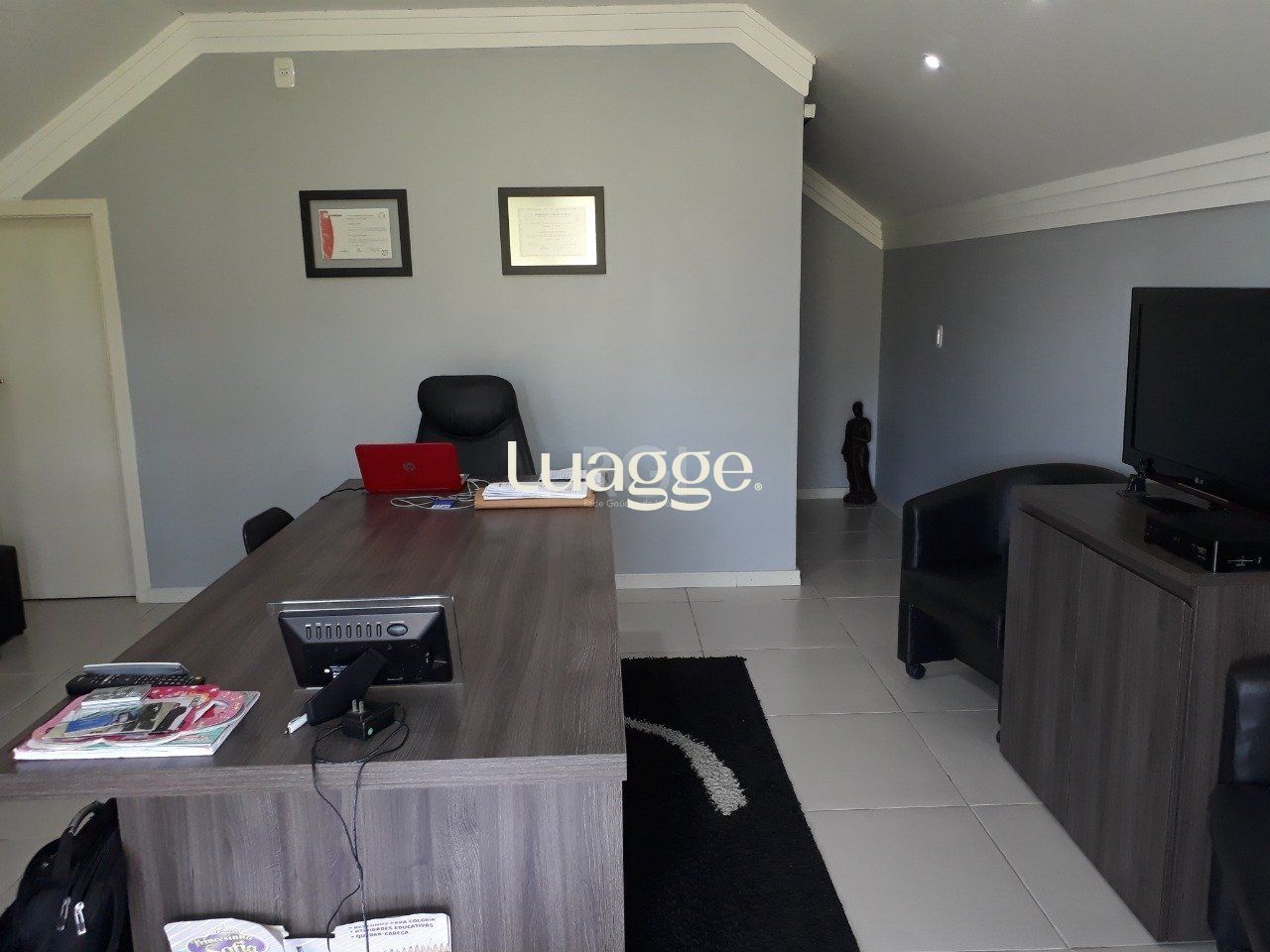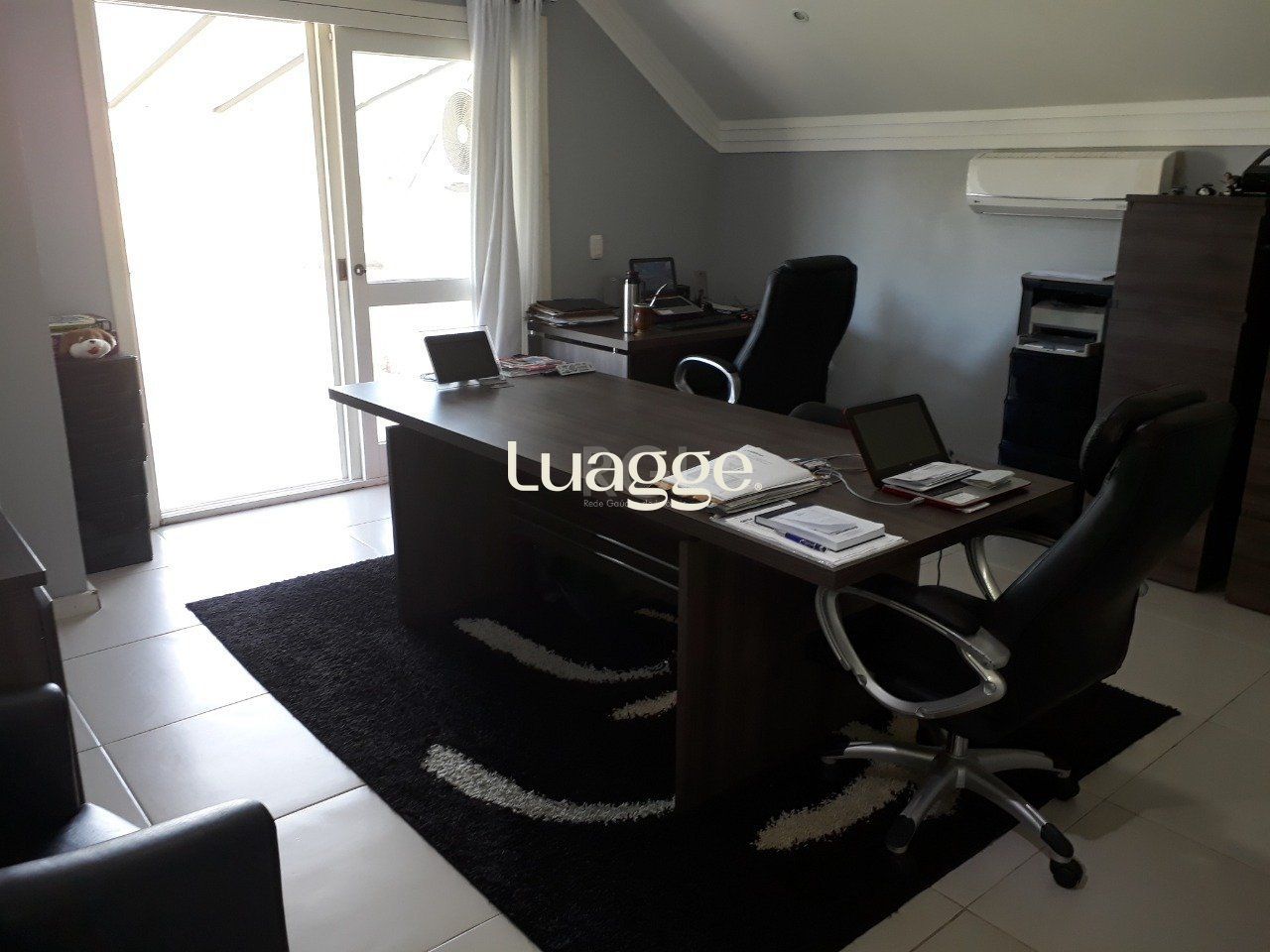 No terceiro piso escritório com sacada;