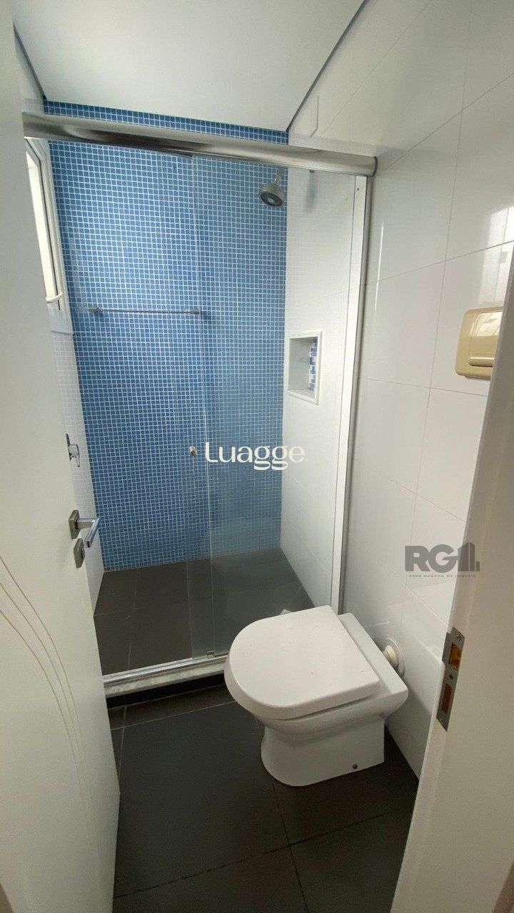 Fechamento frontal com vidros temperados.