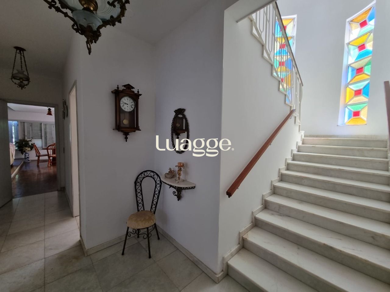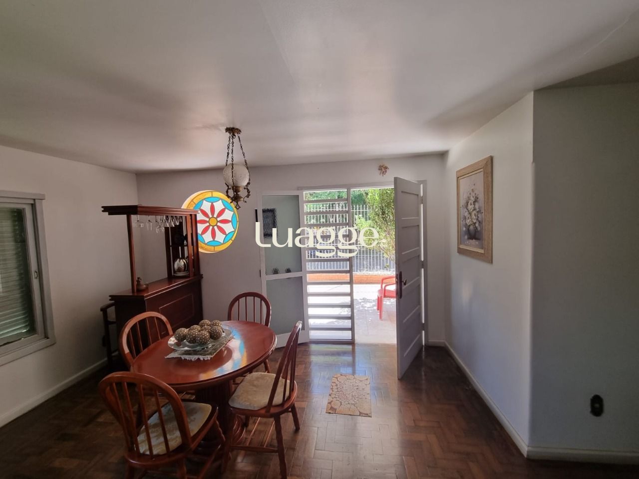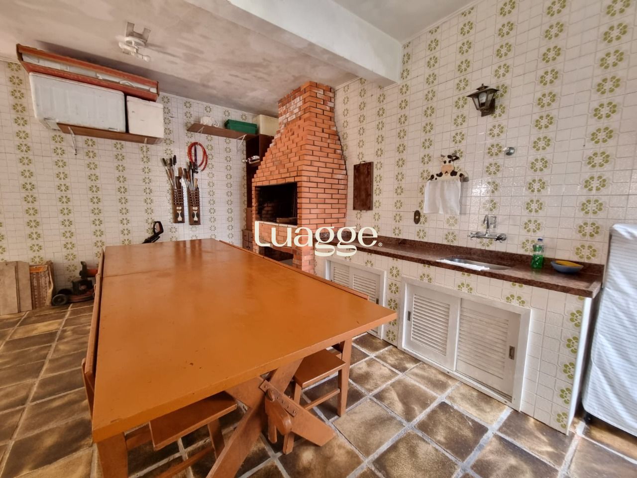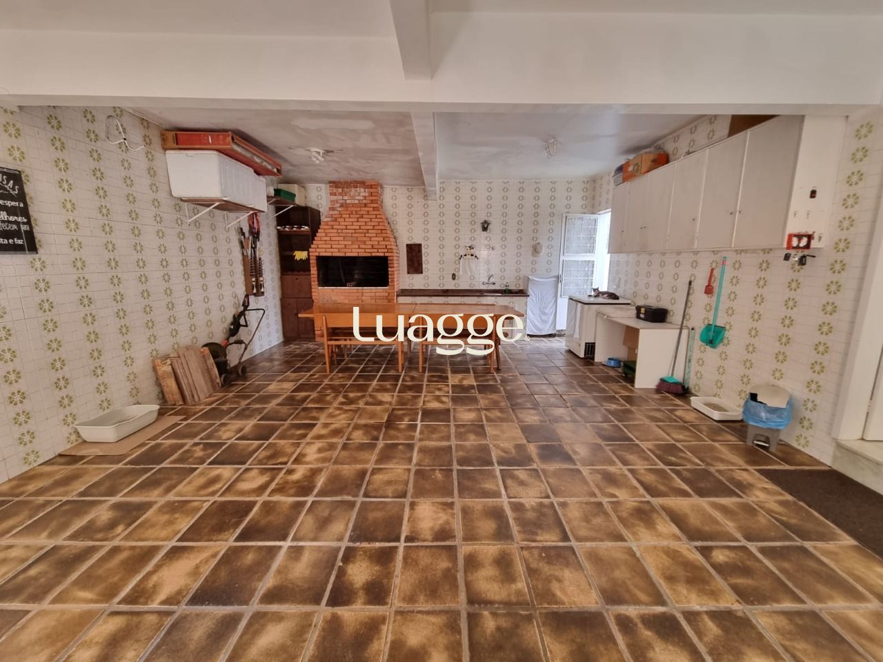 Possui living para 02 ambientes com lareira e lavabo, cozinha ampla com despensa, quarto no térreo, garagem coberta para 02 carros, churrasqueira e pequeno pátio nos fundos.