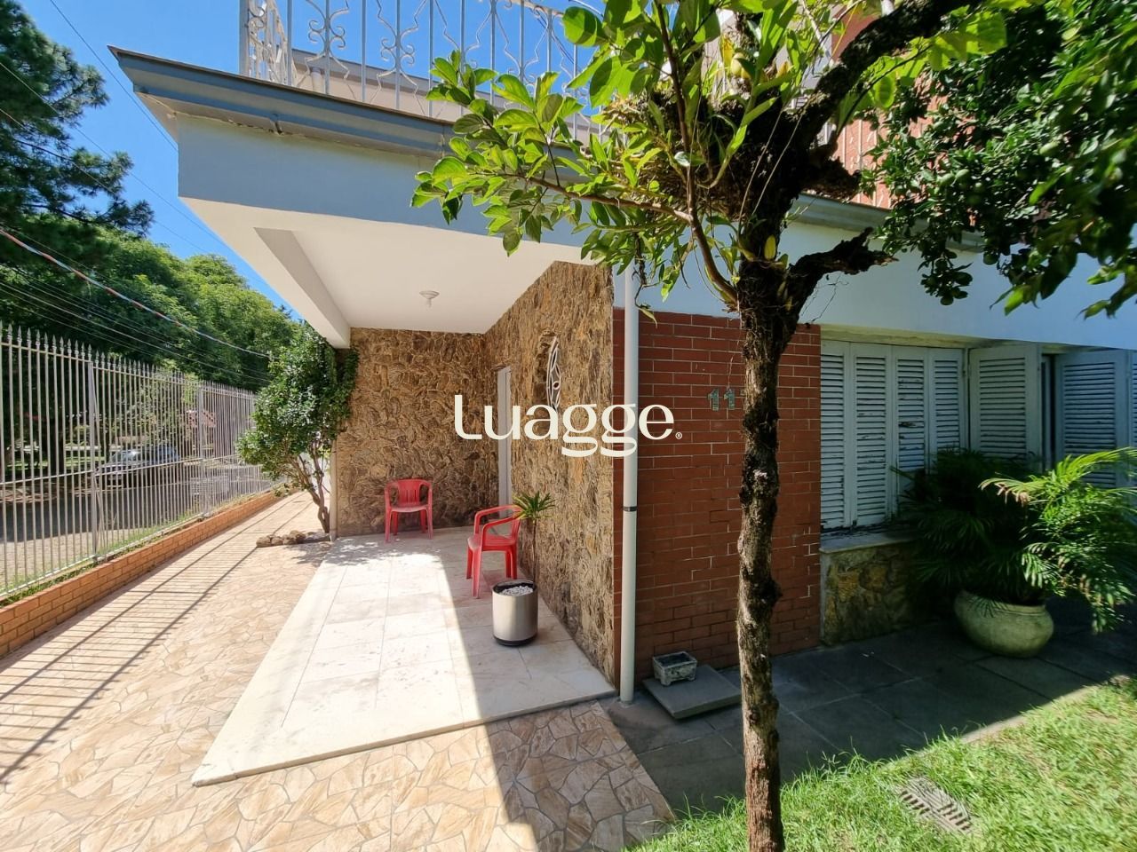 Casa com árvores frutíferas.
