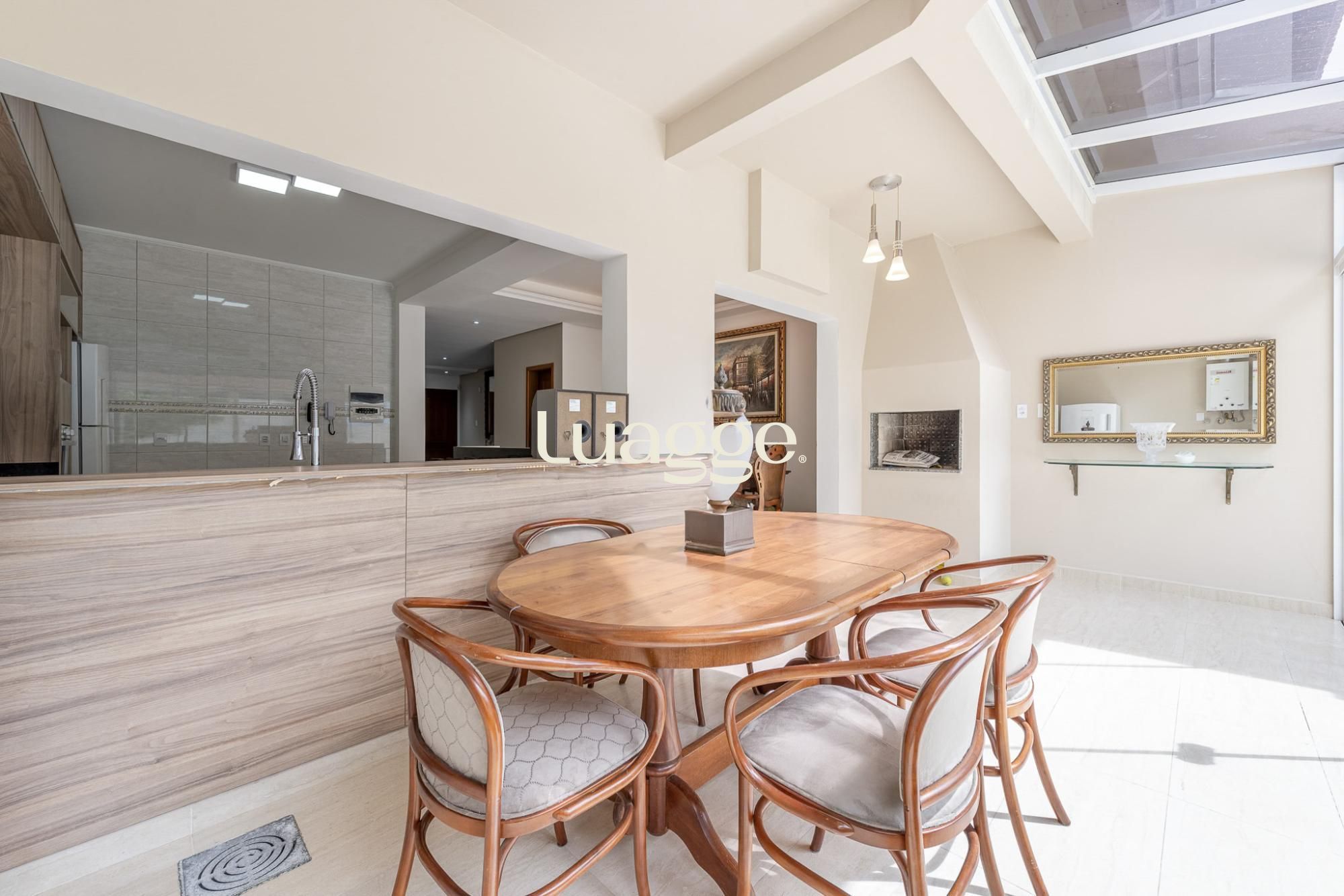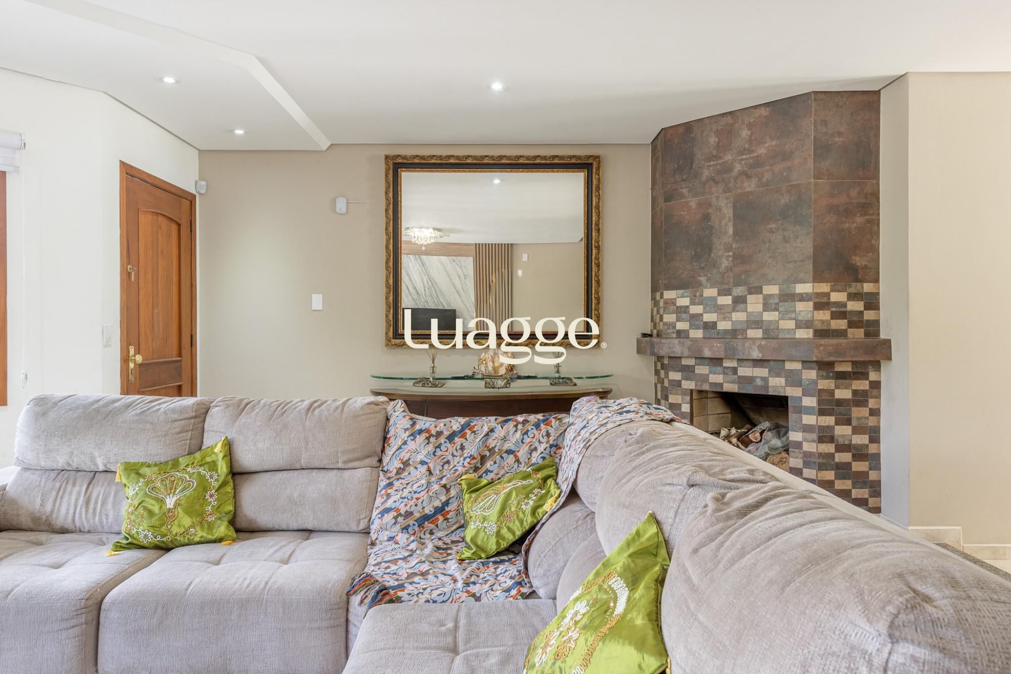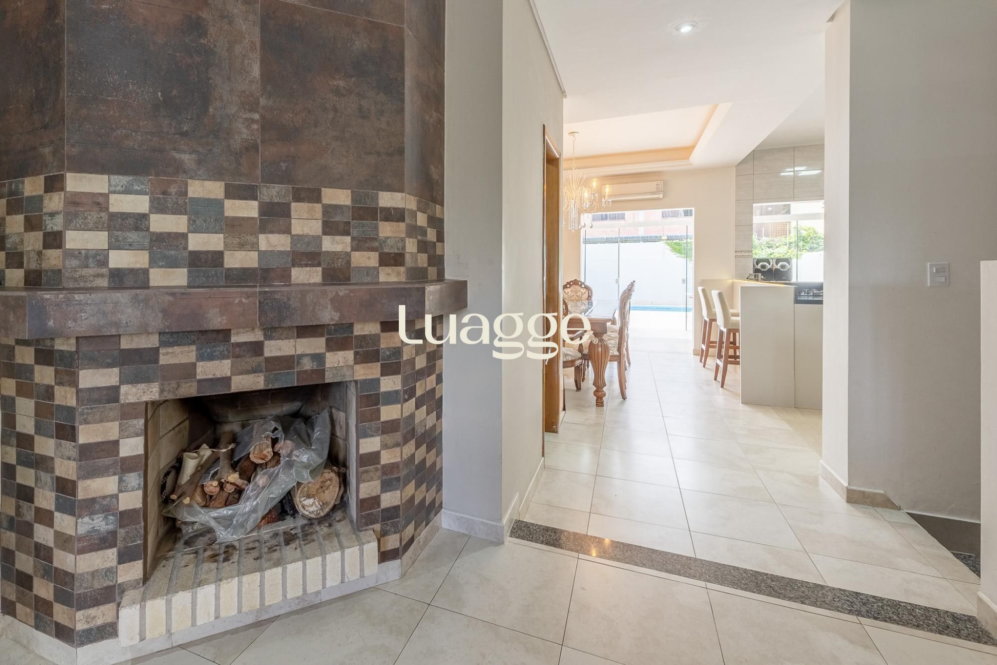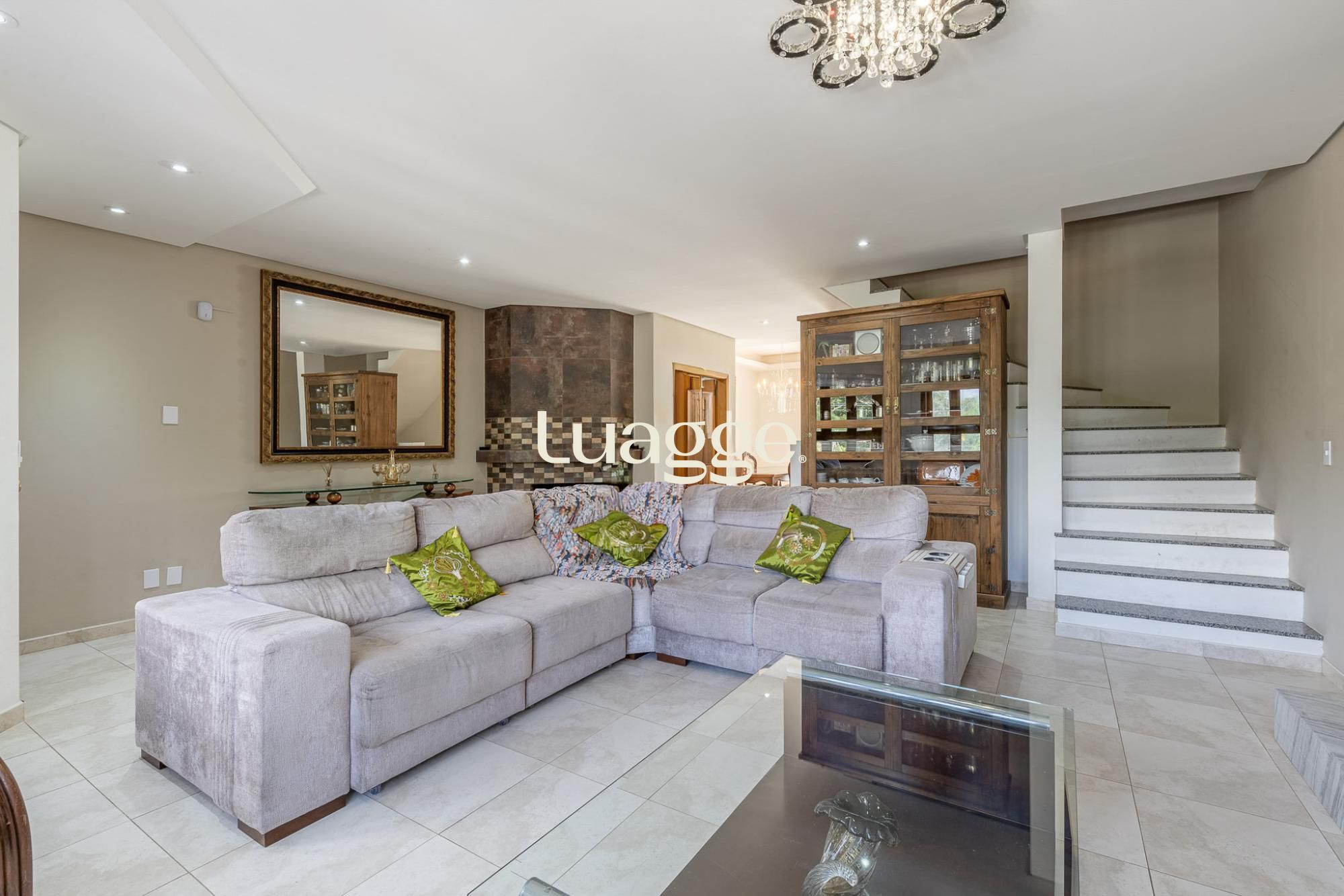 O primeiro pavimento oferece living para 2 ambientes com lareira, lavabo, cozinha americana planejada com sala de jantar e churrasqueira. Pátio amplo com jardim e piscina.