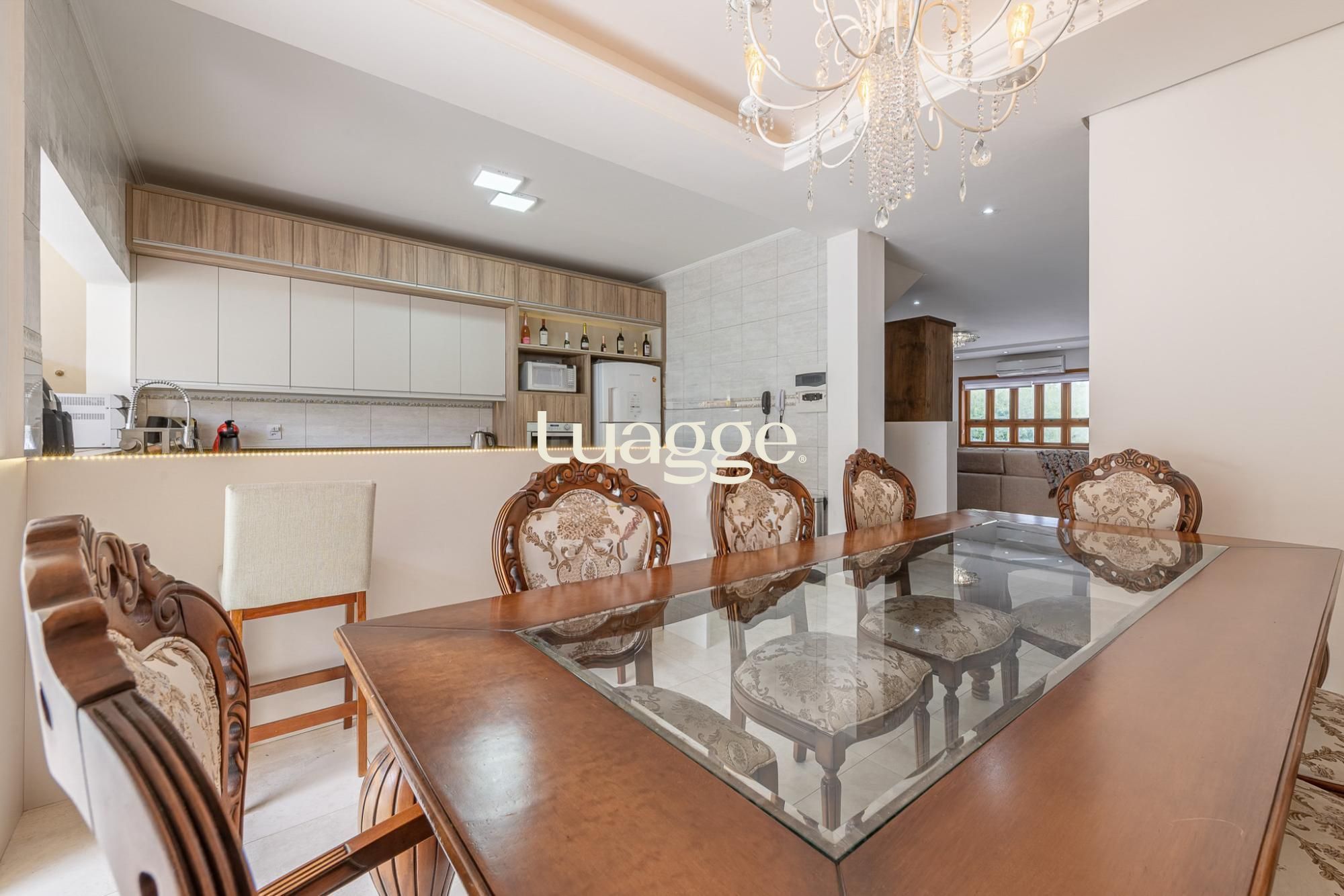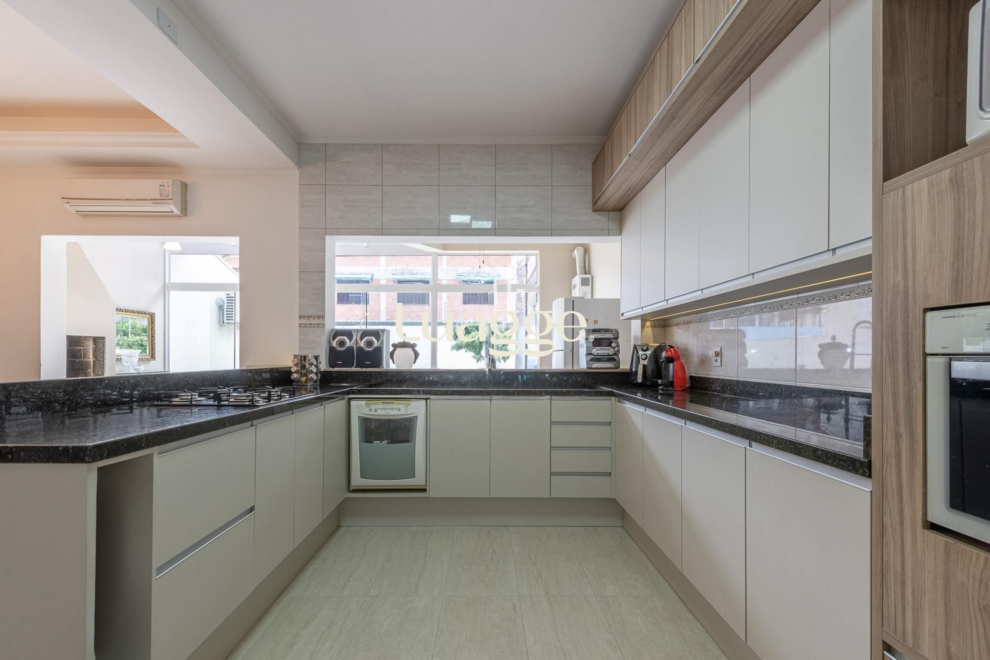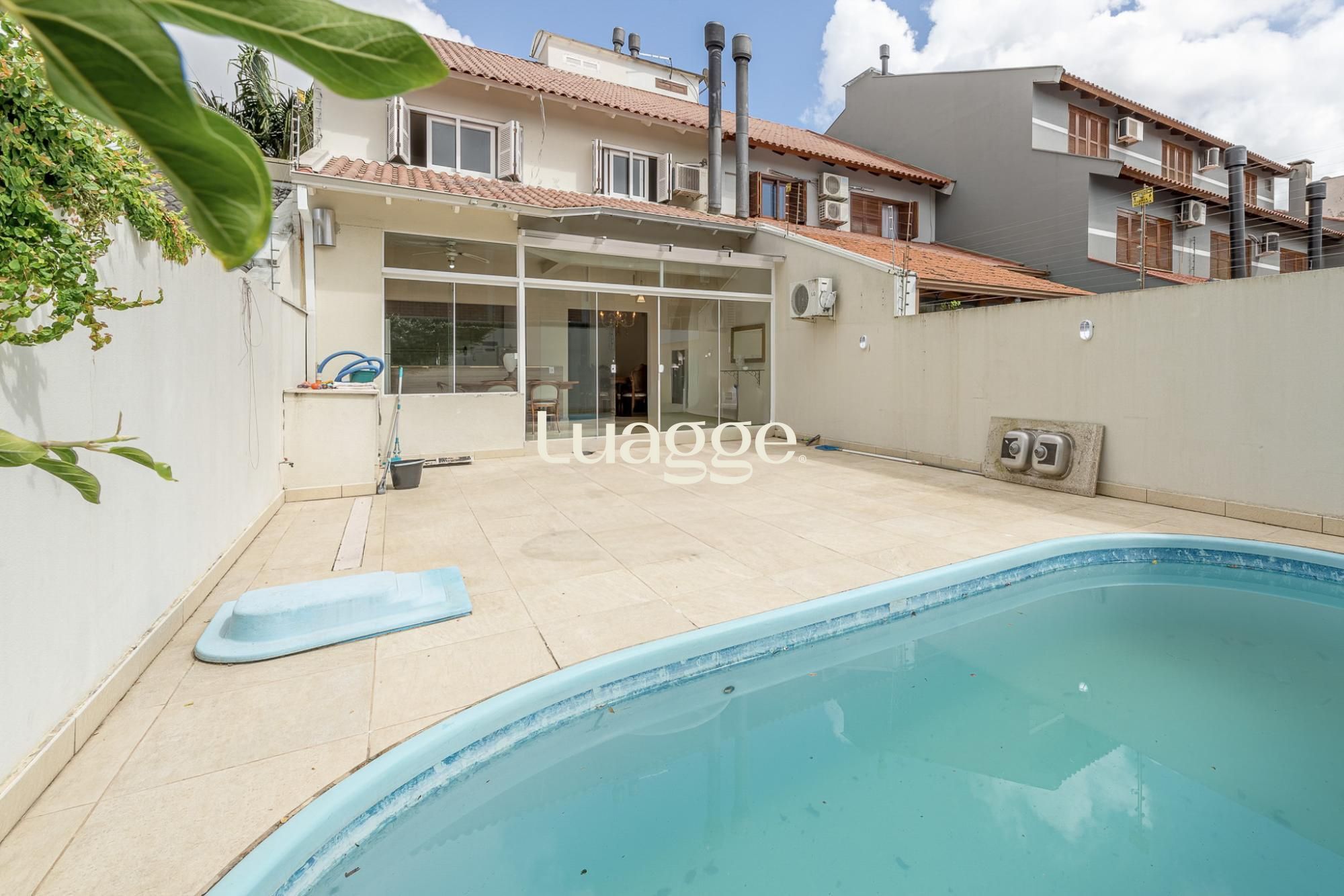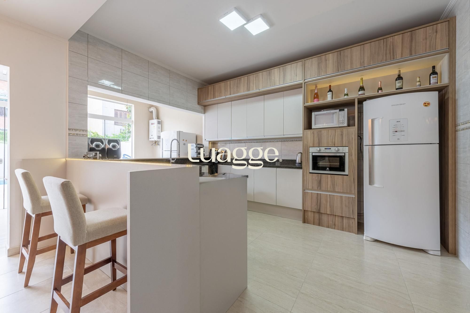 O primeiro pavimento oferece living para 2 ambientes com lareira, lavabo, cozinha americana planejada com sala de jantar e churrasqueira. Pátio amplo com jardim e piscina.