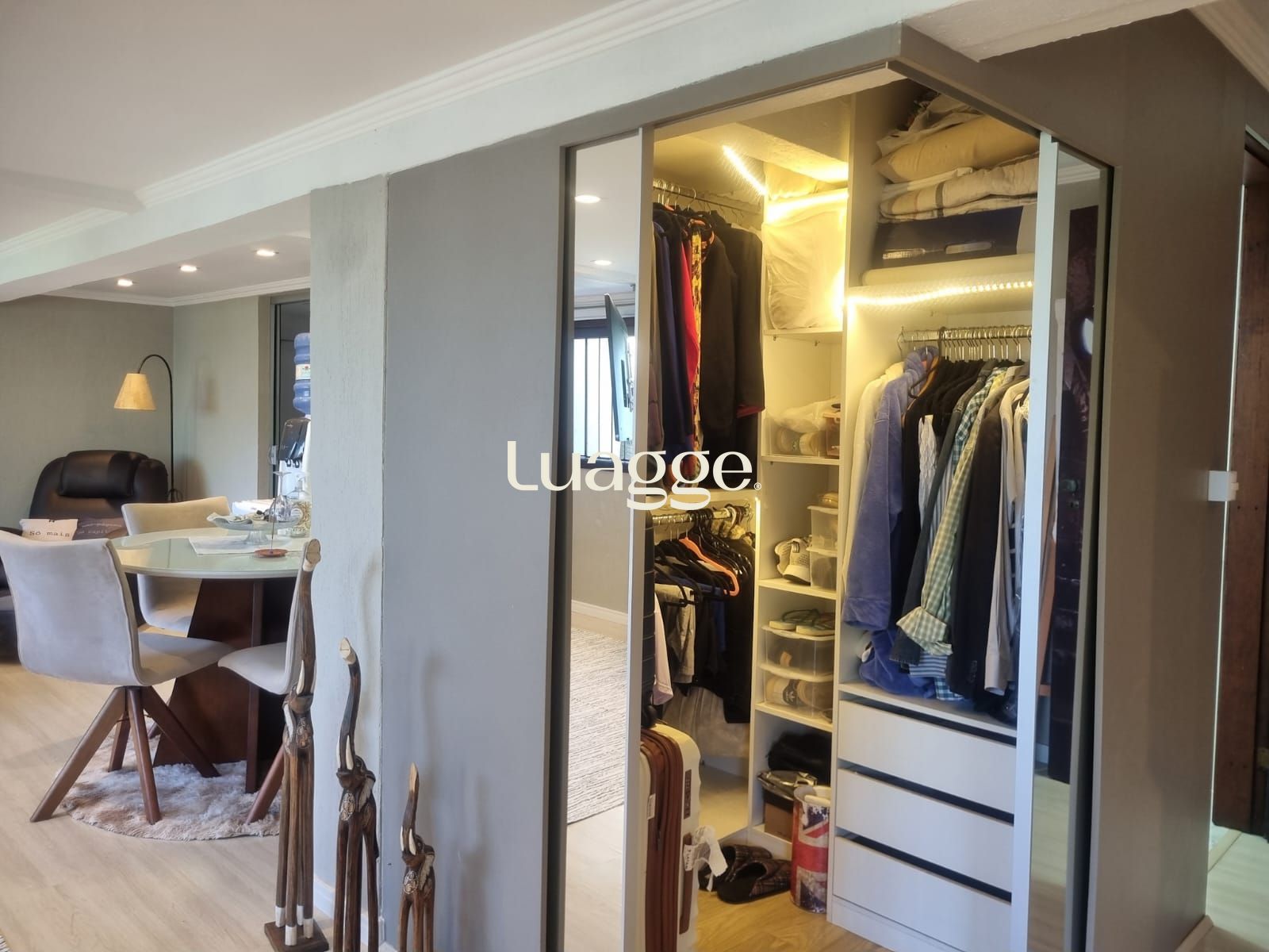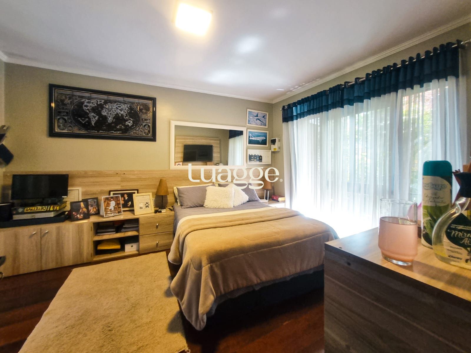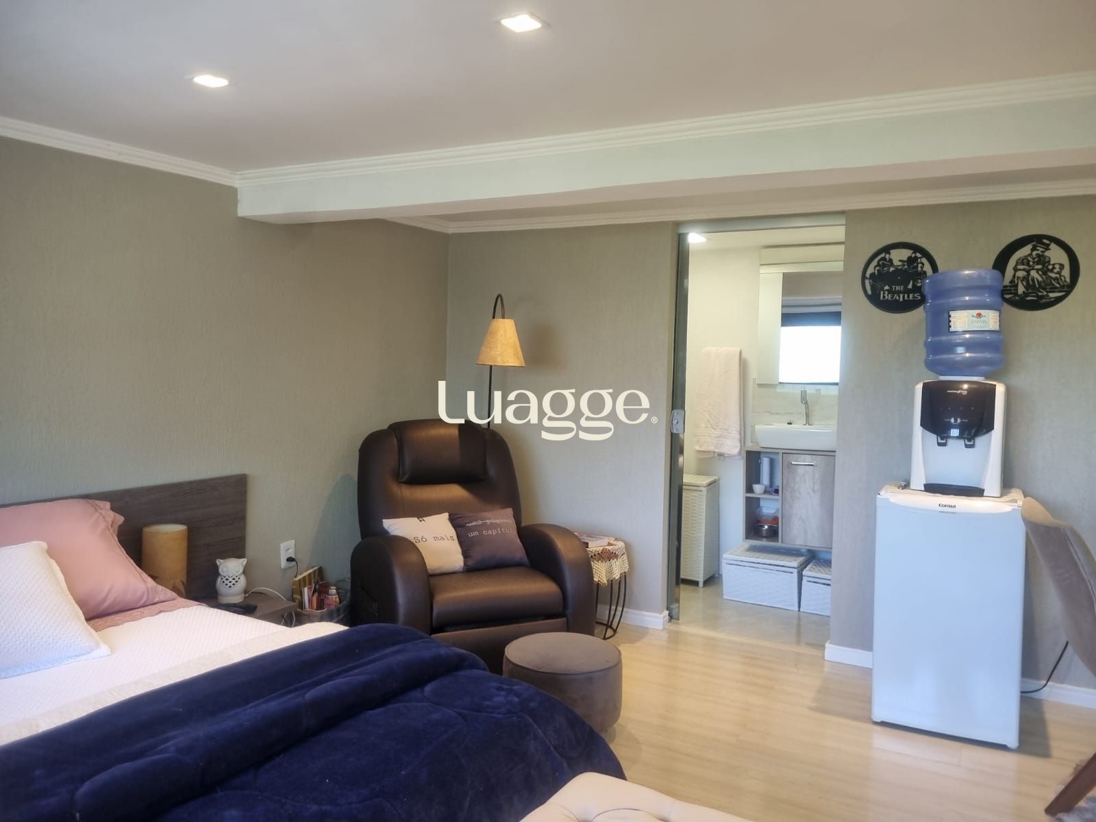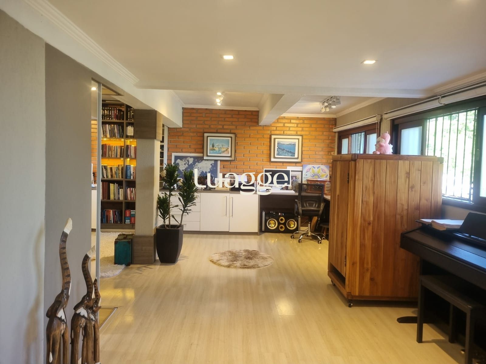 Um dos andares é totalmente destinado à suíte ou dormitório master, integrando: Biblioteca, Sala íntima e Escritório.