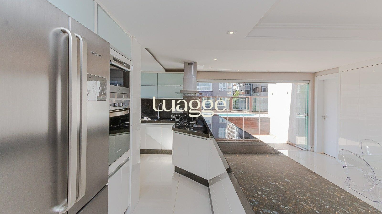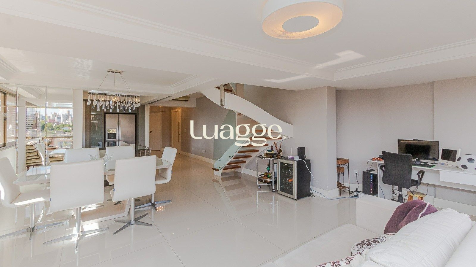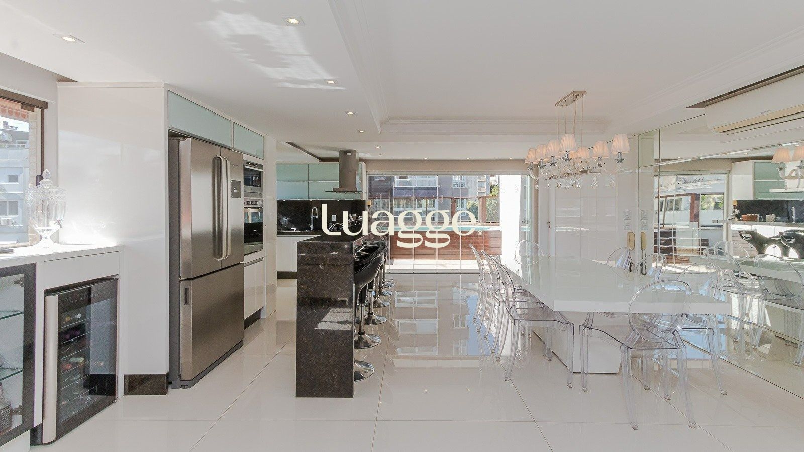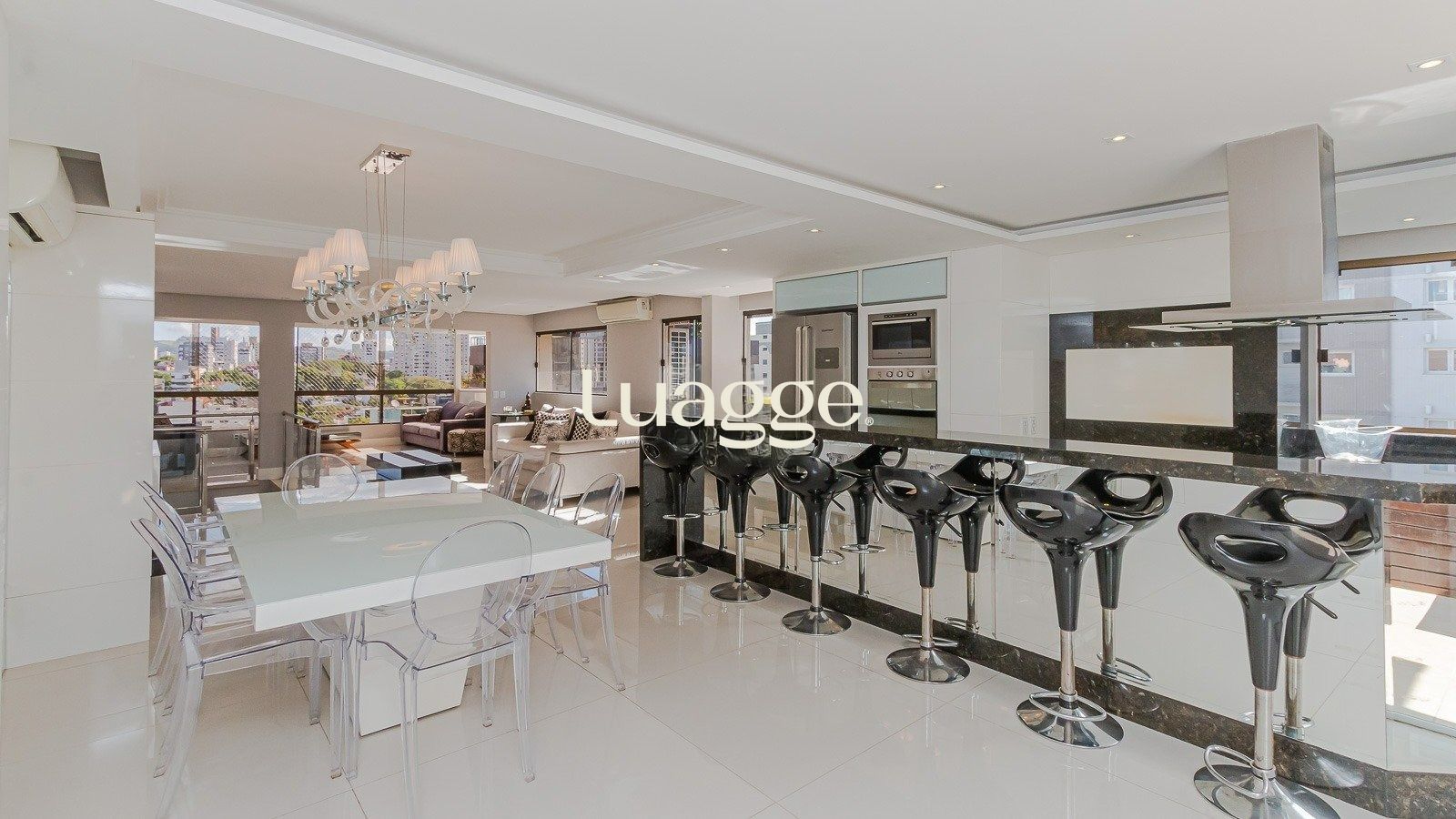 No segundo piso, prepare-se para se surpreender: um amplo living com quase 120 m², ideal para receber amigos e família com conforto e estilo. O espaço conta com uma cozinha gourmet equipada, churrasqueira, bar e acesso ao terraço aberto com piscina – tudo isso com uma vista panorâmica incrível.