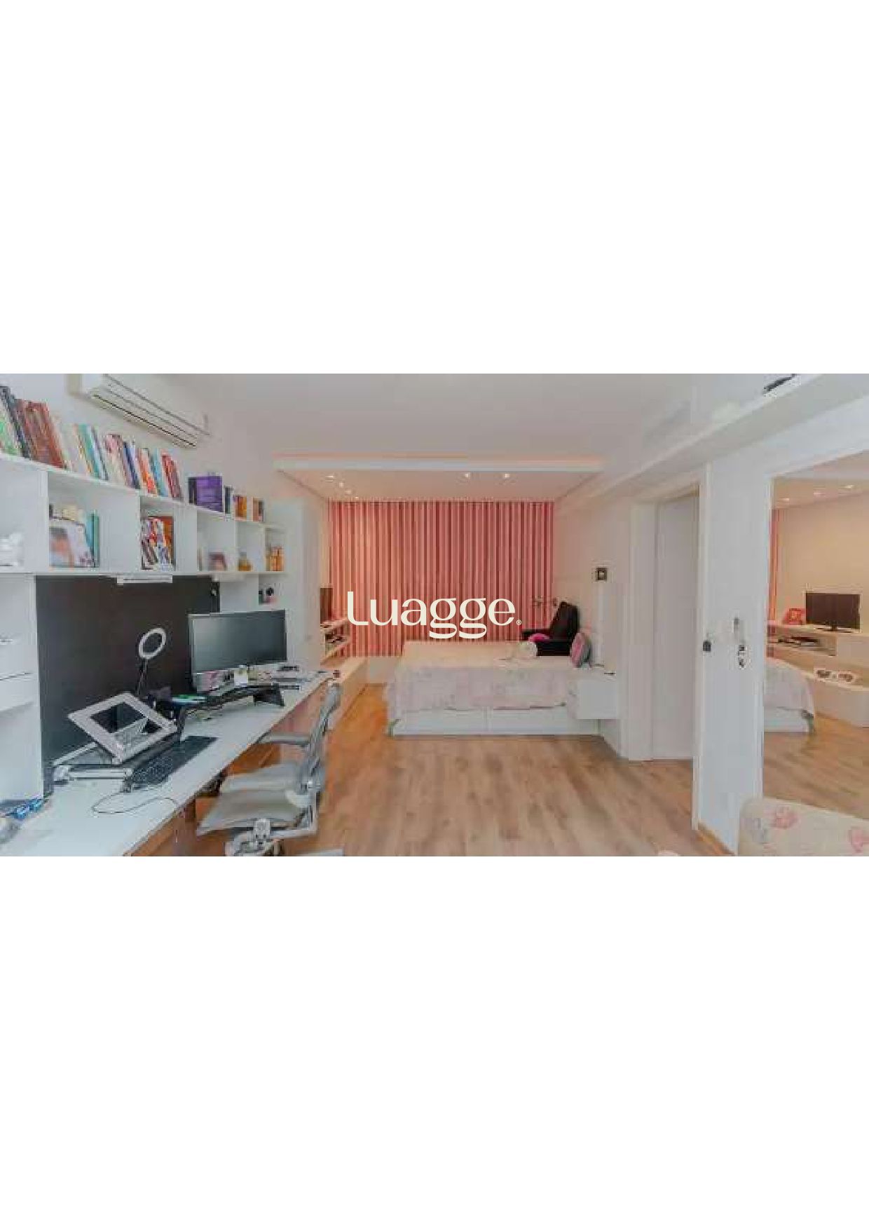 1 suite master com closet e gabinete, 2 terraços abertos com jardins, lavabo.