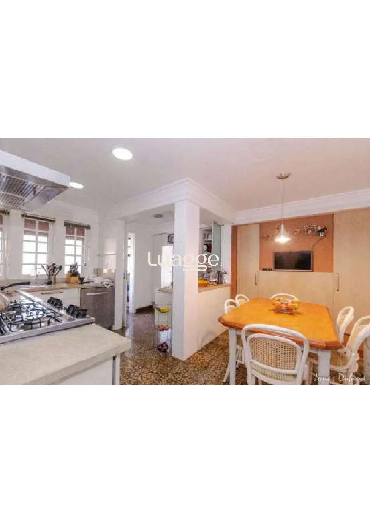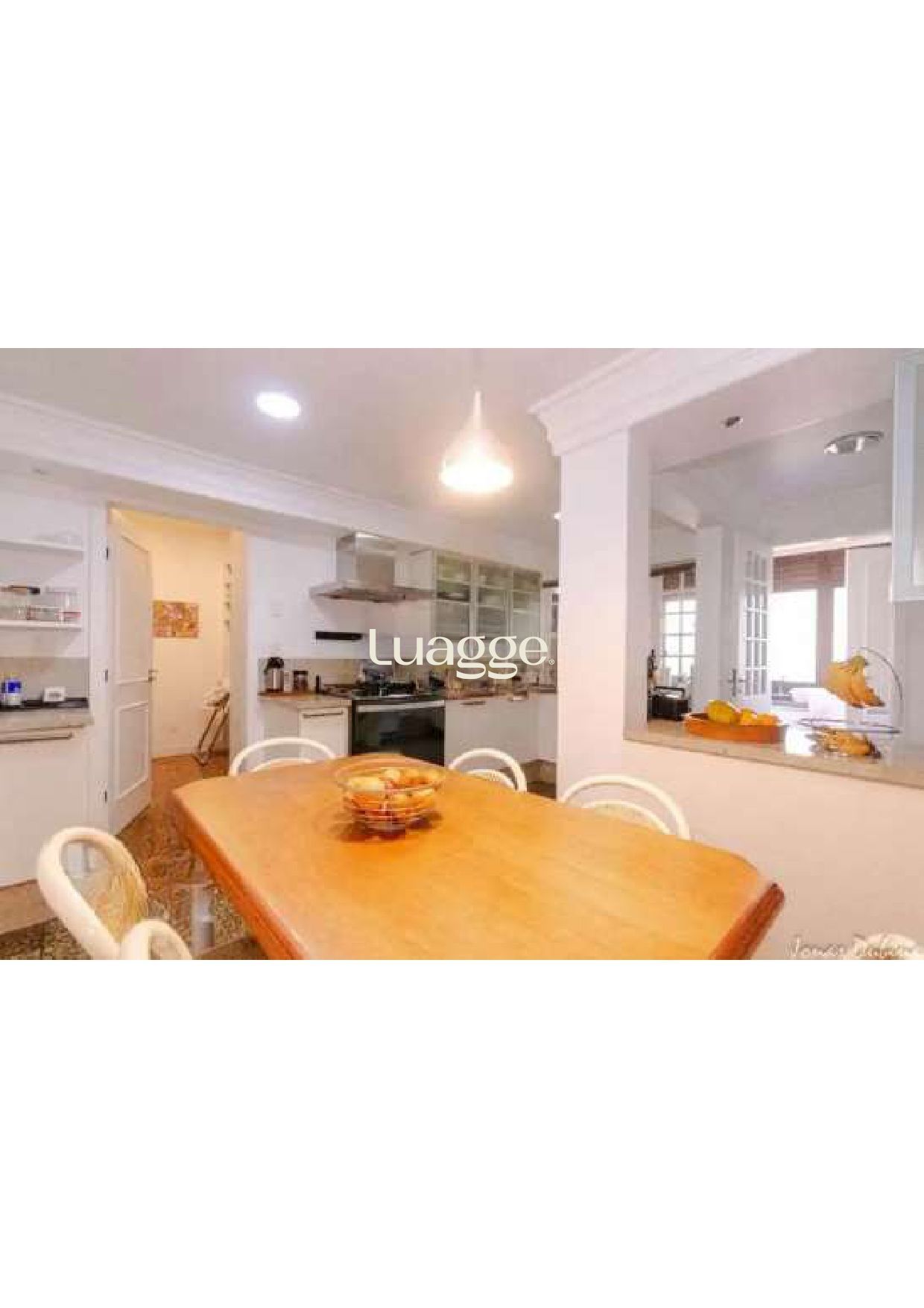 Hall de entrada, lavabo, living 3 ambientes com lareira com ótima luminosidade e muito sol, piso tabuão, cozinha/copa montada e dependência de emprega completa.