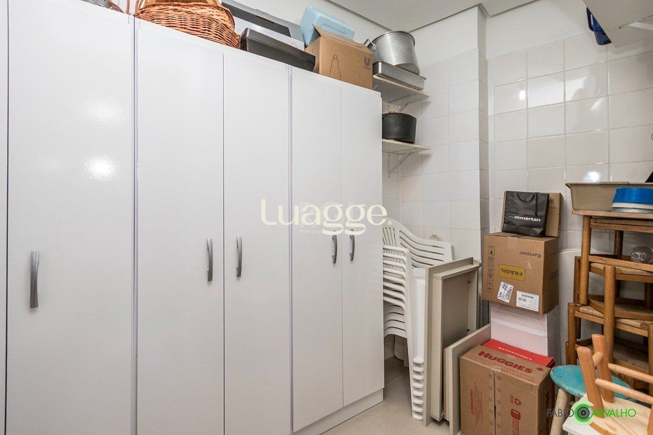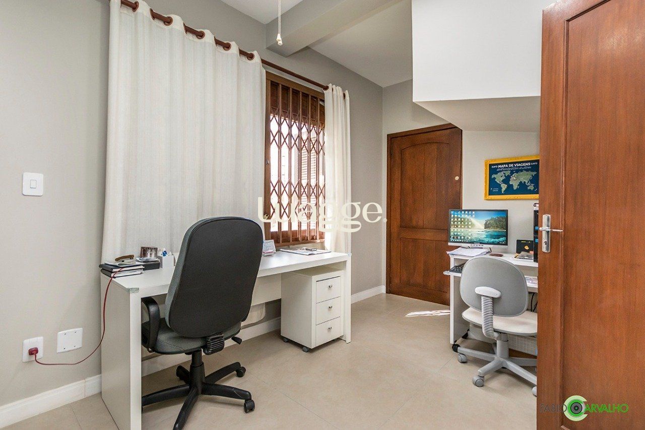 Excelente sobrado com 335 m² de área privativa, quatro quartos, escritório, cozinha, duas salas, área de serviço, lavabo, lavanderia, três banheiros e três vagas de estacionamento, sendo duas cobertas na garagem e uma descoberta.