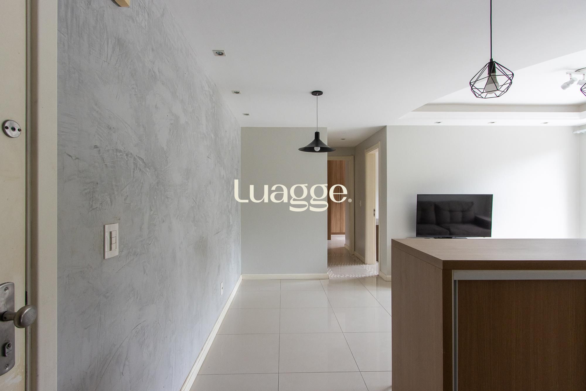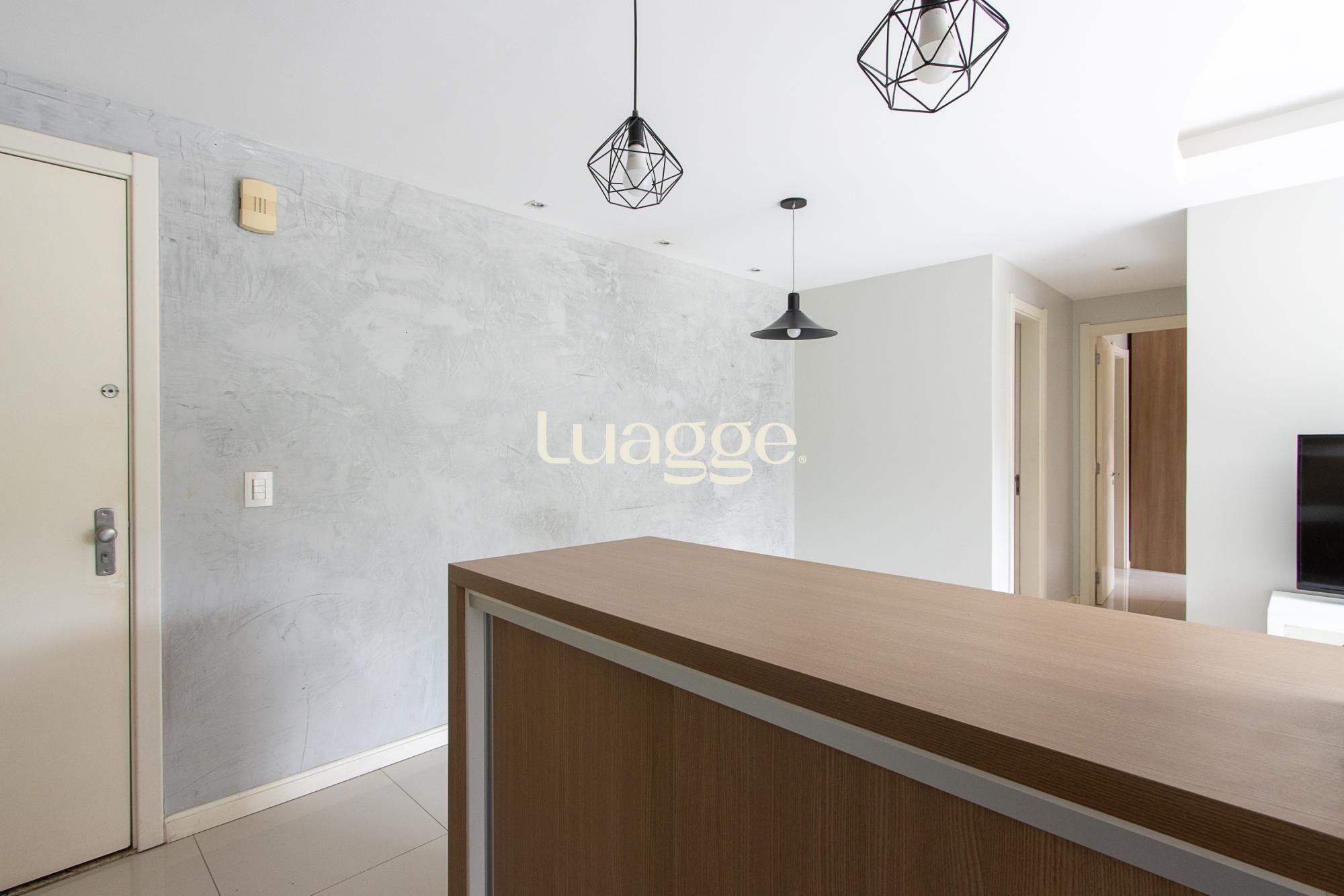Apartamento desocupado, semi-mobiliado, com dois dormitórios, sendo uma suíte. Conta com living para dois ambientes integrado à sacada fechada, cozinha americana com armários planejados e área de serviço. O imóvel possui piso em porcelanato, aquecedor de água quente já instalado e splits nos dois dormitórios, além de excelente orientação solar. Dispõe de uma vaga de garagem escriturada. O condomínio oferece infraestrutura completa, segurança 24 horas e está localizado próximo ao Barra Shopping Sul. Aceita pet. Observação: o valor anunciado é válido para pagamento até a data de vencimento estipulada em contrato.