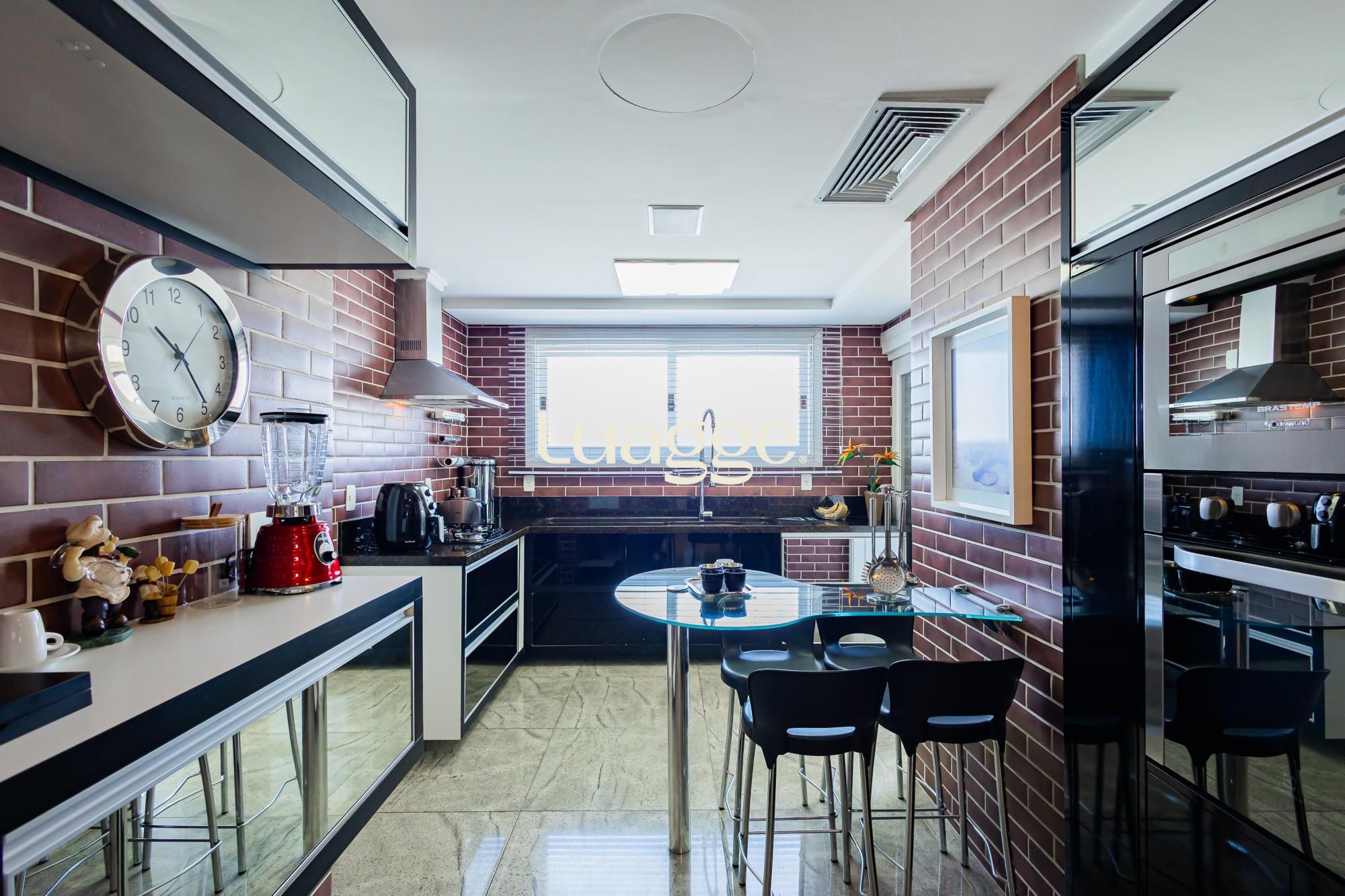 A cozinha é muito bem decorada, com 2 acessos tanto pelo corredor quanto pela sala de jantar. Iluminada, com ótima incidência solar e janelas. A lavanderia é separada, com bastante espaço para os itens e roupas de toda família.