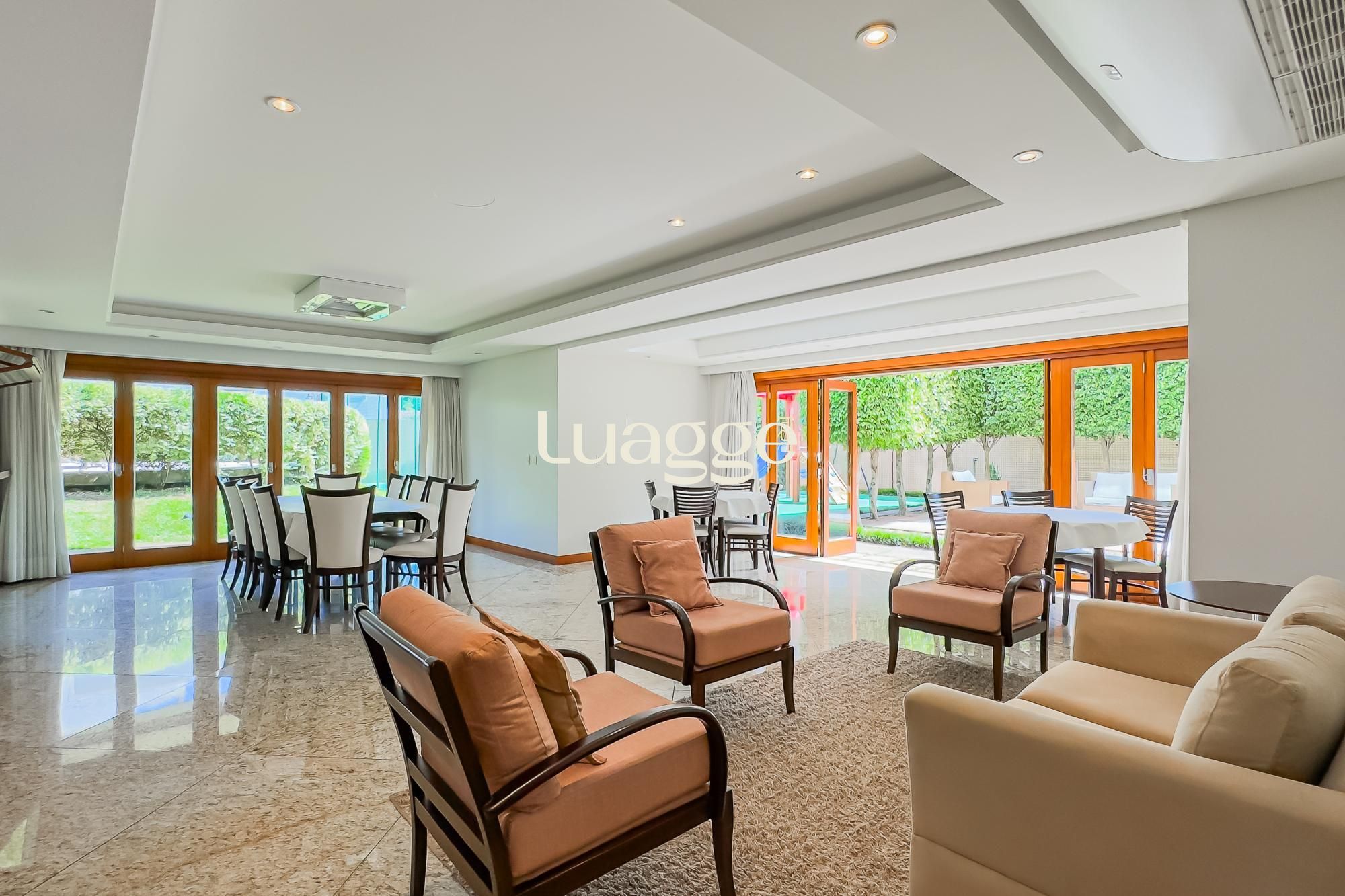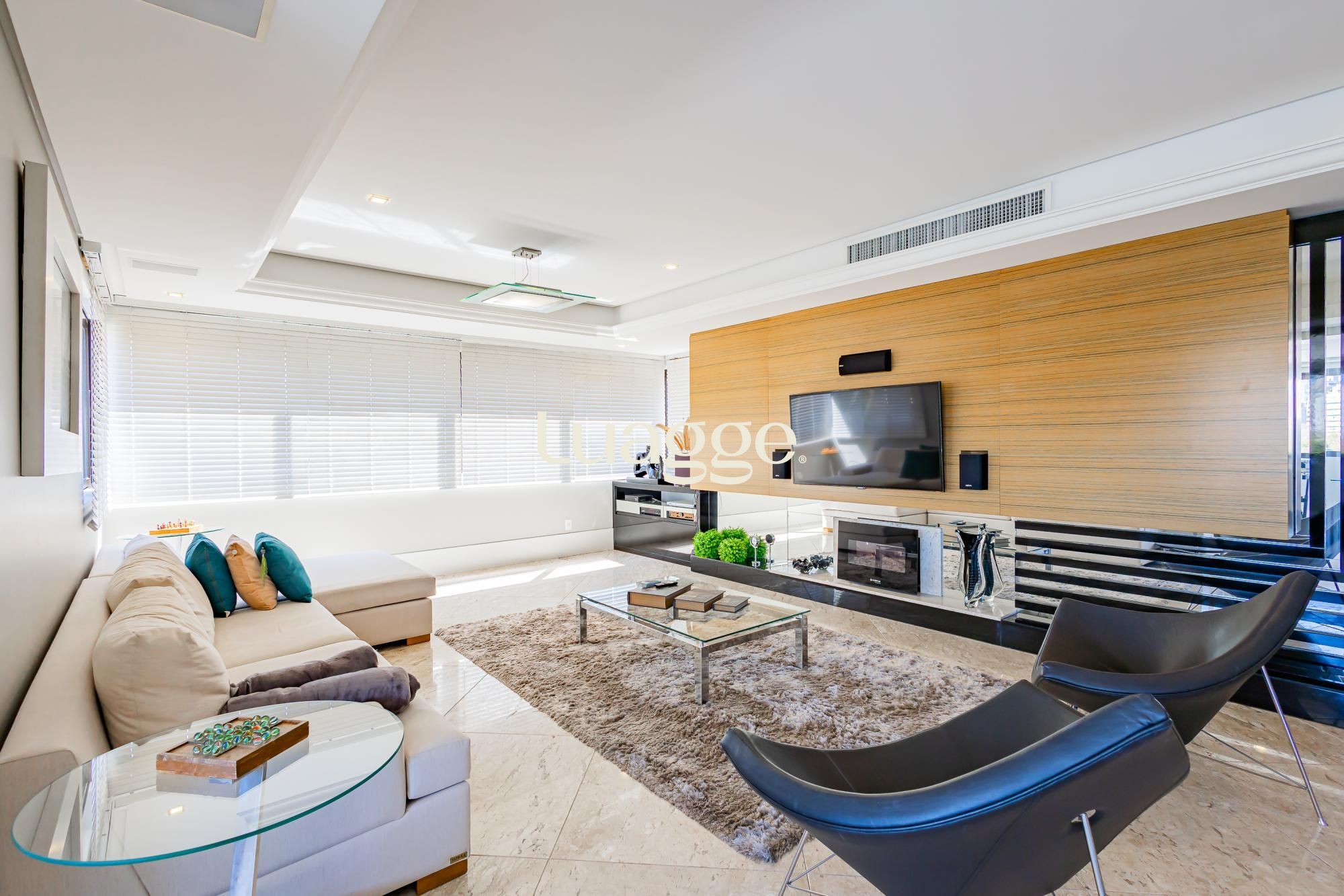 Amplo Living com piso em mármore, de muito boa qualidade, com lareira, sala de jantar com churrasqueira bem generosa, bem iluminado, sol NORTE, andar alto e vista definida. Possui Lavabo.