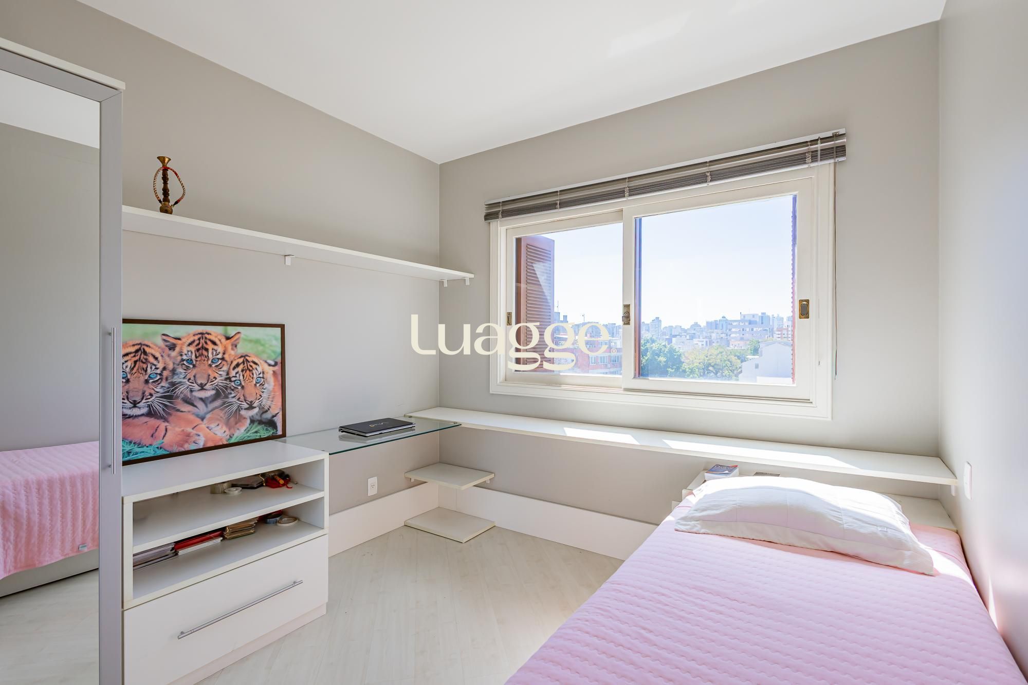 Possui 3 suítes, sendo a master com banheira. Todas suítes são com sol da manhã. Peças muito generosas. Possui dependência de empregada completa.