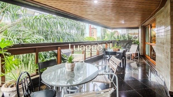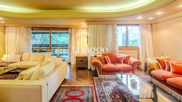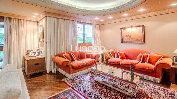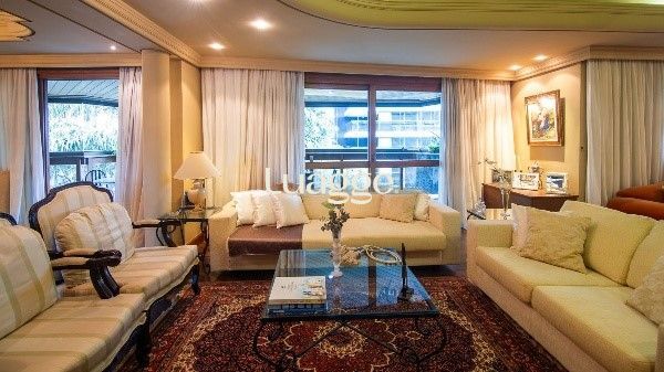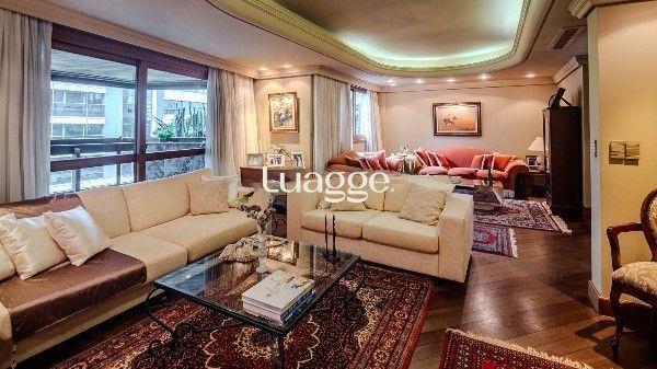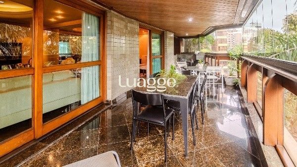 Amplo e elegante, este apartamento semi-mobiliado oferece 287 m² privativos com 4 suítes, sendo uma máster com closet e hidromassagem. O living é generoso, com lareira, sacada aberta de frente, lavabo, churrasqueira e sala de jantar. Conta ainda com hall de entrada, despensa, 2 dependências completas e vista panorâmica.