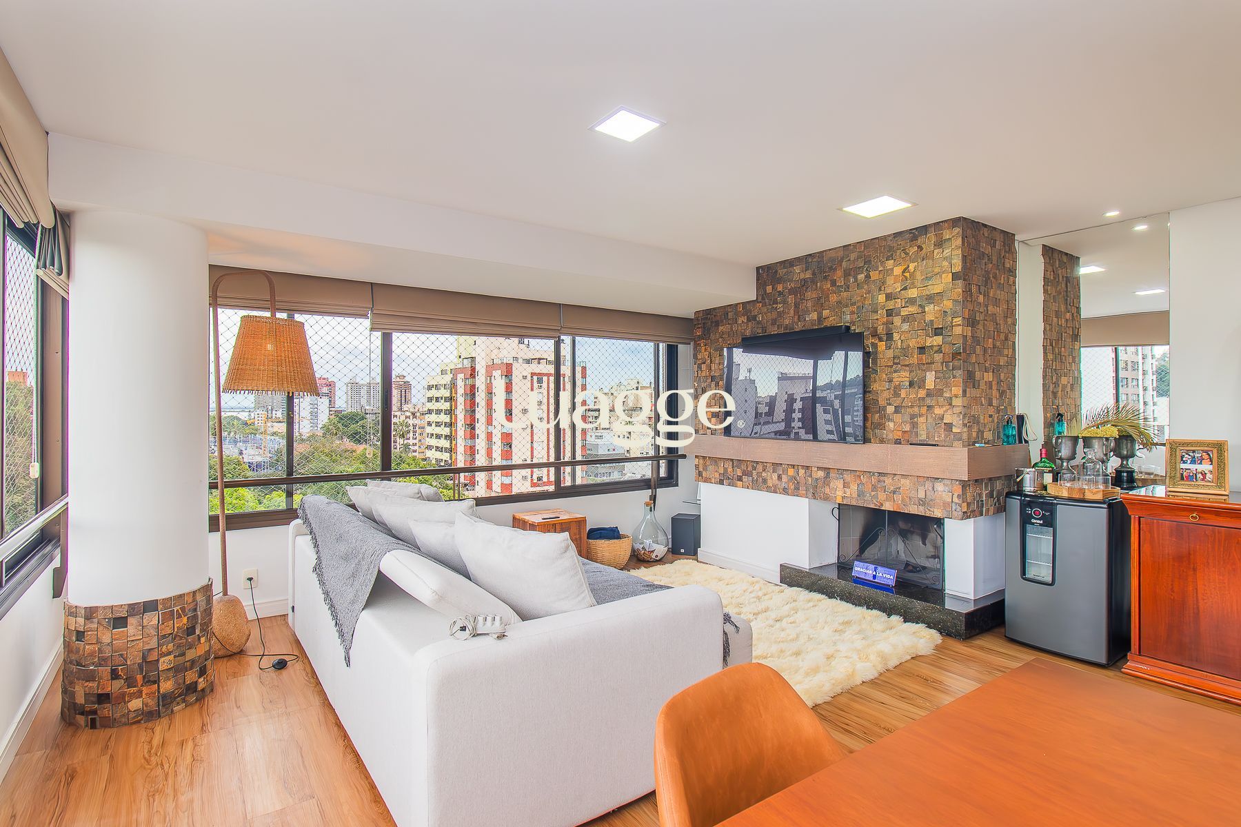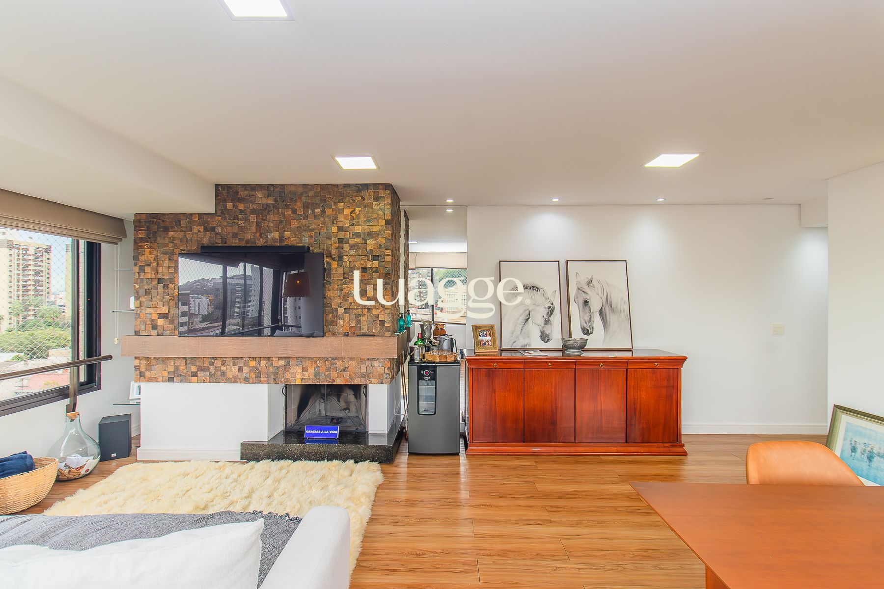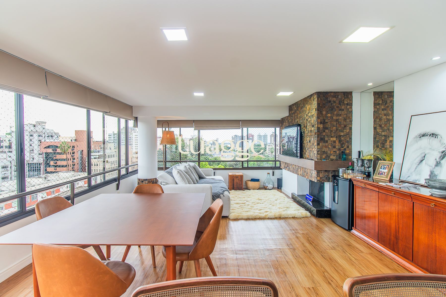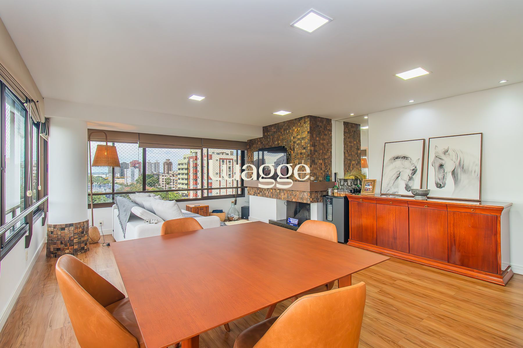 Living jantar e estar com lareira