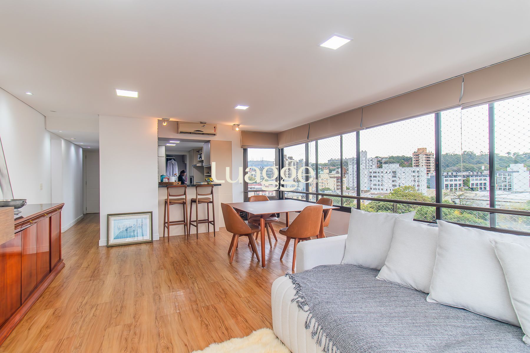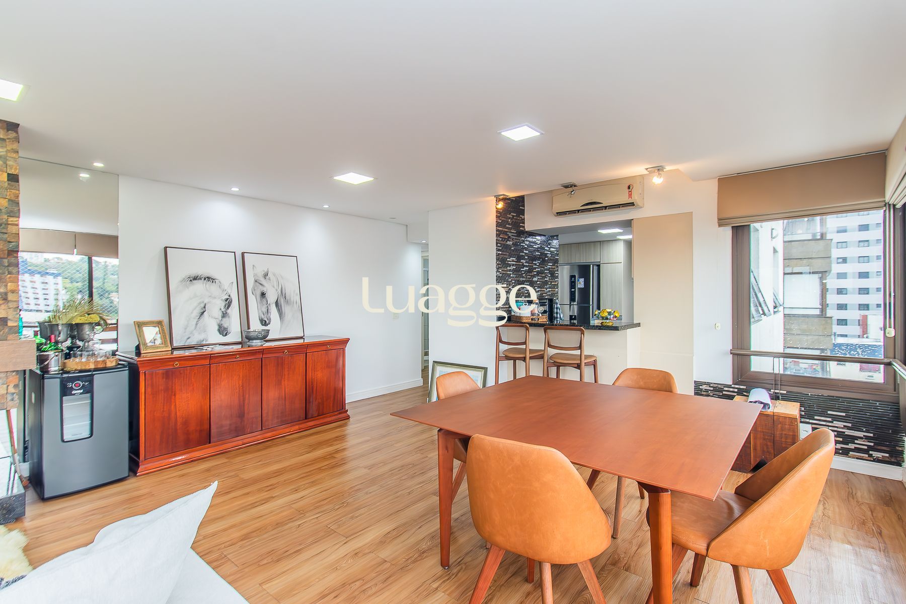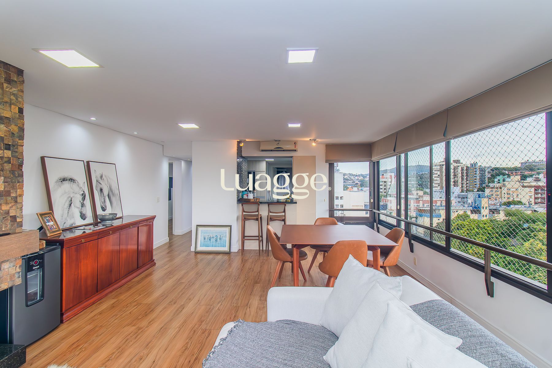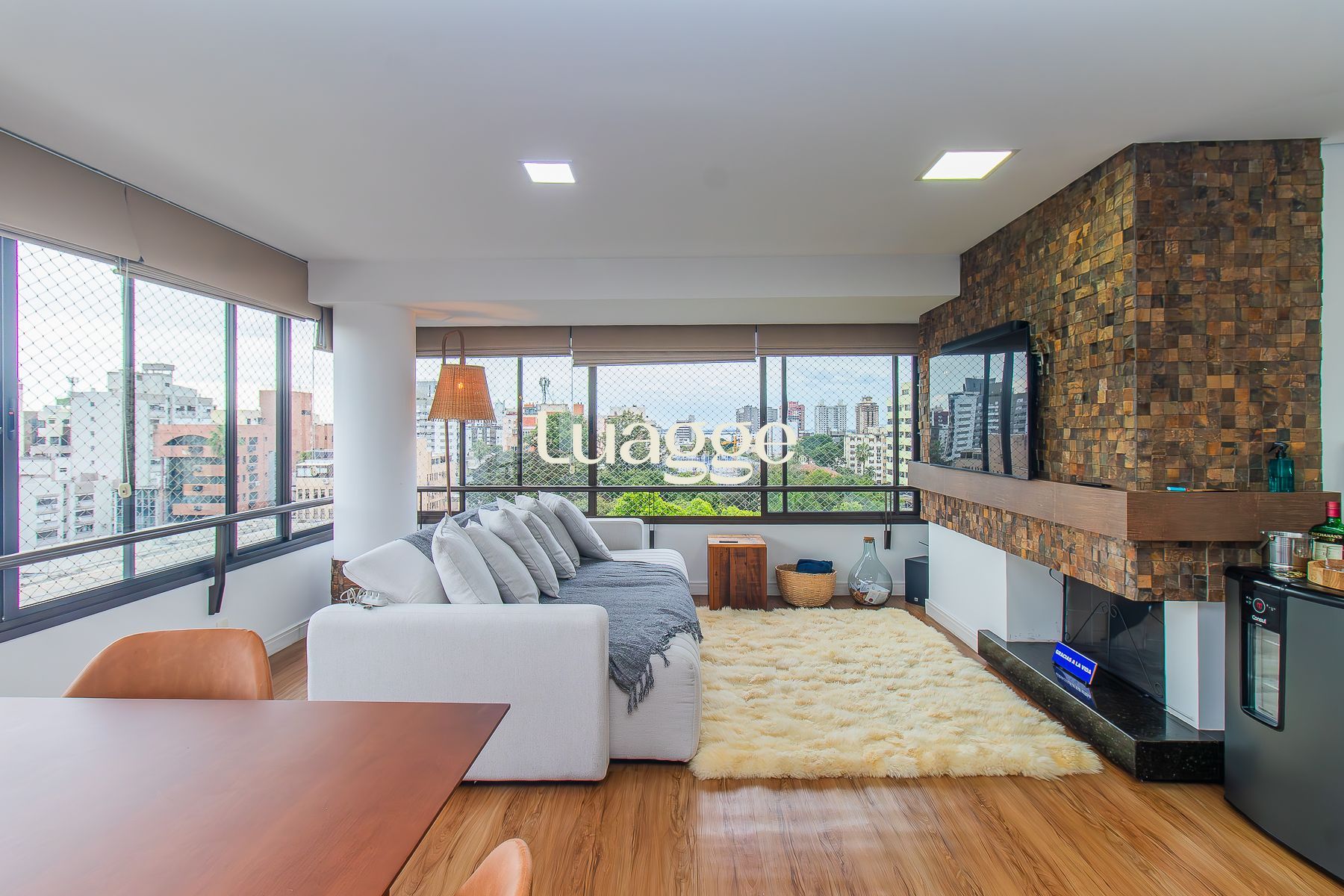Living jantar e estar com lareira