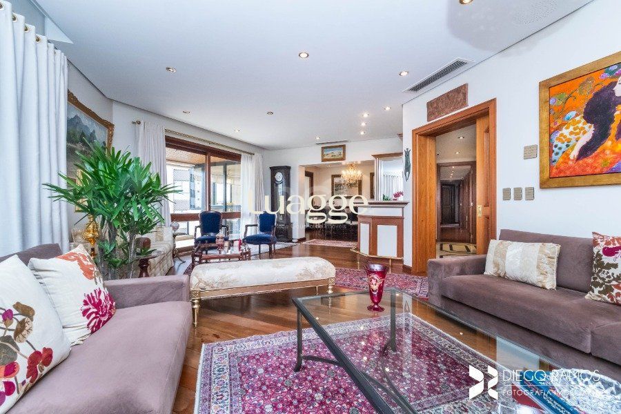 Apartamento nos altos da Pedro Ivo, são 305.46m² de muito bom gosto, parcialmente mobiliado, com 3 suítes, suíte máster, lareira, lavabo, gabinete, sacada com churrasqueira, sala de jantar, dependência completa de de empregada, 4 garagens escrituradas. Prédio imponente com Infraestrutura com piscina, salão de festas, excelente material de construção. Somente 01 por andar, living para 03 ambientes em tabuão, espaço gourmet com churrasqueira e sacada aberta, copa-cozinha. Ficam móveis sob medida e eletrodomésticos. Aceita dação de imóvel com 160m². Edifício em localização nobre de Porto Alegre, a minutos, caminhando no plano, de farmácias, mercados, cafés, restaurantes, hospital, consultórios, escola! Agende sua visita!