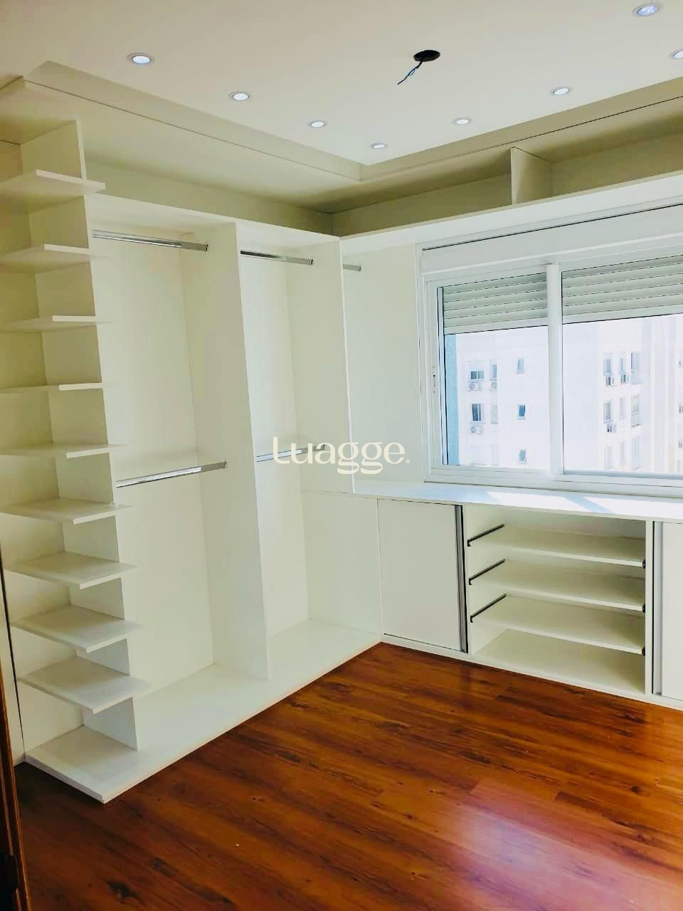 A suíte é composta por por um roupeiro sob medida com closet completo com cama para casal.