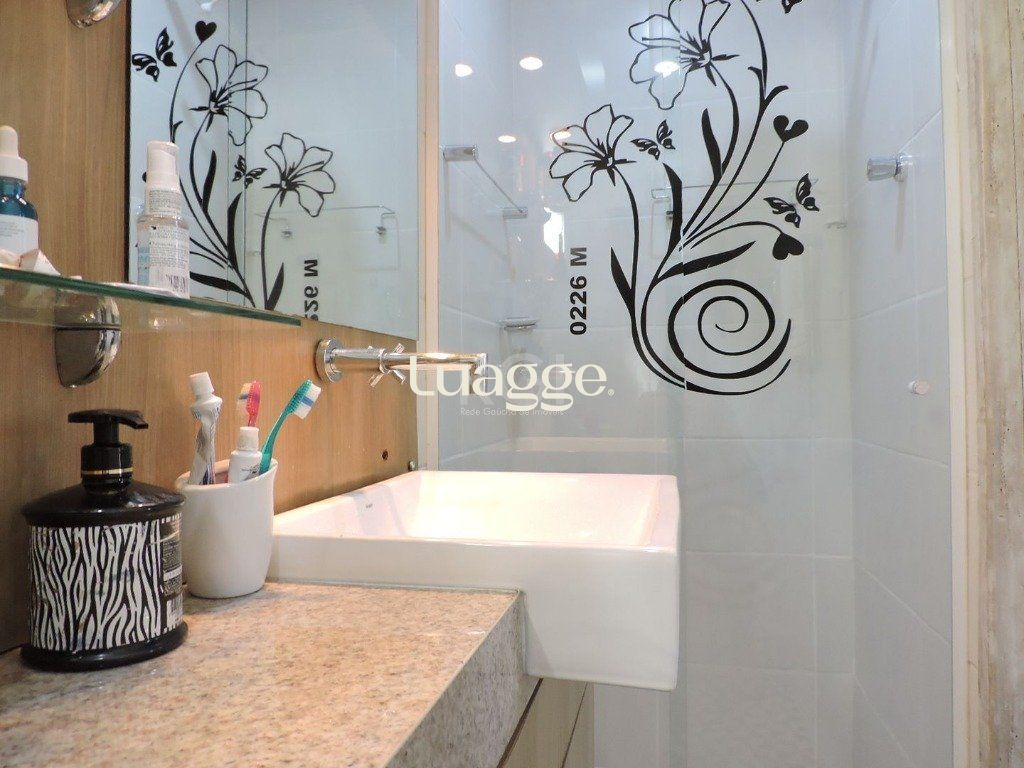 Ótimo apartamento com 03 dormitórios (02 com sacada), sendo 01 suíte, banheiro social com ventilação natural e box de vidro, amplo living para 02 ambientes, cozinha espaçosa, área social com lareira e churrasqueira, terraço, área de serviço e 01 vaga de garagem com depósito. Possui janelas anti-ruído e cômodos amplos com ótima iluminação e ventilação. Condomínio pequeno com porteiro eletrônico.