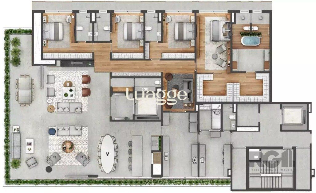 São 387m2 de área privativa. 04 suítes (sendo a master com imenso banheiro ele/ela) com 04 vagas individuais de garagem.