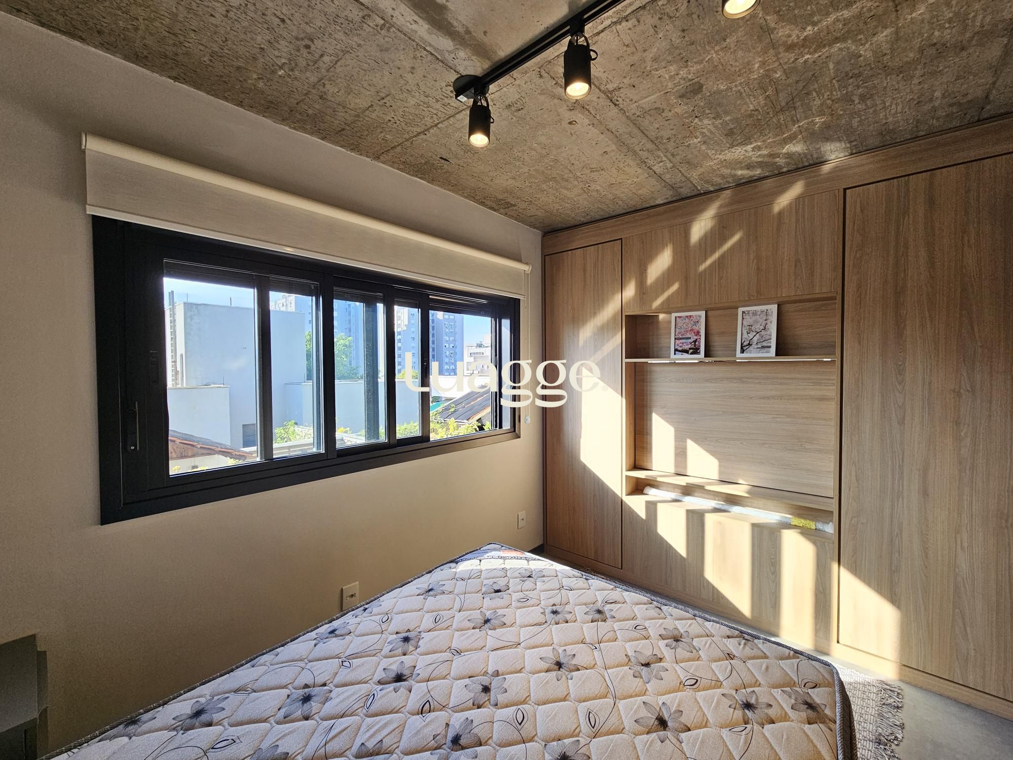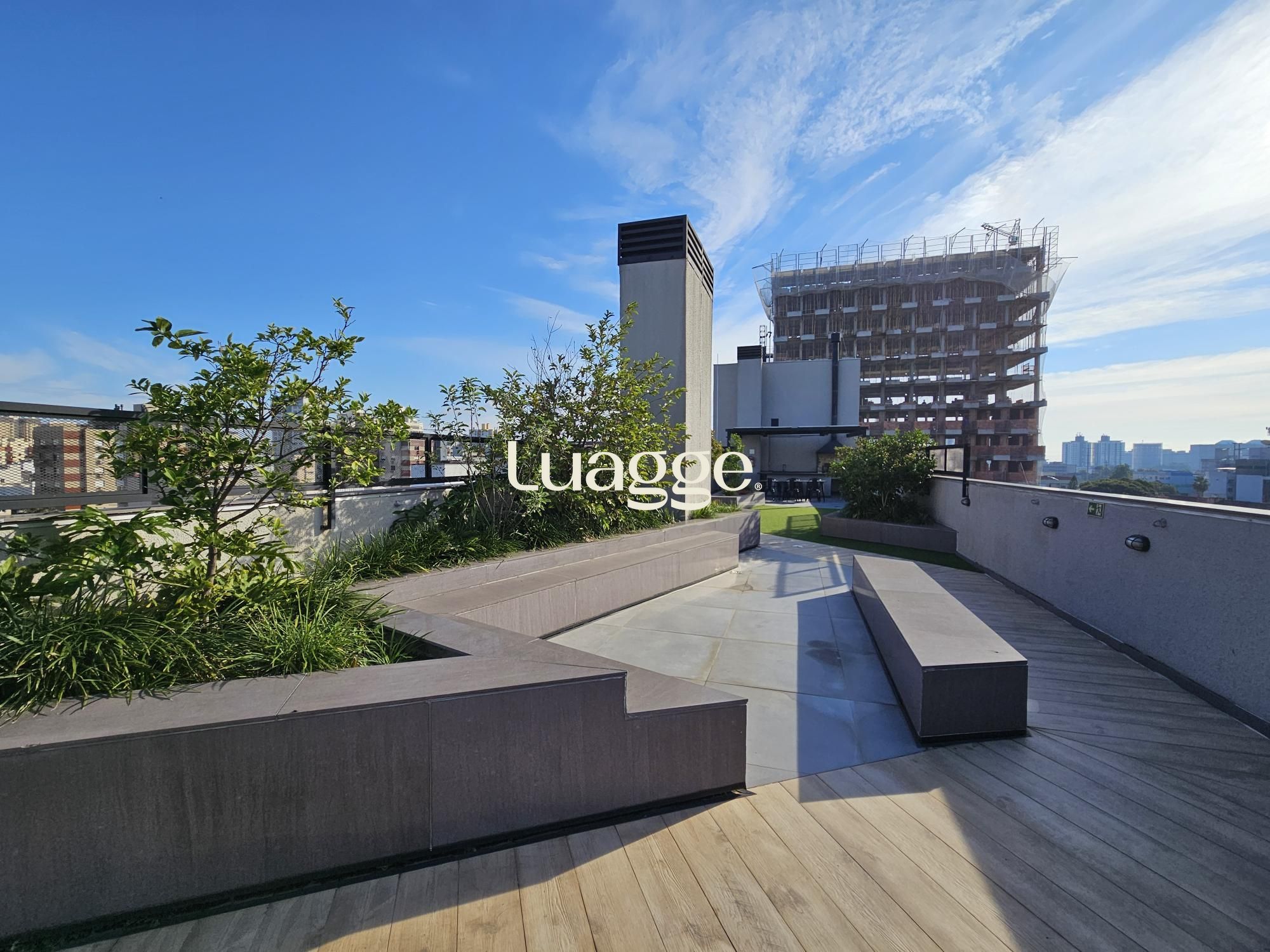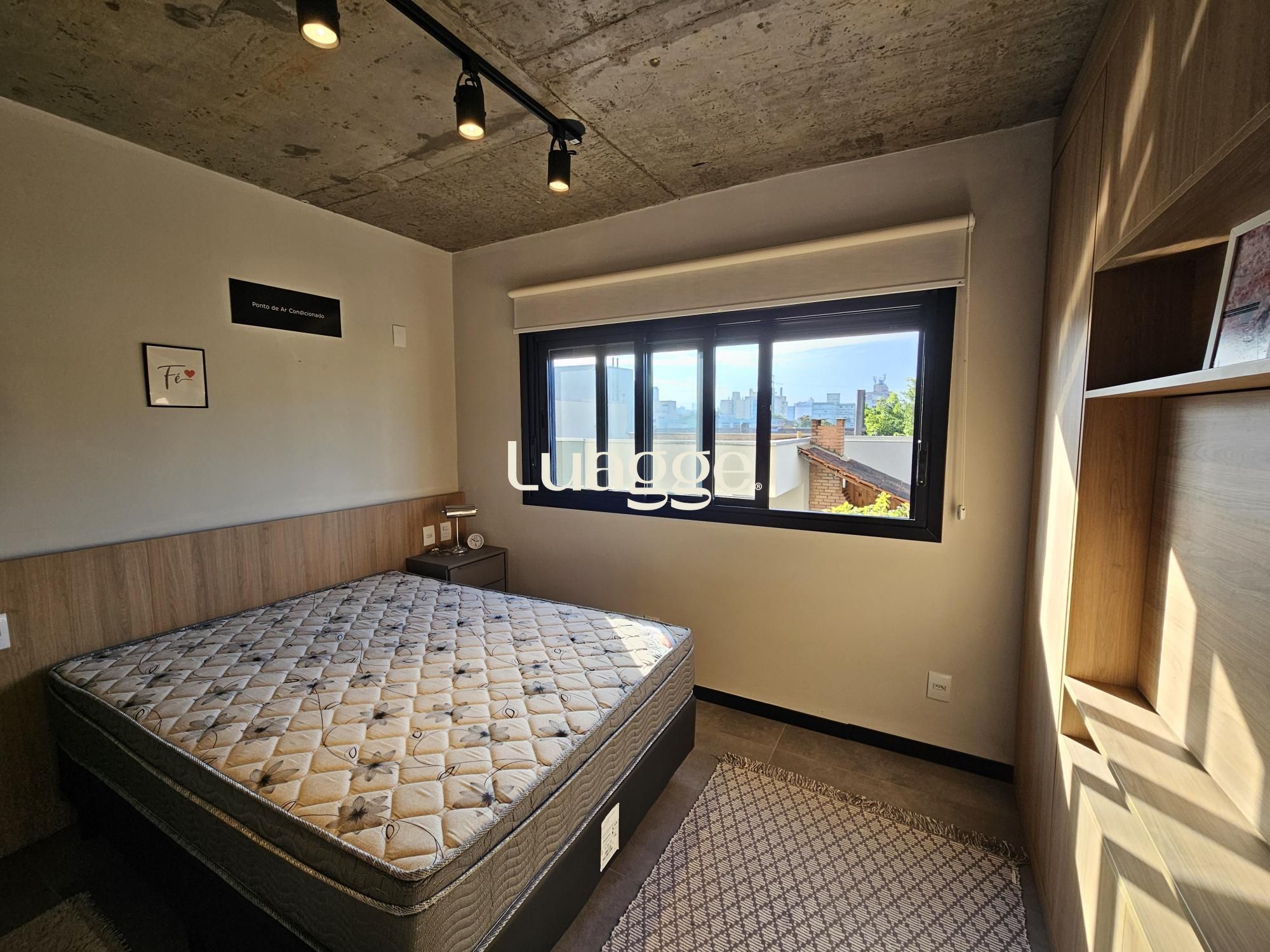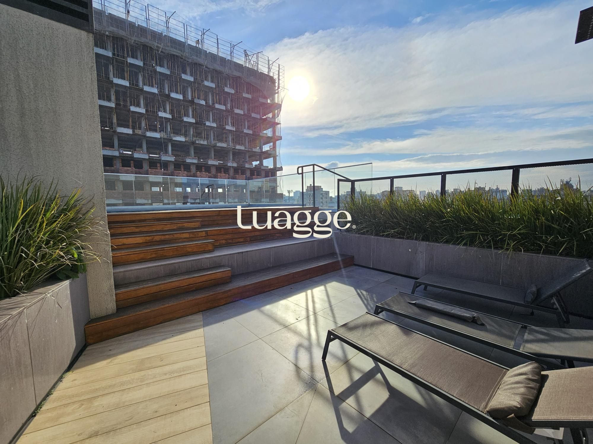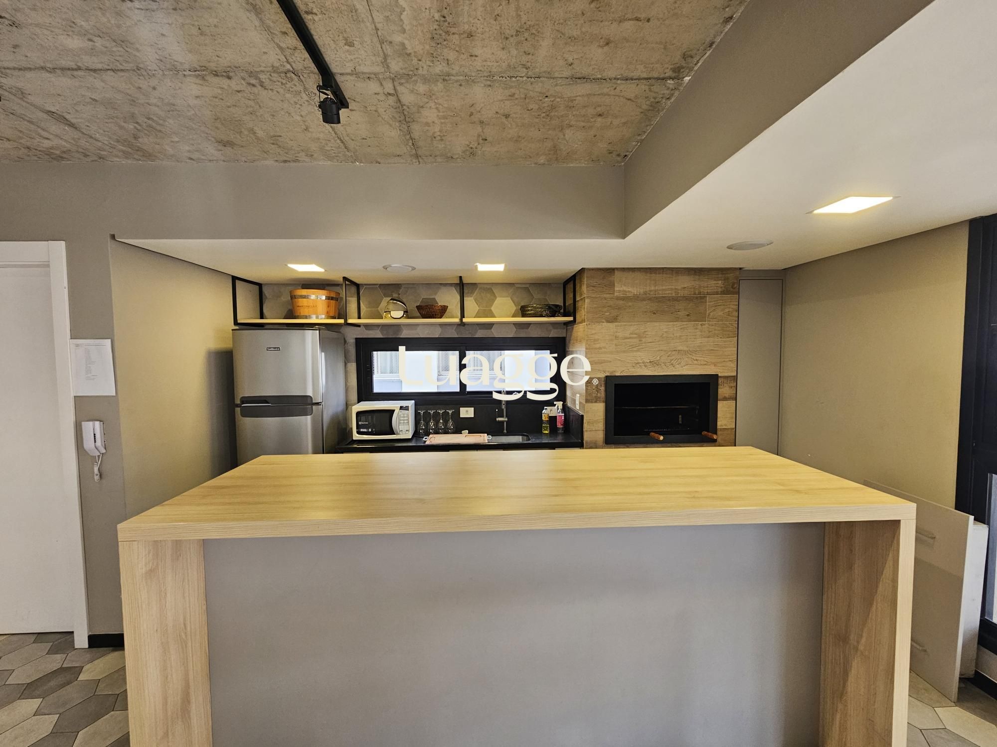 Lindo apartamento tipo studio com 43m2 privativos, 100% mobiliado (era o decorado da construtora). Ampla janela no living, vista definida, sol norte e churrasqueira. Vaga dupla de garagem. Edifício com painéis solares, salão de festas, academia, terraço com parrilla e piscina.