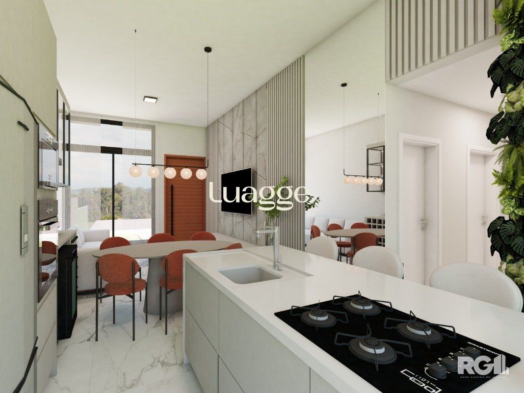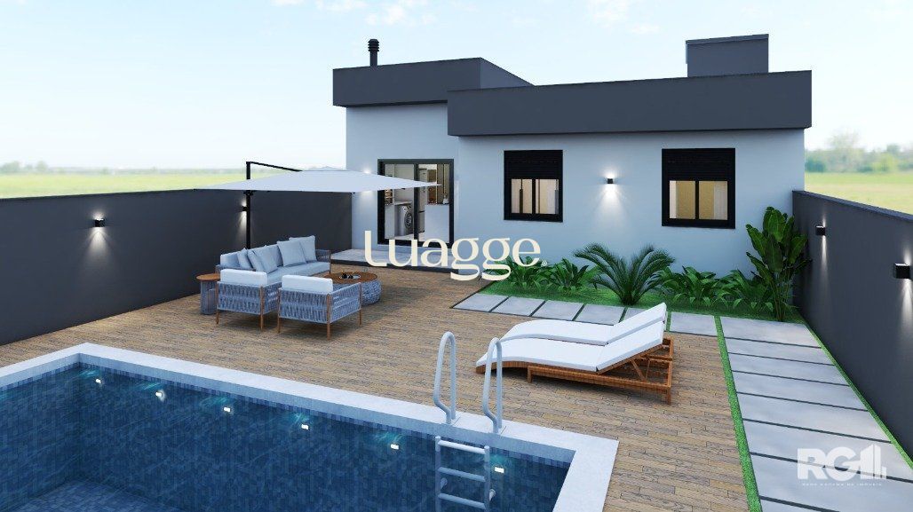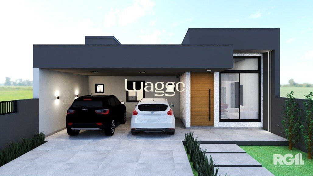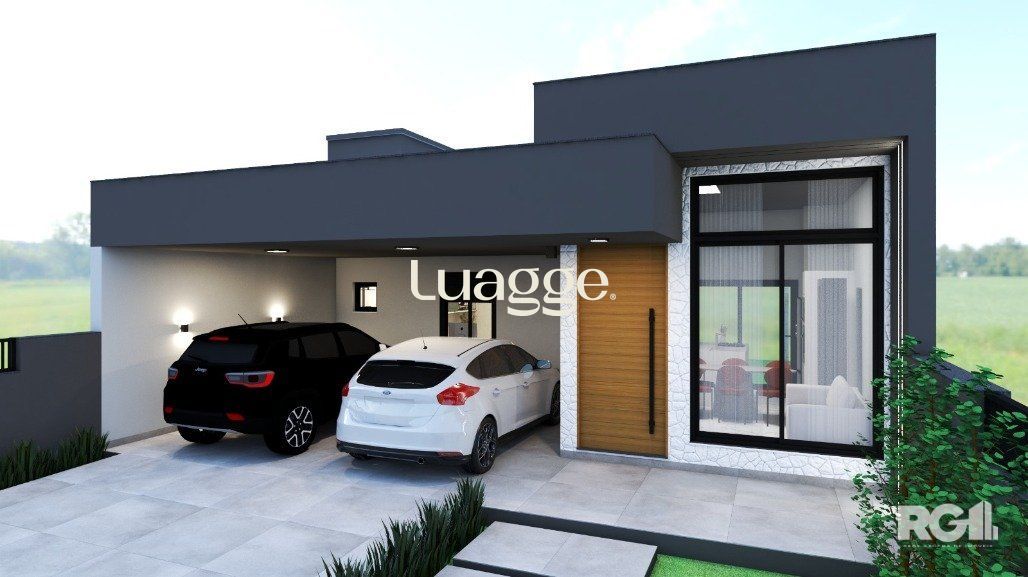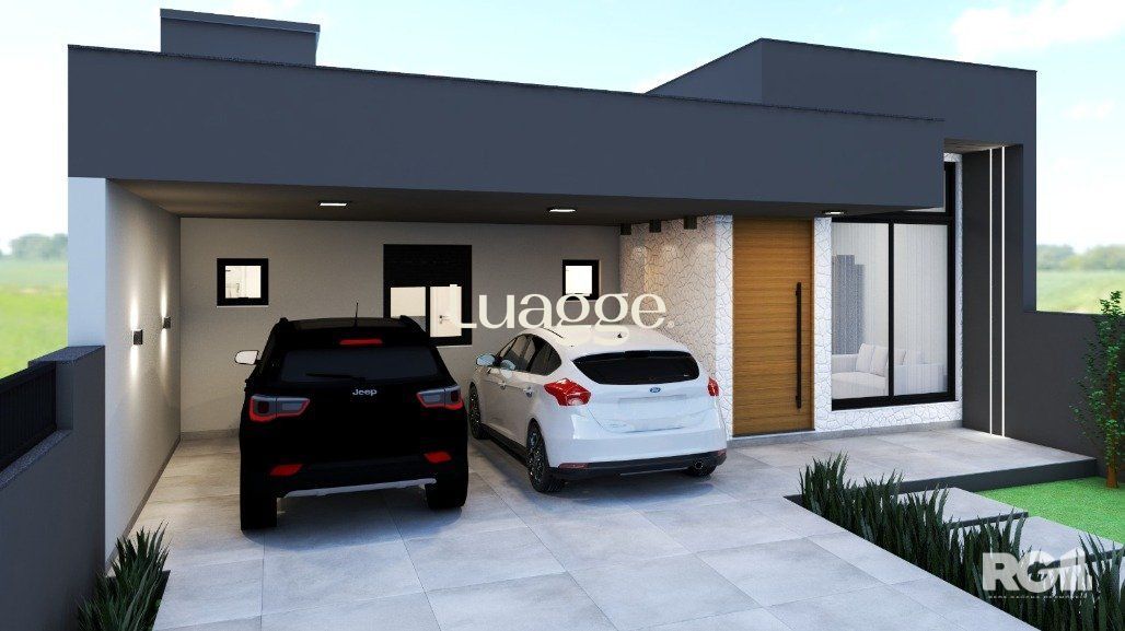 Casa com 3 dormitórios, com suíte. Living com pé direito estendido. Churrasqueira na cozinha. Área social integrada com cozinha. Ampla iluminação e ventilação com fachada envidraçada e porta de correr nos fundos. Garagem Coberta para 2 veículos lado a lado. Esquadrias externas em alumínio preto. Dormitórios com persiana. Pátio frontal com estacionamento para 2 carros. Amplo pátio nos fundos com aproximadamente 65m². Possibilidade de quiosque e piscina. Fachada moderna com detalhes em pedra natural. Área social entregue em porcelanato cor concreto e área íntima com piso laminado (cor freijó). Banheiros entregues em porcelanato. Portas internas na cor branca, com borracha de amortecimento