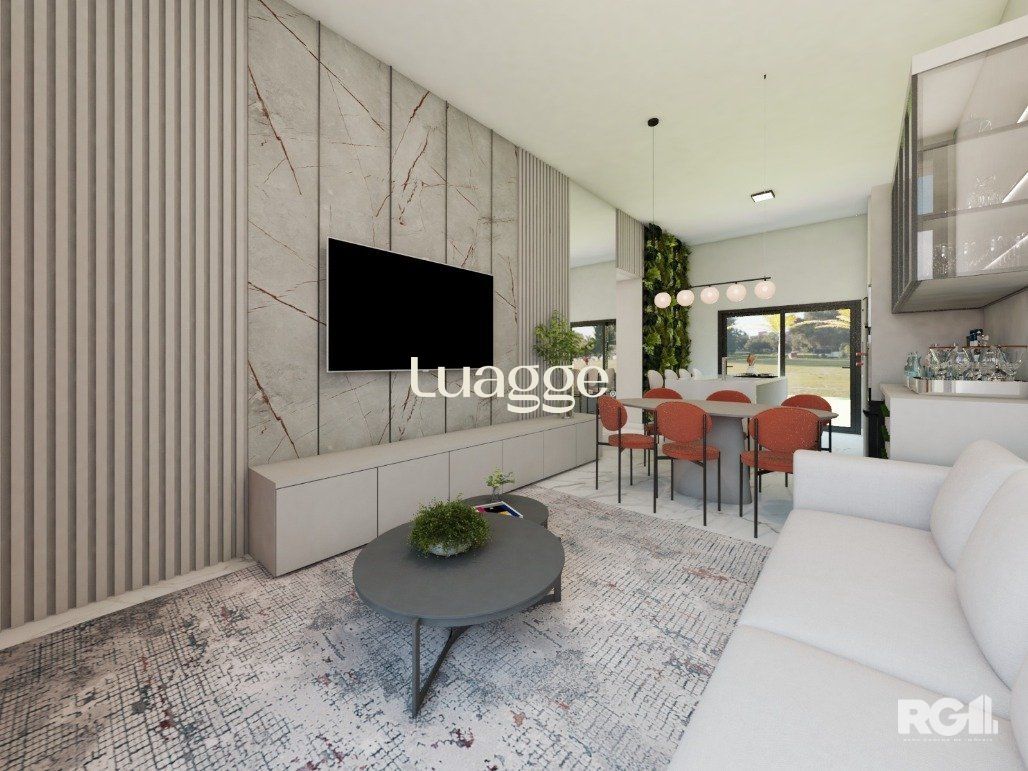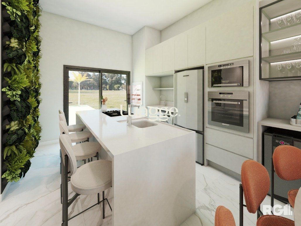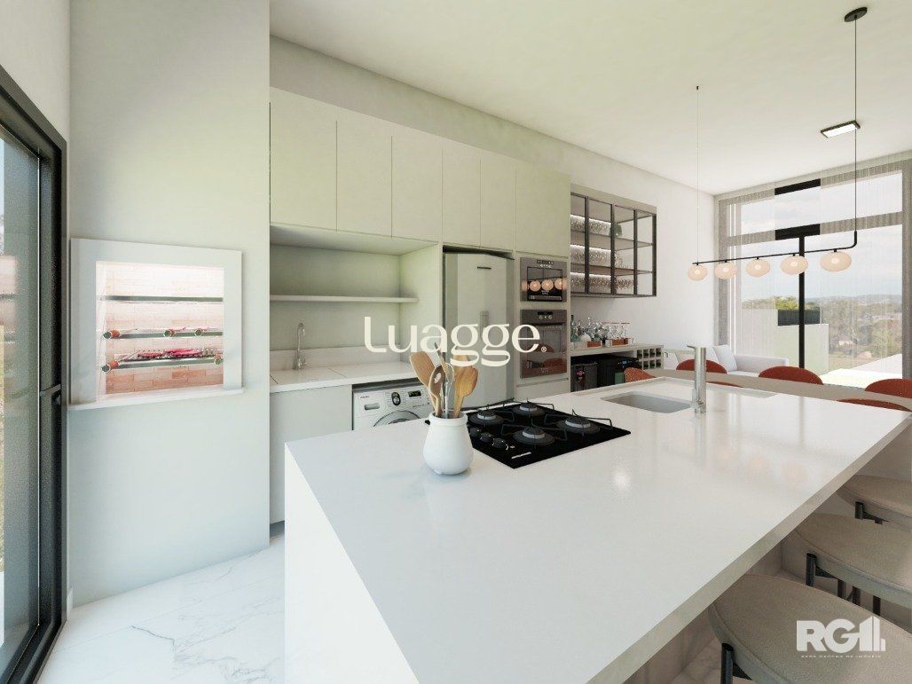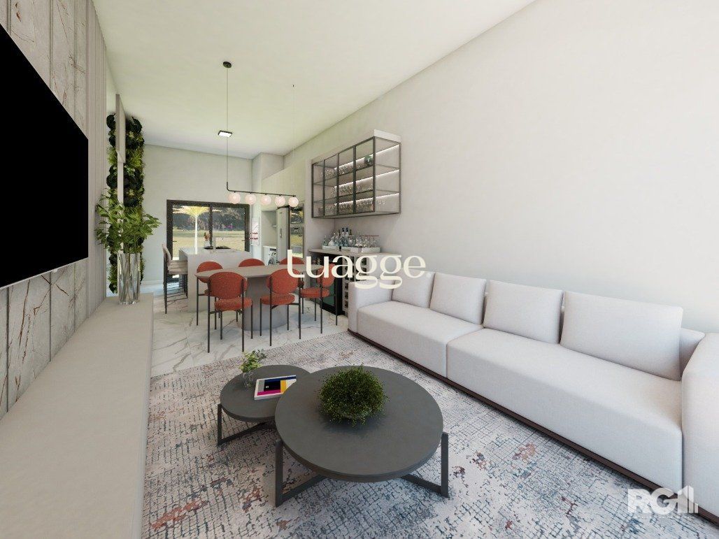 Casa com 3 dormitórios, com suíte. Living com pé direito estendido. Churrasqueira na cozinha. Área social integrada com cozinha. Ampla iluminação e ventilação com fachada envidraçada e porta de correr nos fundos. Garagem Coberta para 2 veículos lado a lado. Esquadrias externas em alumínio preto. Dormitórios com persiana. Pátio frontal com estacionamento para 2 carros. Amplo pátio nos fundos com aproximadamente 65m². Possibilidade de quiosque e piscina. Fachada moderna com detalhes em pedra natural. Área social entregue em porcelanato cor concreto e área íntima com piso laminado (cor freijó). Banheiros entregues em porcelanato. Portas internas na cor branca, com borracha de amortecimento