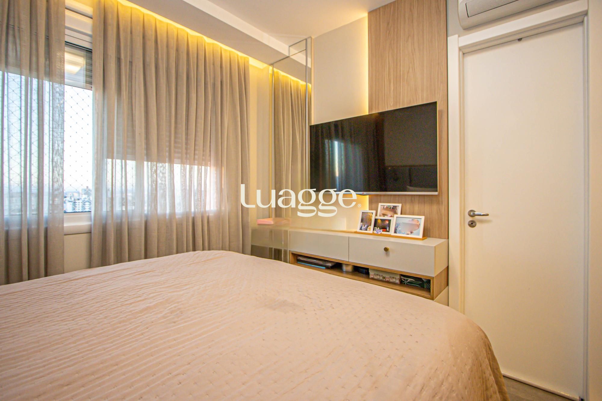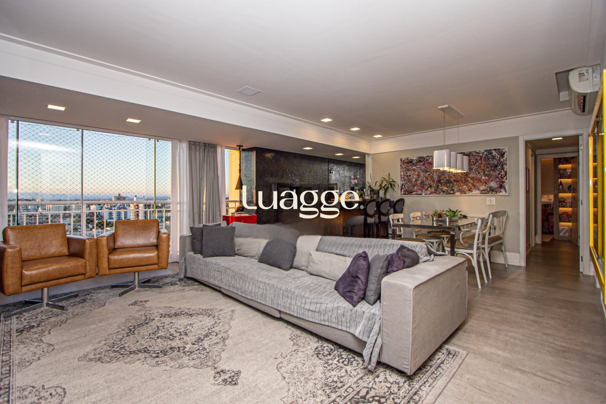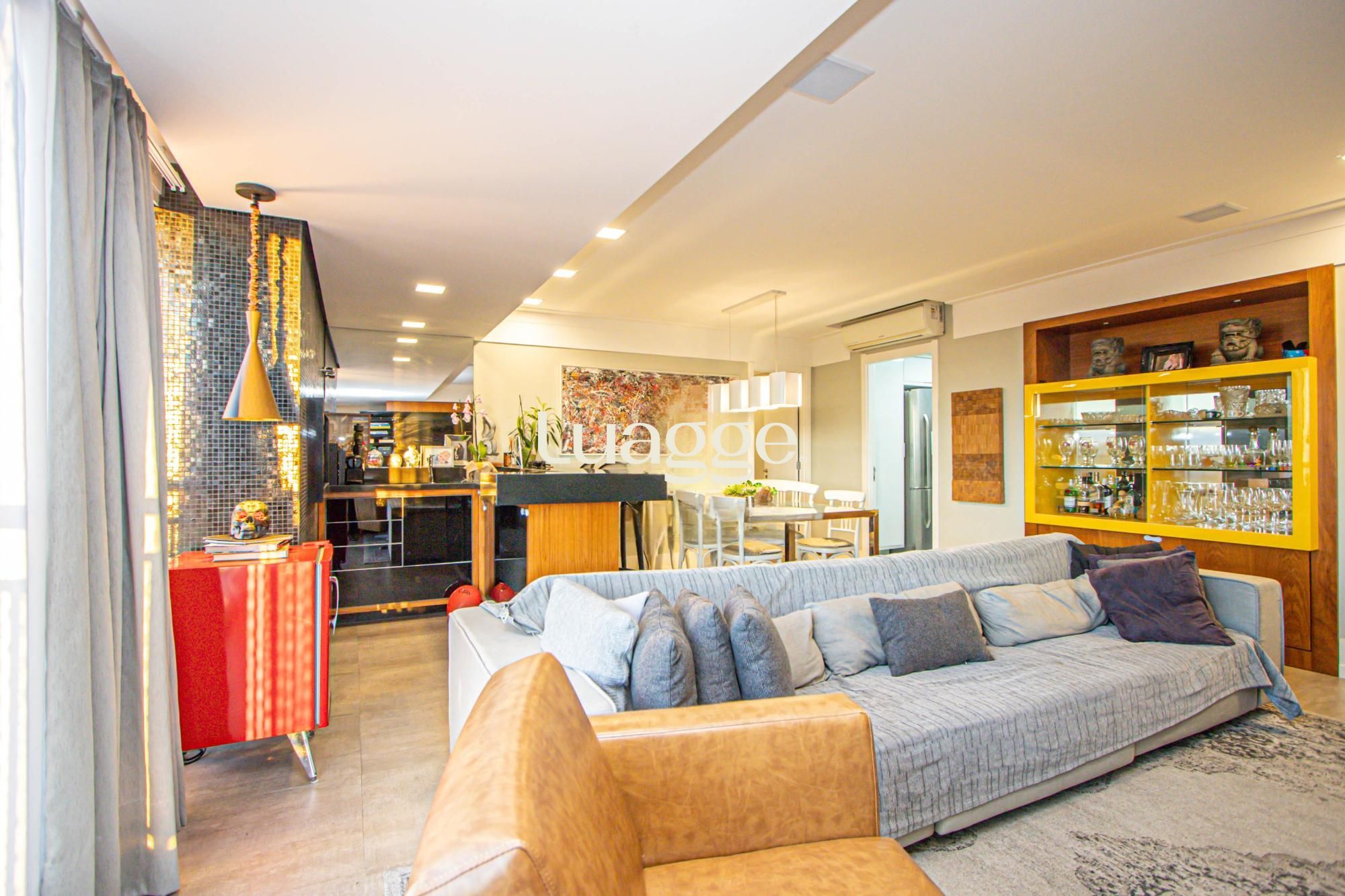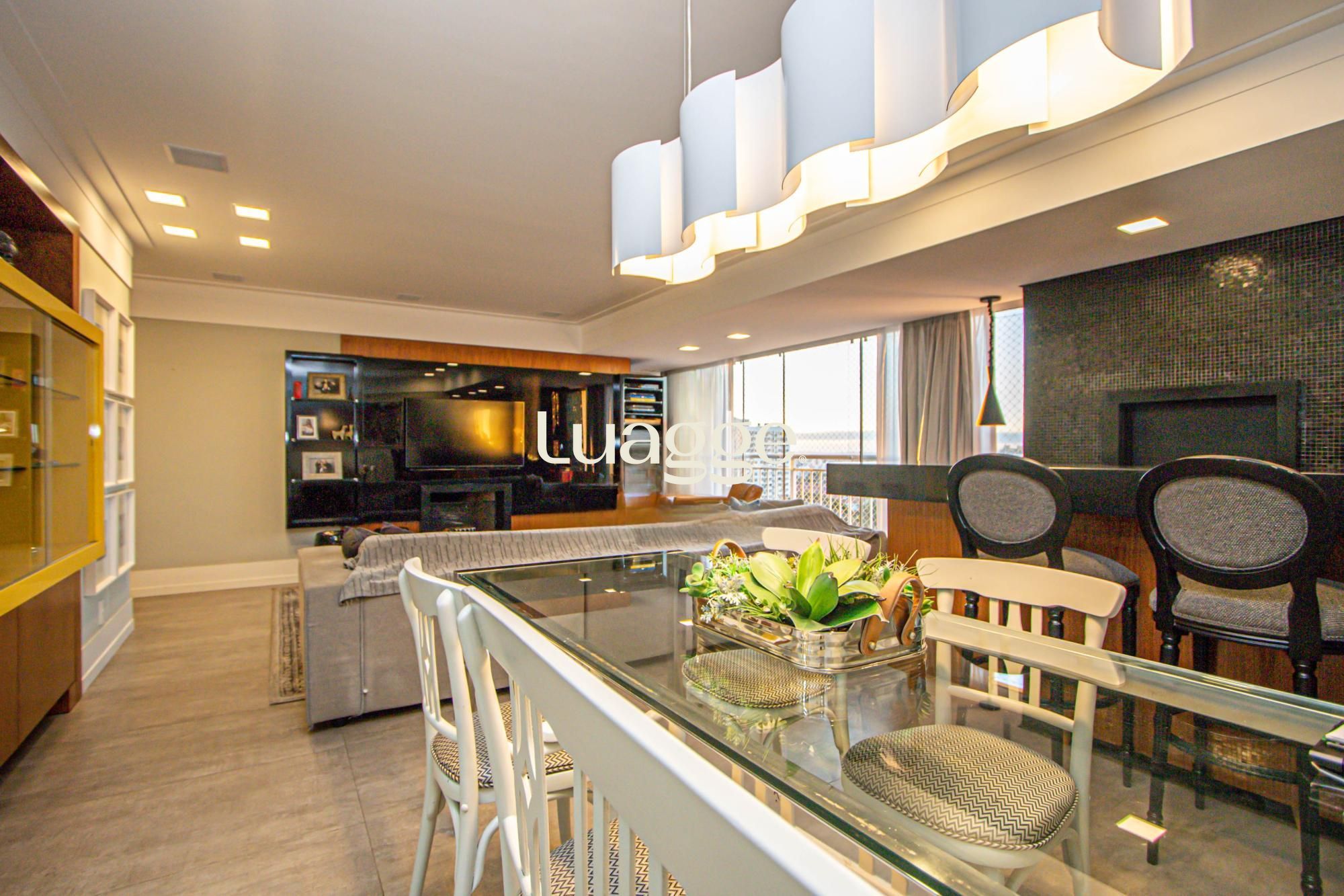 Apartamento totalmente mobiliado, living amplo com dois ambientes, churrasqueira e lareira, cozinha equipada com eletrodomésticos, lavabo, área intima com 03 suítes, todos ambientes climatizados com split. 02 vagas de garagem separadas e cobertas.