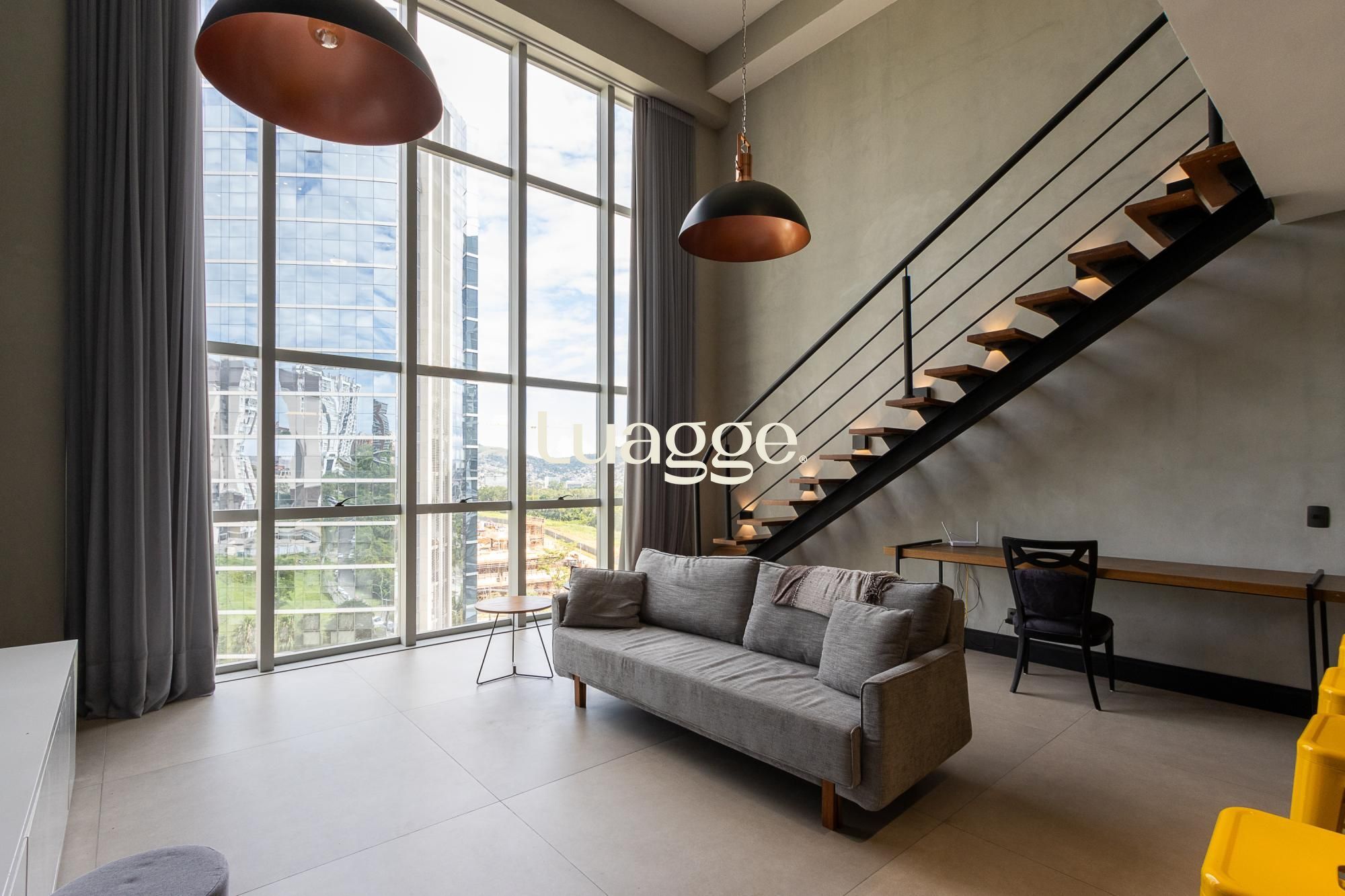 Amplo living com pé-direito elevado