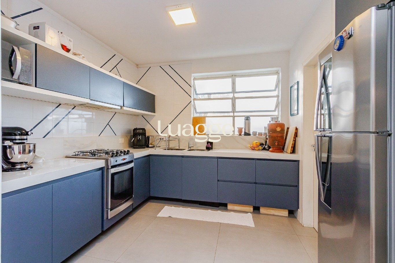 A cozinha é espaçosa e funcional, integrada a uma área de serviço independente, contando ainda com dependência de empregada, garantindo praticidade no dia a dia. O apartamento dispõe de 2 vagas de garagem cobertas, um diferencial importante na região.