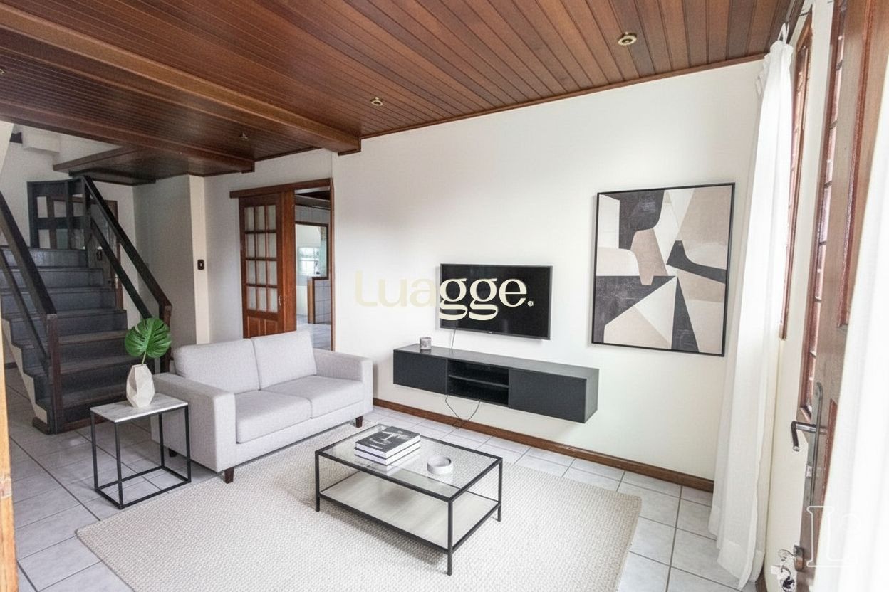 Casa residencial com aproximadamente 260m² de área privativa, distribuída em dois pavimentos. Parte inferior com piso cerâmico e superior com tabuão. Possui 04 dormitórios com ar-condicionado, sendo 01 suíte, living para 02 ambientes com lavabo, cozinha com pia, armários, ventilador de teto e churrasqueira.