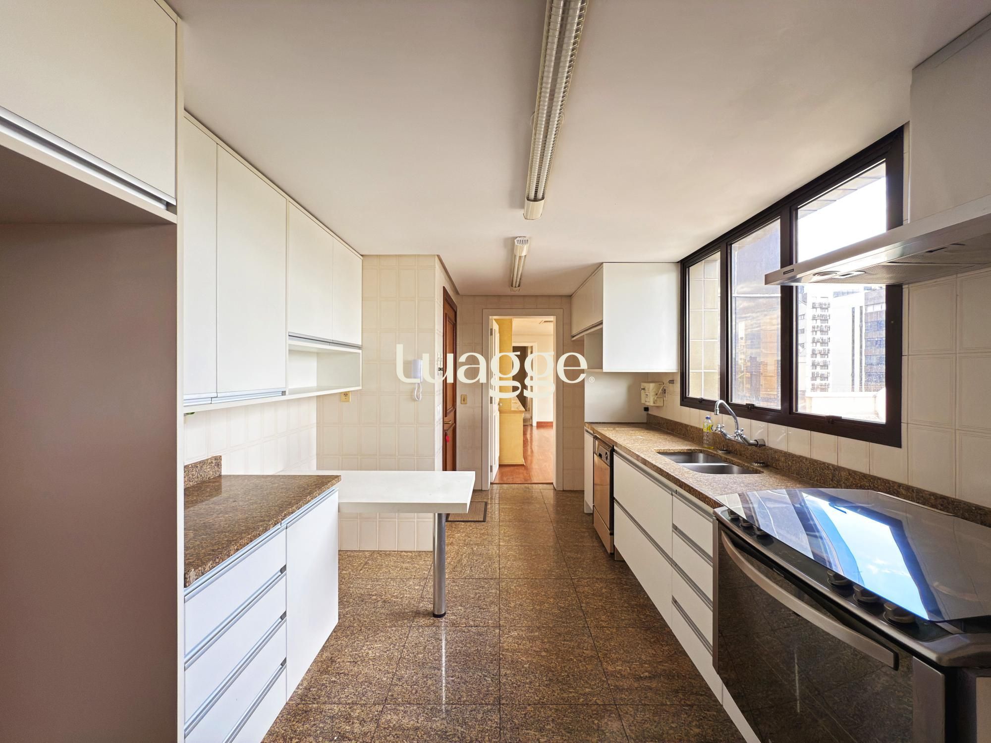 Conveniência: Semimobiliado com móveis sob medida de alto padrão na cozinha, banheiros e salas. Conta ainda com dependência completa, despensa e copa.