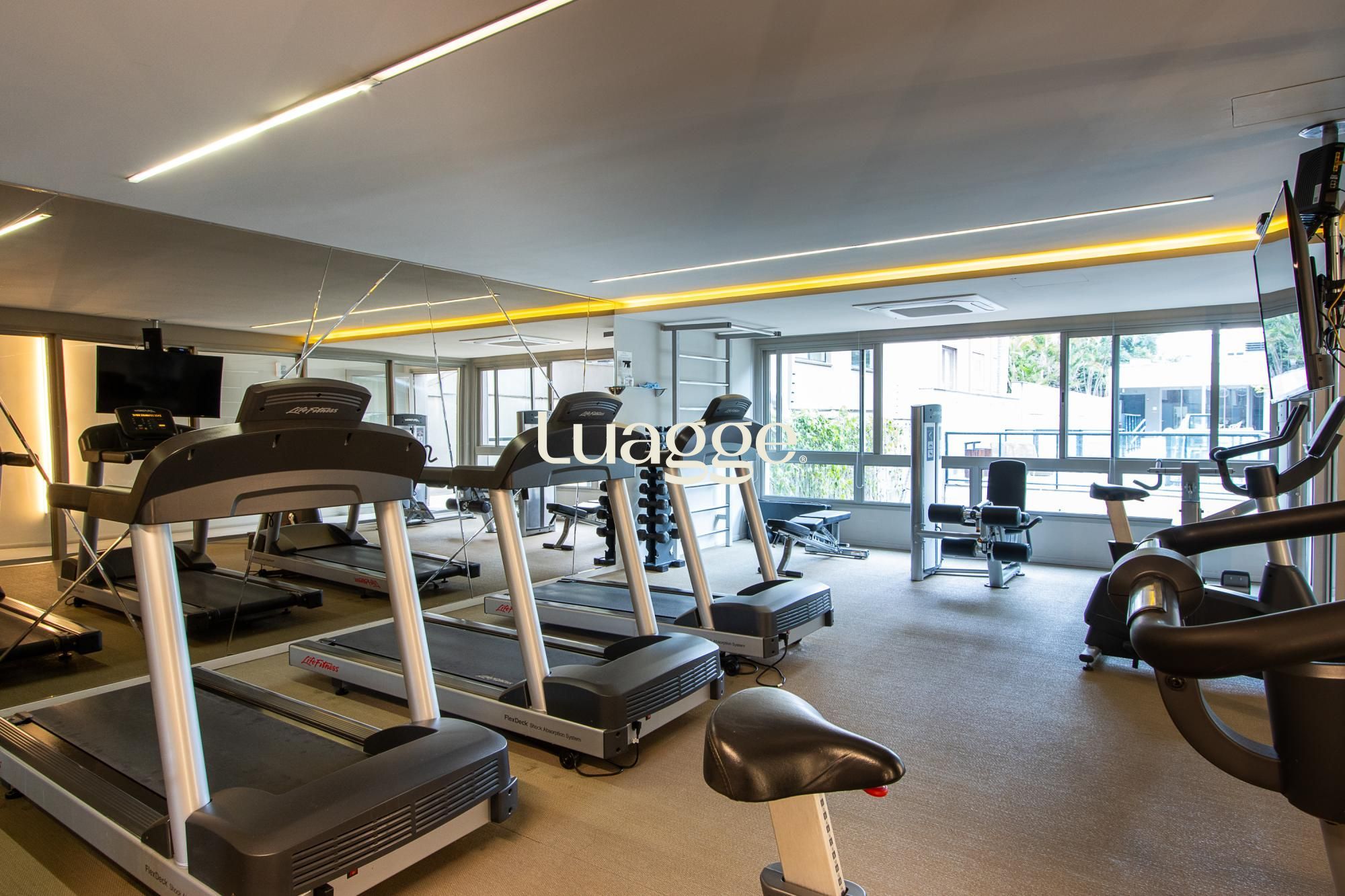 O condomínio conta com: Portaria 24 horas com concierge, Fechaduras digitais, Elevador, Sistema de vigilância/CFTV, Piscina com raia e deck molhado para descanso e exercícios, Academia / sala fitness equipada, Salão de festas para eventos e confraternizações, espaço gourmet com terraço, Coworking / espaço de trabalho, Hall de entrada com lareira, Lavanderia coletiva (espaço para lavar roupas), Bicicletário com bicicletas, Estacionamento/garagem (vagas rotativas ou fixas conforme unidade)