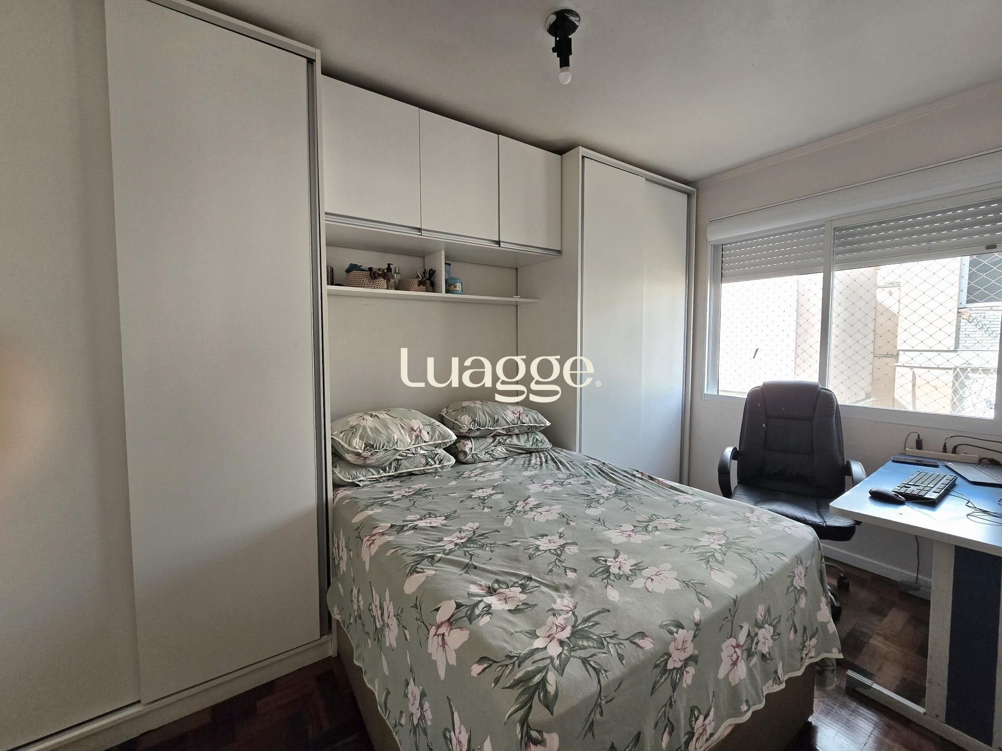 O apartamento possui três dormitórios, todos eles com móveis planejados, sendo um deles com cama de embutir, ideal para uso como escritório ou quarto de hóspedes.