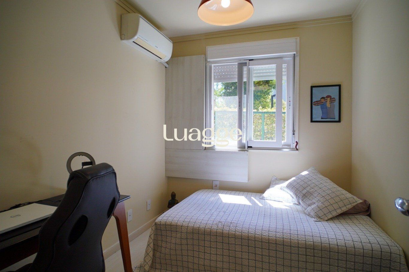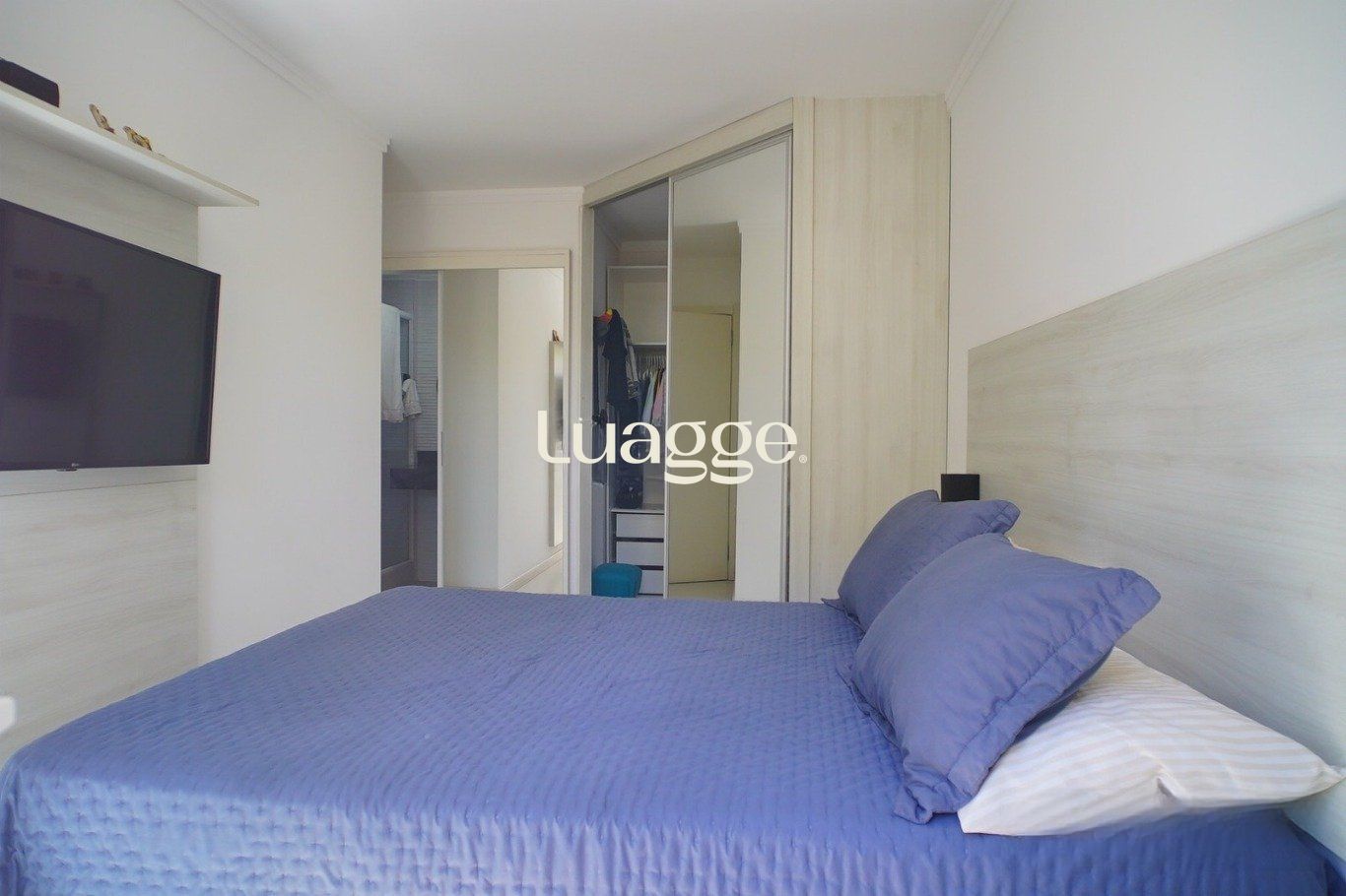 A planta original é de três dormitórios, sendo uma suíte. Atualmente, encontra-se configurado com dois dormitórios, pois um dos quartos foi convertido em closet com divisória em drywall, de fácil reversão. A suíte também dispõe de closet, agregando funcionalidade e organização. O apartamento possui dois banheiros (social e suíte).