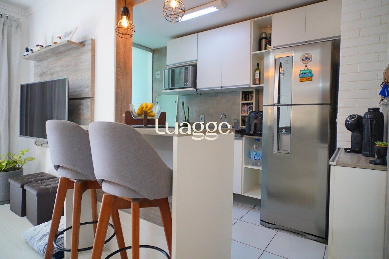 A área social apresenta sala estendida, ampliando a integração e a sensação de espaço. O imóvel conta com móveis planejados sob medida, que permanecem no apartamento, oferecendo praticidade e valorização ao conjunto.