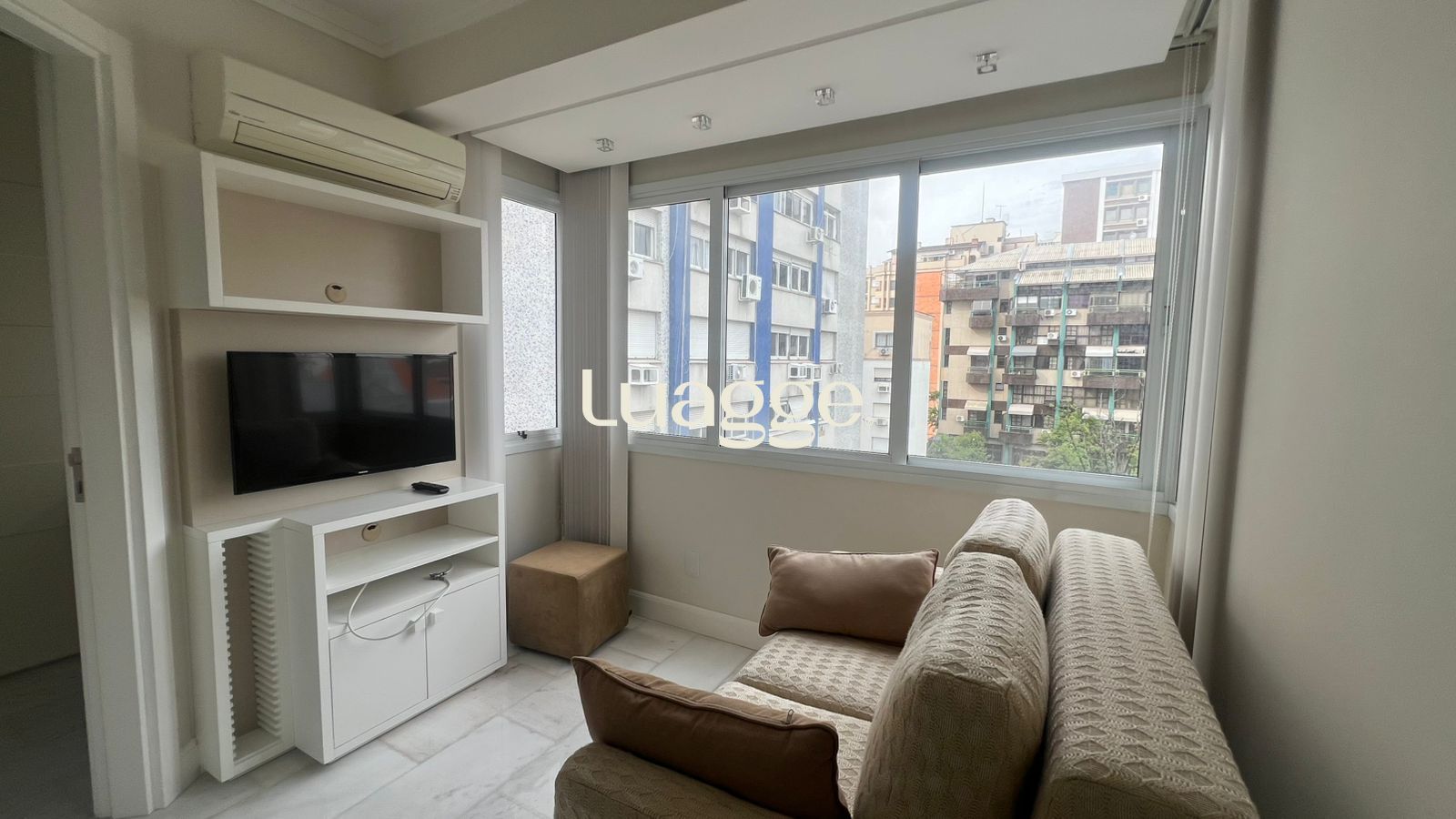 Apartamento de 1 dormitório, sendo suíte, totalmente mobiliado, com lavabo e churrasqueira, com layout prático e funcional para o dia a dia.
