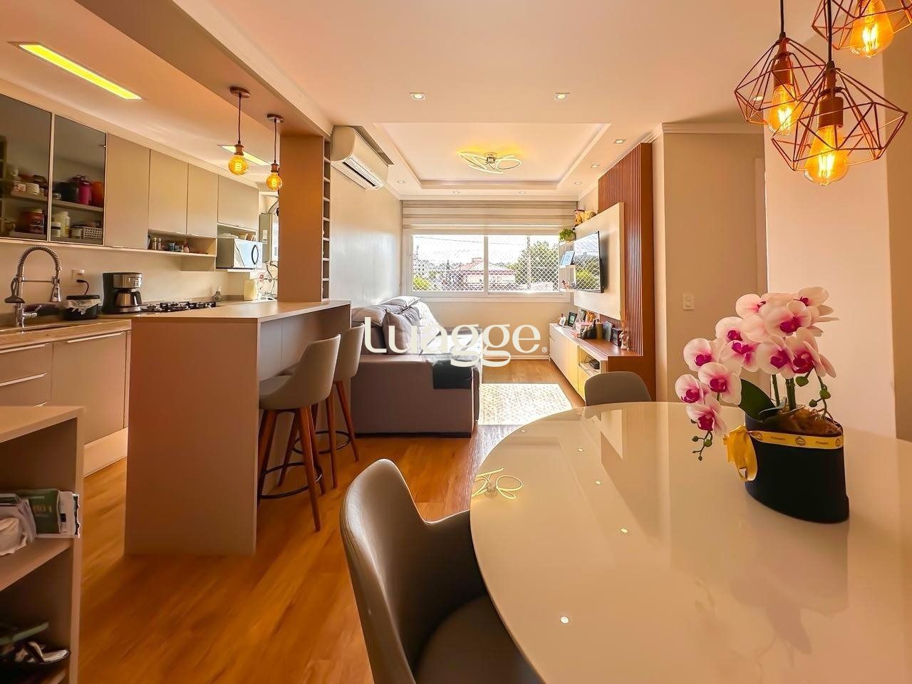 Apartamento com 2 dormitórios, sendo 1 suíte, com planta funcional e excelente aproveitamento de espaço. O living integrado à cozinha proporciona amplitude e praticidade, além de contar com churrasqueira, ideal para receber amigos e familiares. O imóvel é muito ensolarado e possui 1 vaga de garagem coberta.