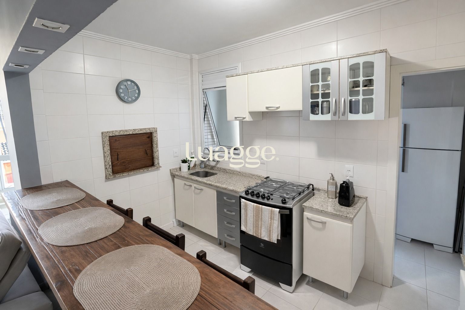 O living é amplo e acolhedor, integrado à cozinha espaçosa com churrasqueira, criando um ambiente perfeito para receber amigos e família. Um espaço pensado para momentos de convivência e praticidade no cotidiano.