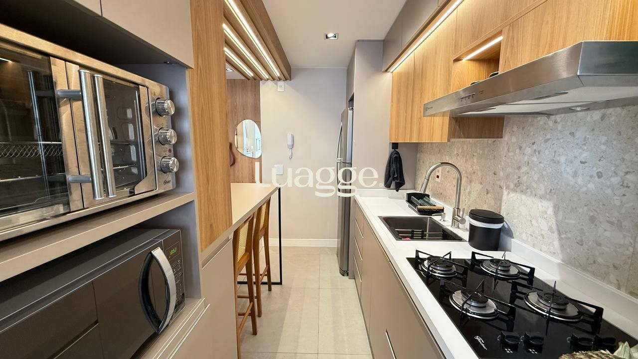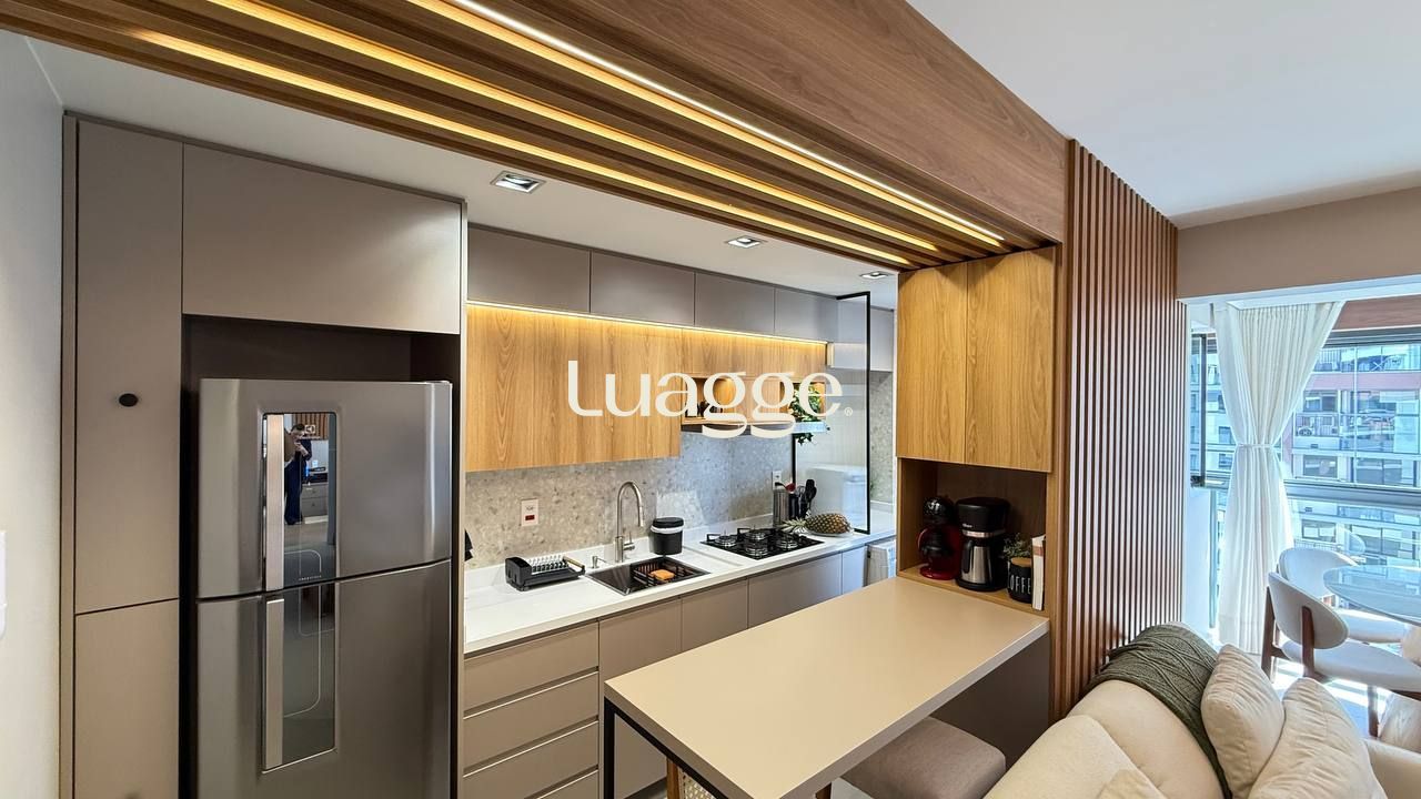Todos os ambientes contam com acabamentos contemporâneos, iluminação e automação inteligente que possibilita controle de luzes, iluminação LED, persianas e climatização. A integração da sacada amplia o living, oferecendo um espaço perfeito para receber ou relaxar. Além disso, o imóvel ainda dispõe de um espaço home office, atendendo à nova demanda de quem trabalha em casa com conforto e privacidade.