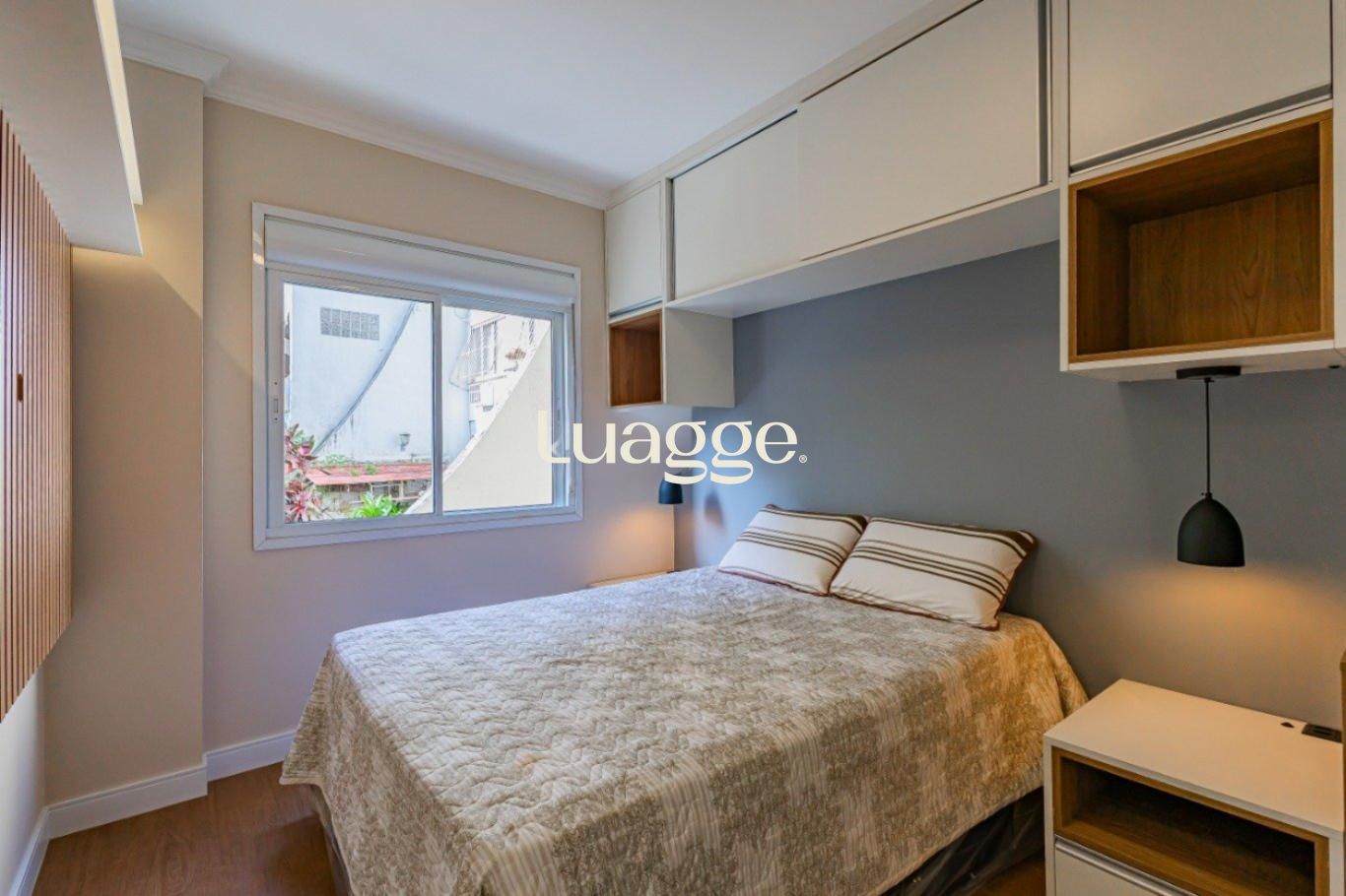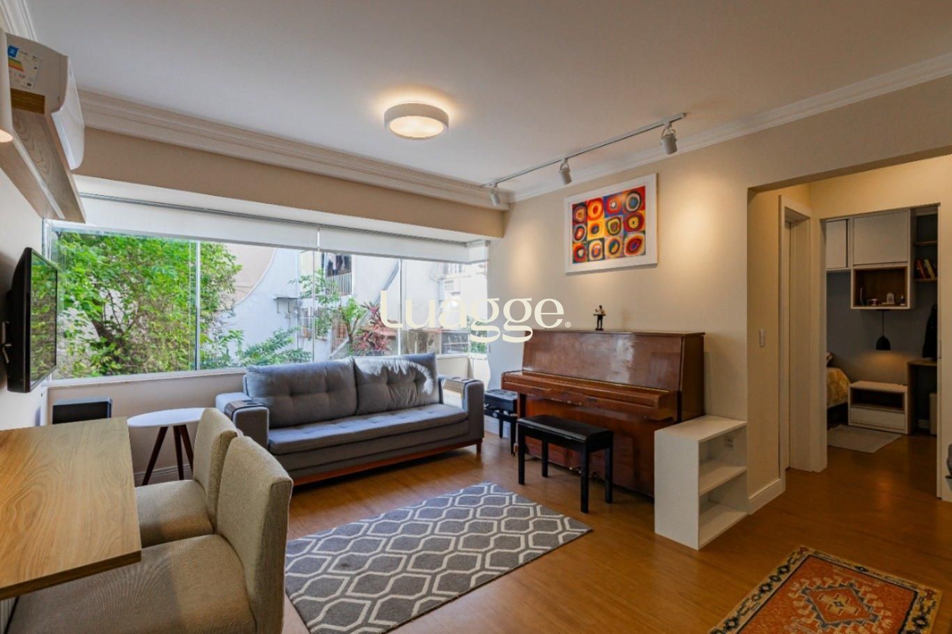 Apartamento mobiliado de 44m² no bairro Menino Deus, com 1 dormitório, living para dois ambientes, banheiro e cozinha integrada à área de serviço. O imóvel conta ainda com vaga de garagem coberta e escriturada. Os espaços são bem distribuídos, com ótima iluminação natural graças à orientação solar norte. Condomínio aceita pets.