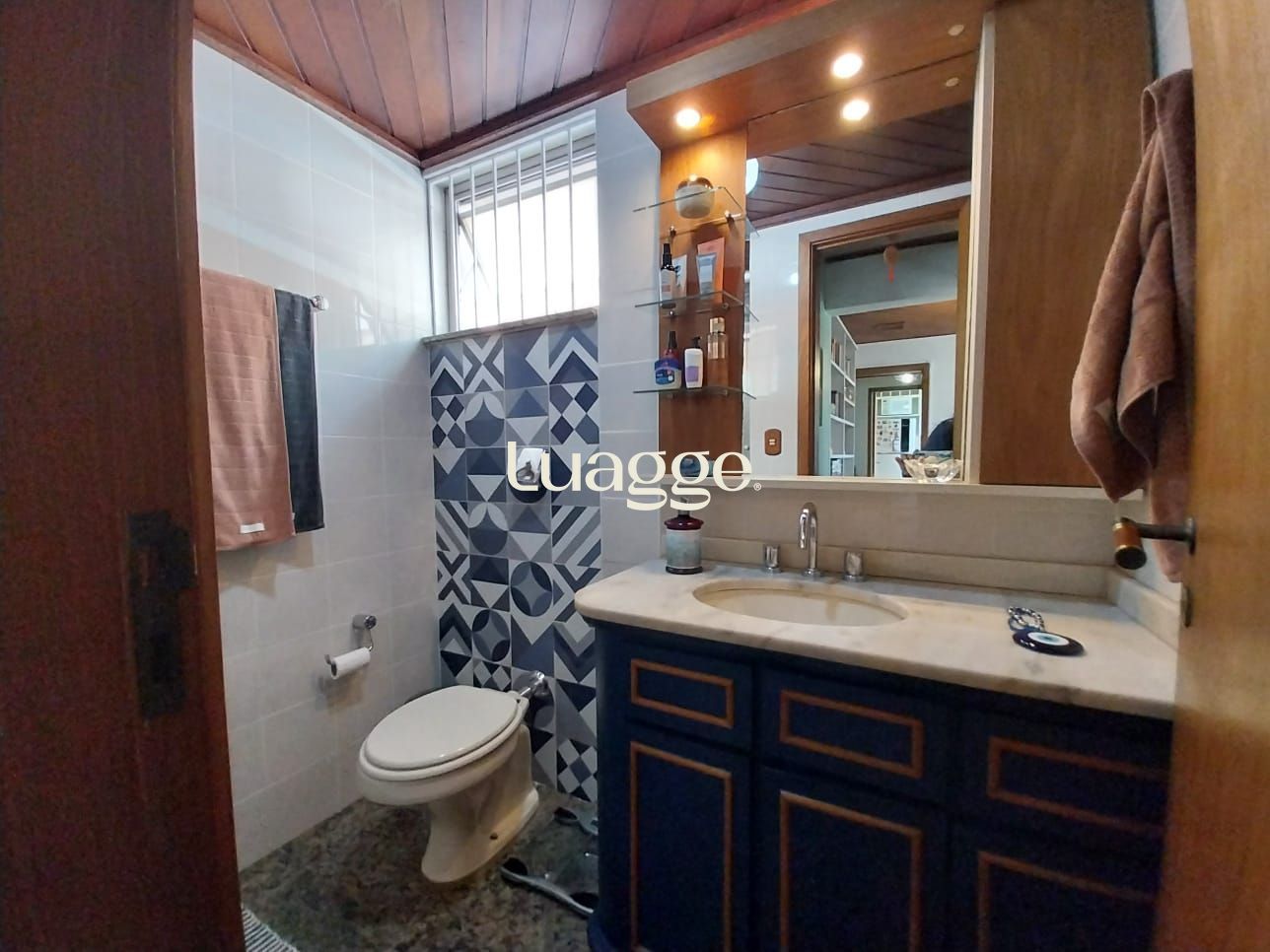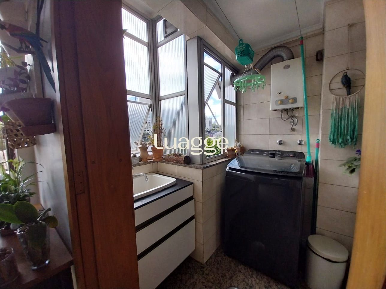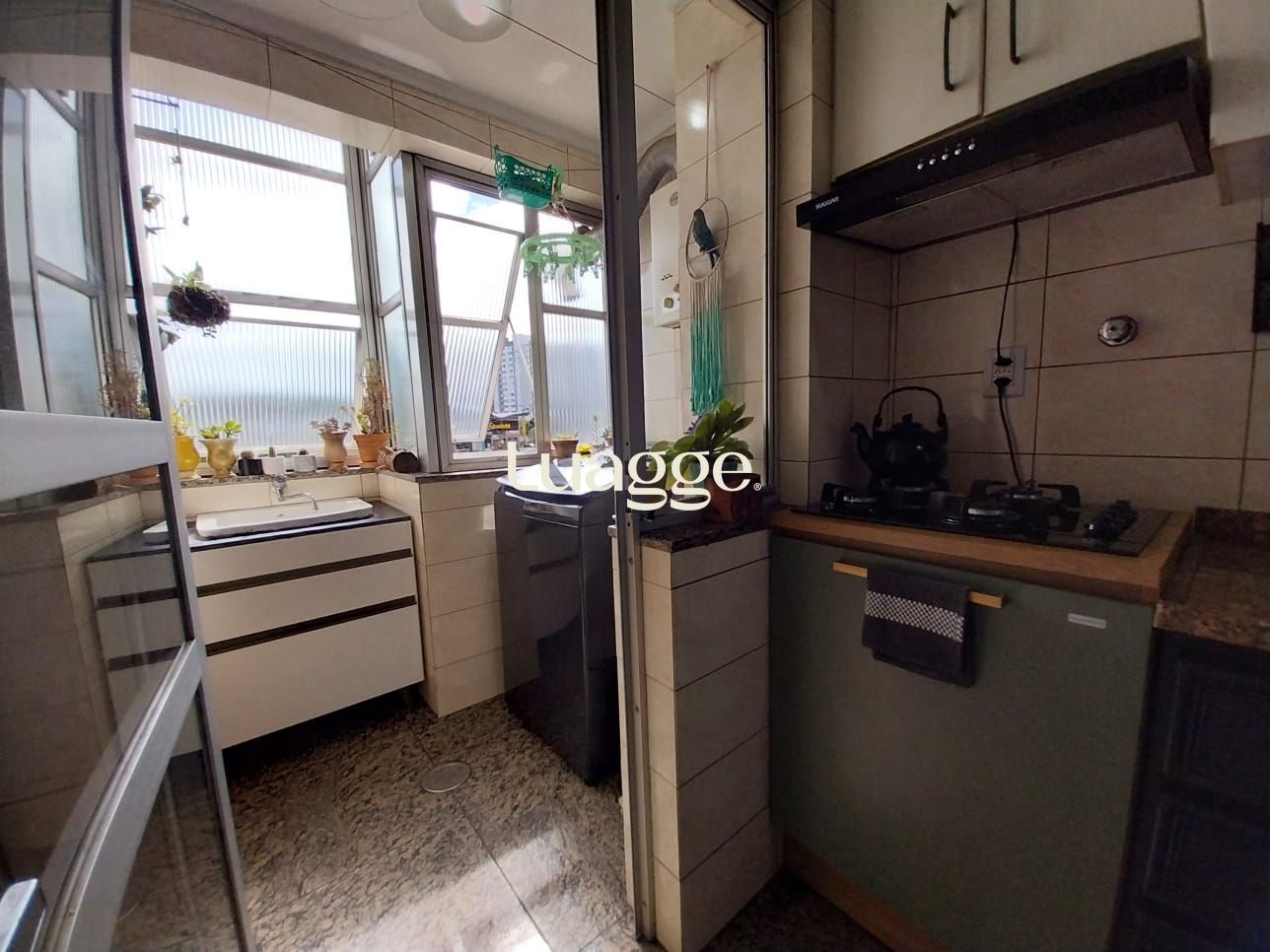 Banheiro com ventilação natural e sistema de aquecimento central de água.