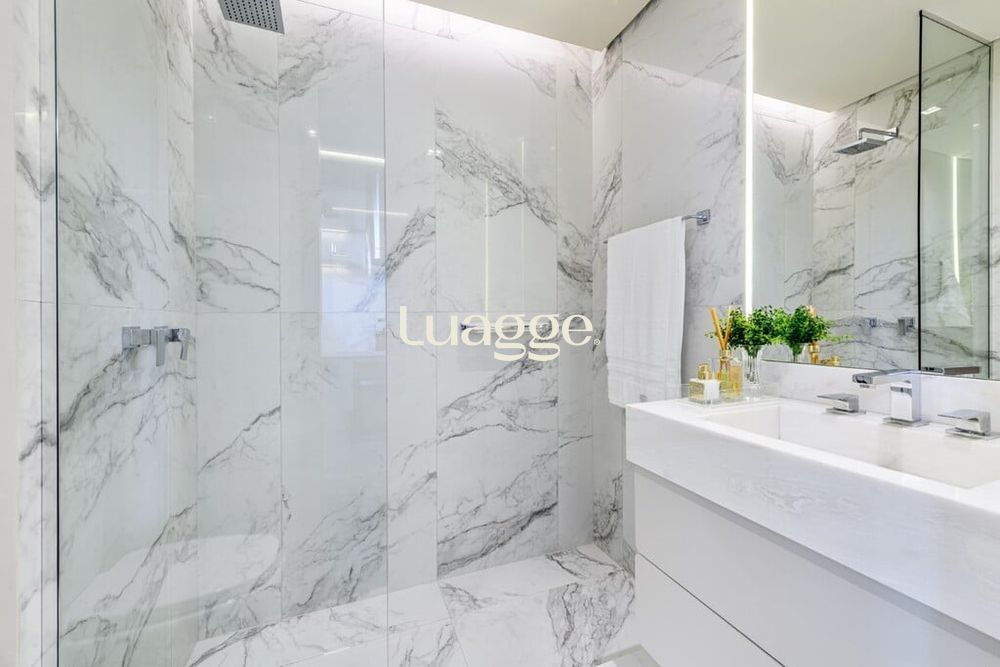 Banheiro Moderno: Equipado com materiais de fácil limpeza, garantindo praticidade e higiene.