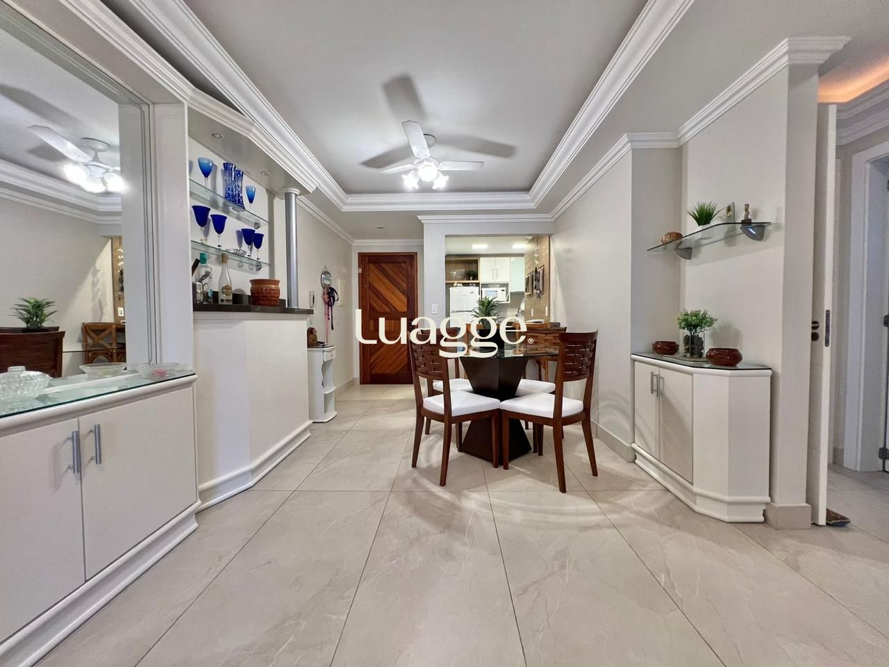 Além disso, o imóvel está repleto de comodidades, incluindo armários embutidos, móveis planejados, ar condicionado, elevador, churrasqueira, interfone, lavanderia, luminárias, e sala de jantar.